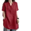 Verano 2025 comercio exterior transfronterizo europeo y americano para mujer top de algodón y lino color sólido botón retorcido moda blusa de manga corta