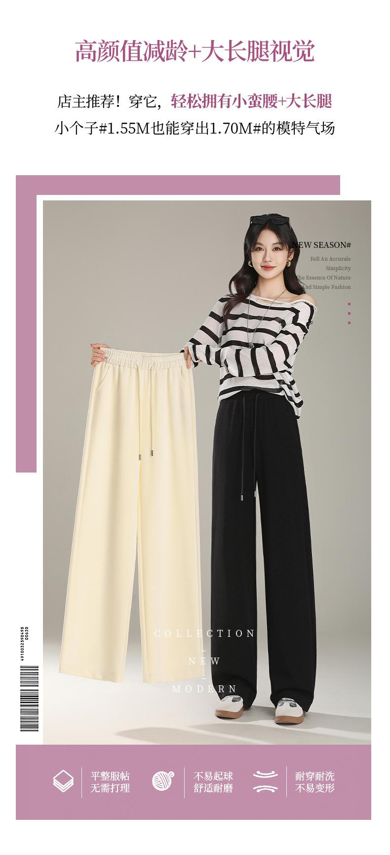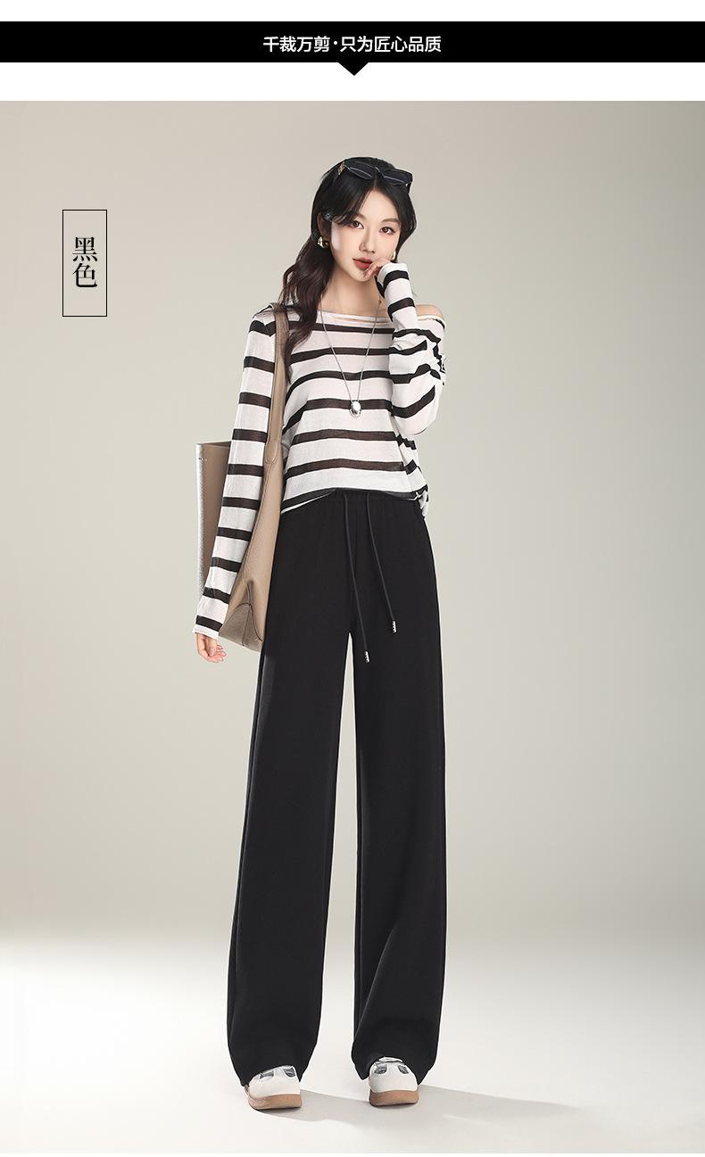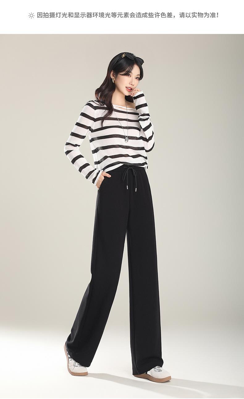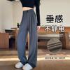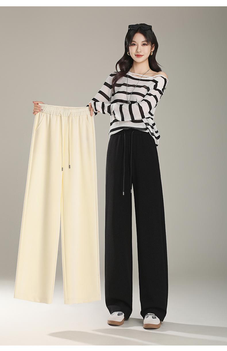 Pantalones Rectos Pequeños de Cintura Alta para Mujer Primavera 2025 Nuevas Explosiones Pantalones Sueltos de Pierna Ancha Pantalones Deportivos Casuales