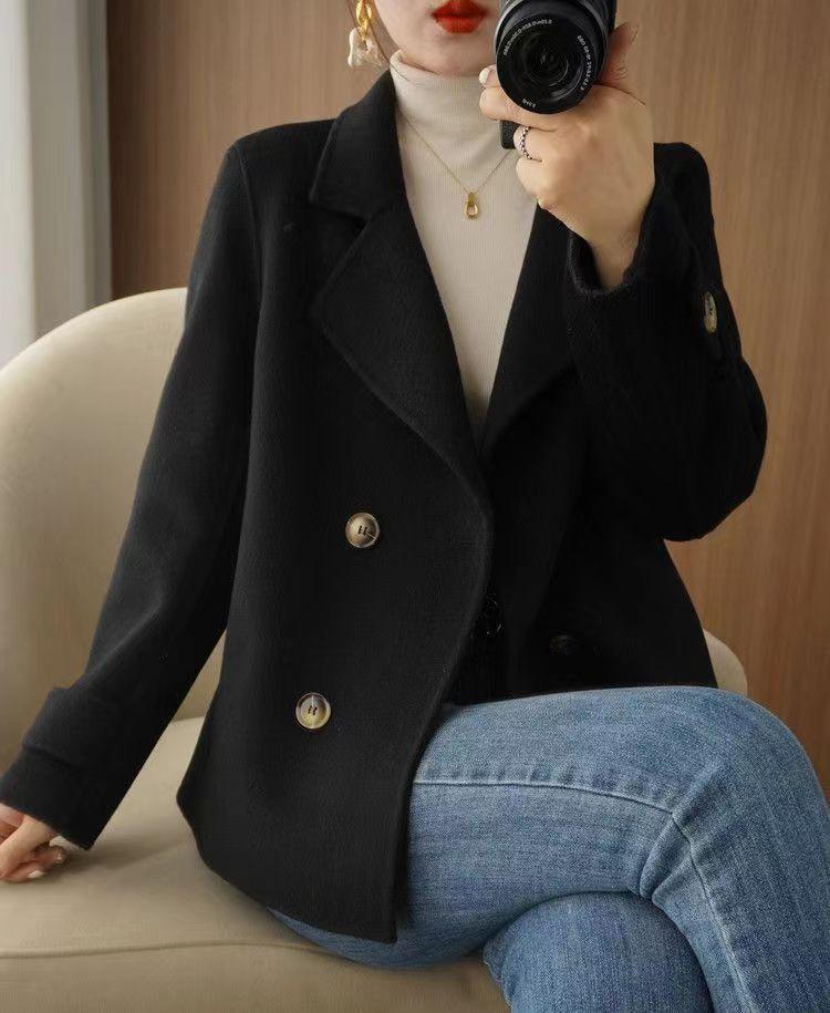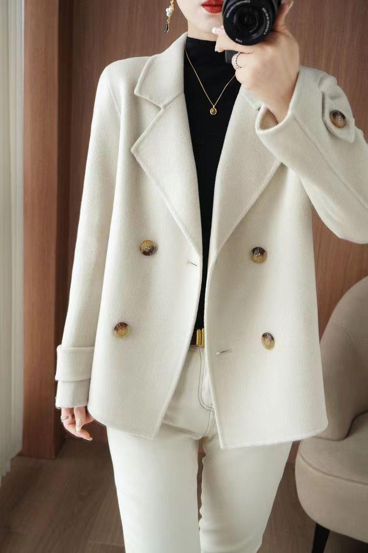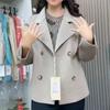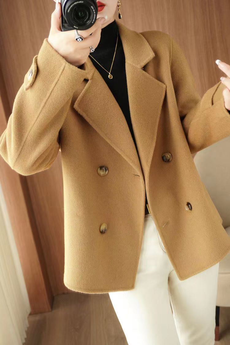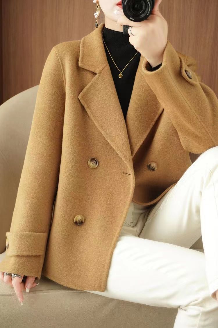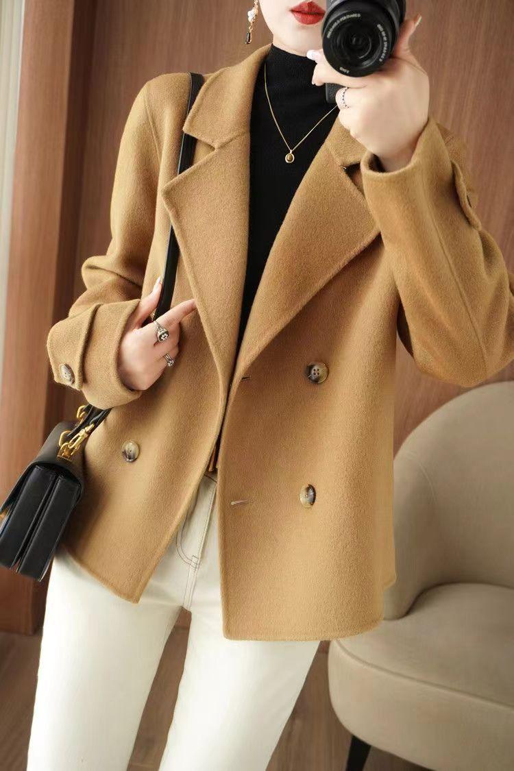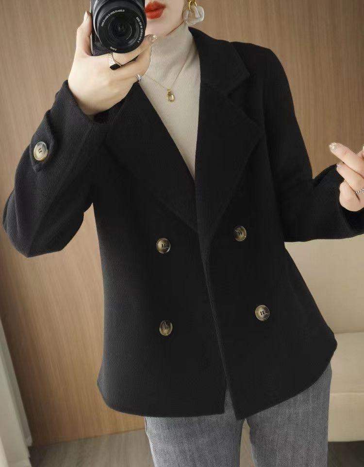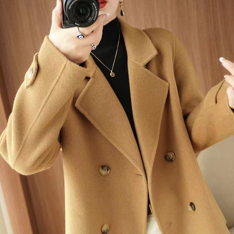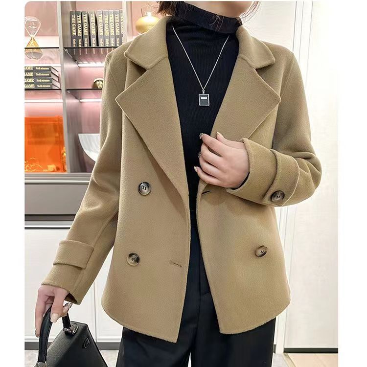 Abrigo corto de forro polar de doble cara para mujer, moderno estilo occidental, doble botonadura, cuello de traje, abrigo de lana para mujer de mediana edad, otoño e invierno