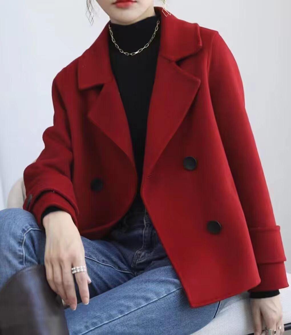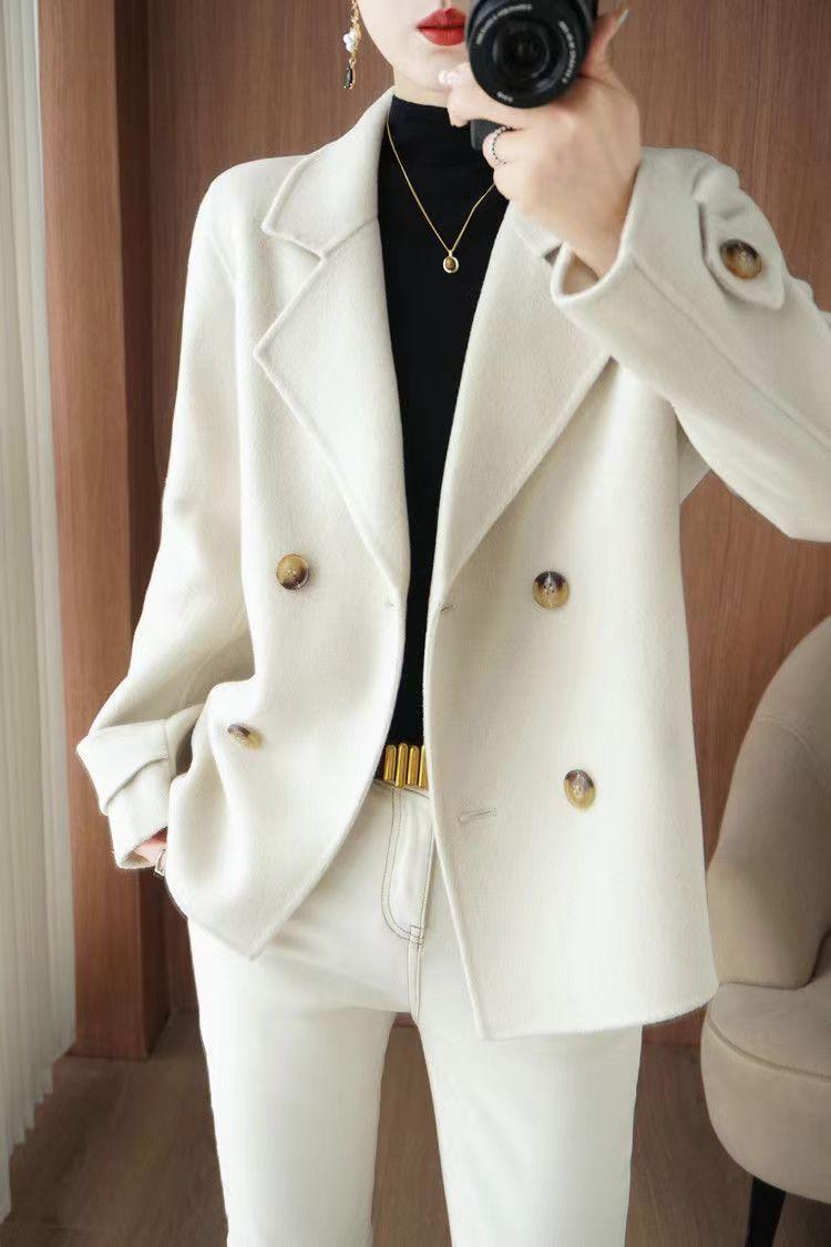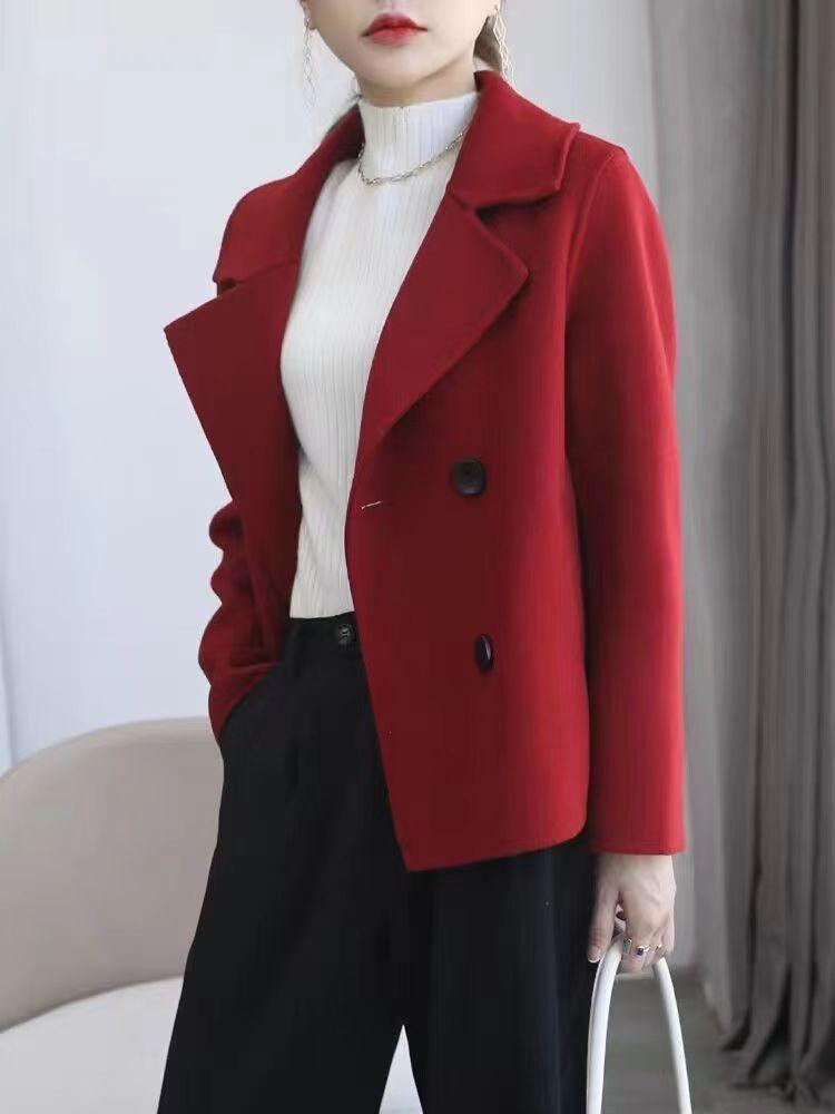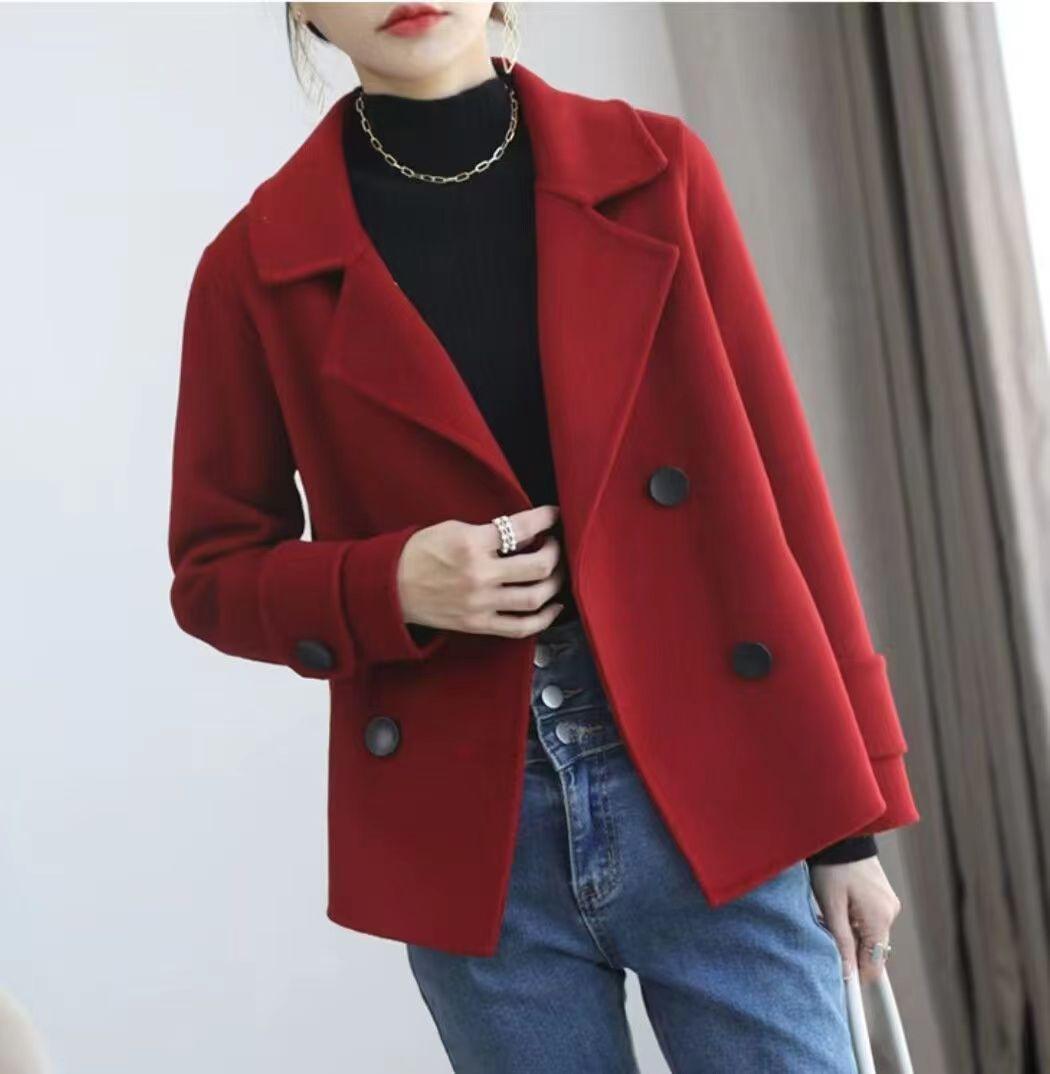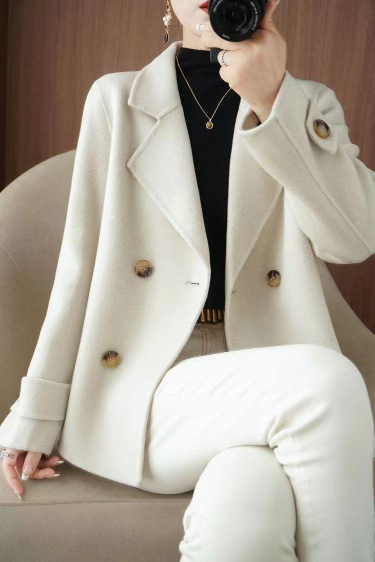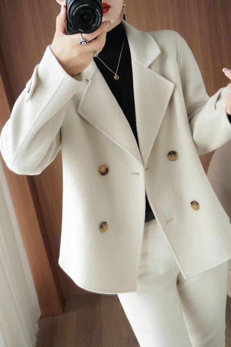 Abrigo corto de forro polar de doble cara para mujer, moderno estilo occidental, doble botonadura, cuello de traje, abrigo de lana para mujer de mediana edad, otoño e invierno