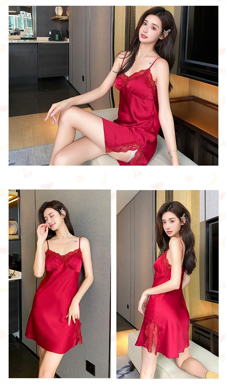 Pijama de Verano con Almohadilla en el Pecho Camisón de Verano de Seda de Hielo para Mujer 2025 Nueva Ropa de Casa Sexy de Seda de Hielo para Mujer