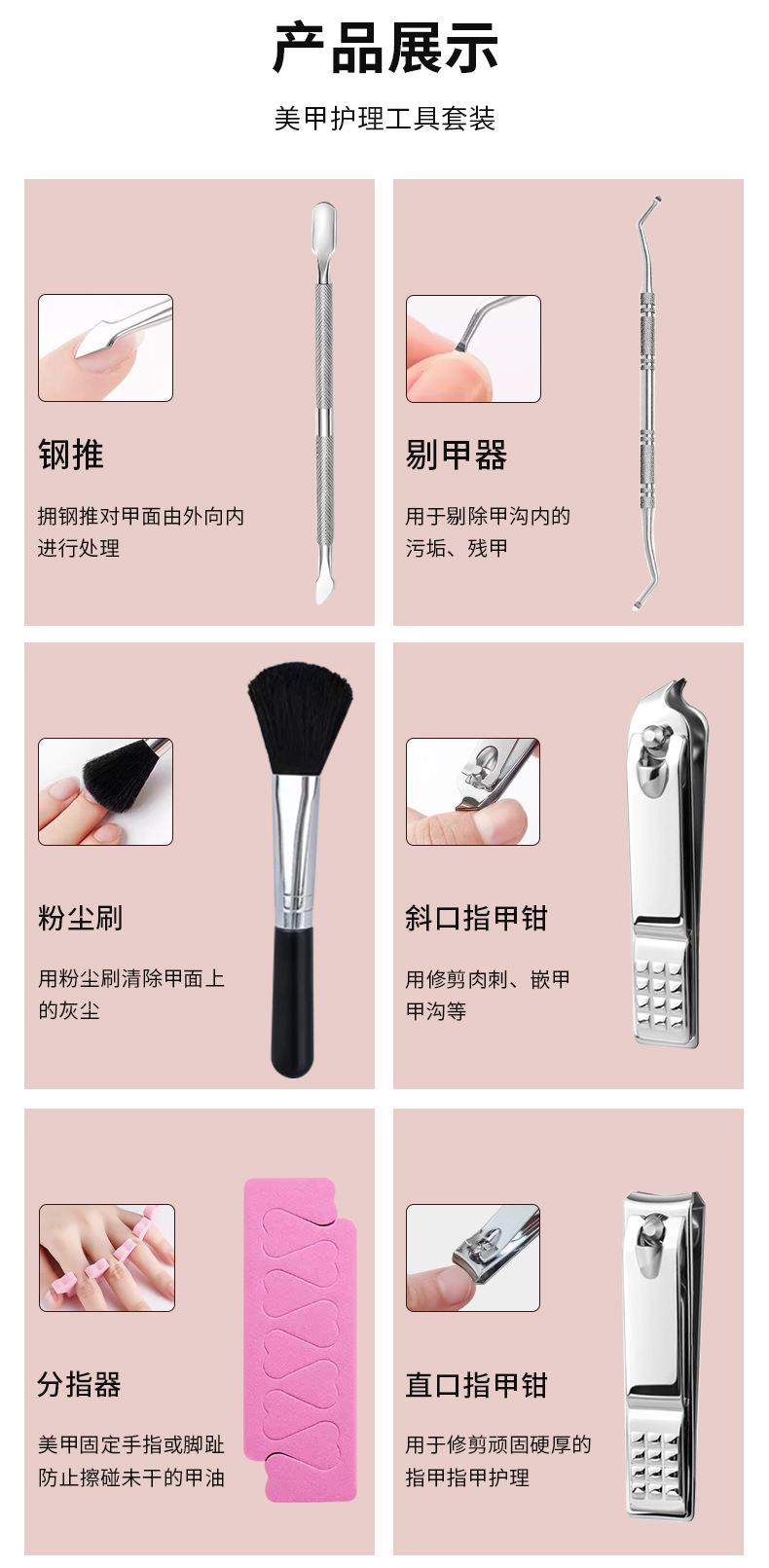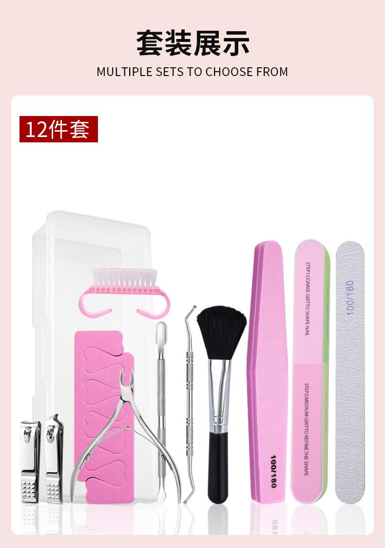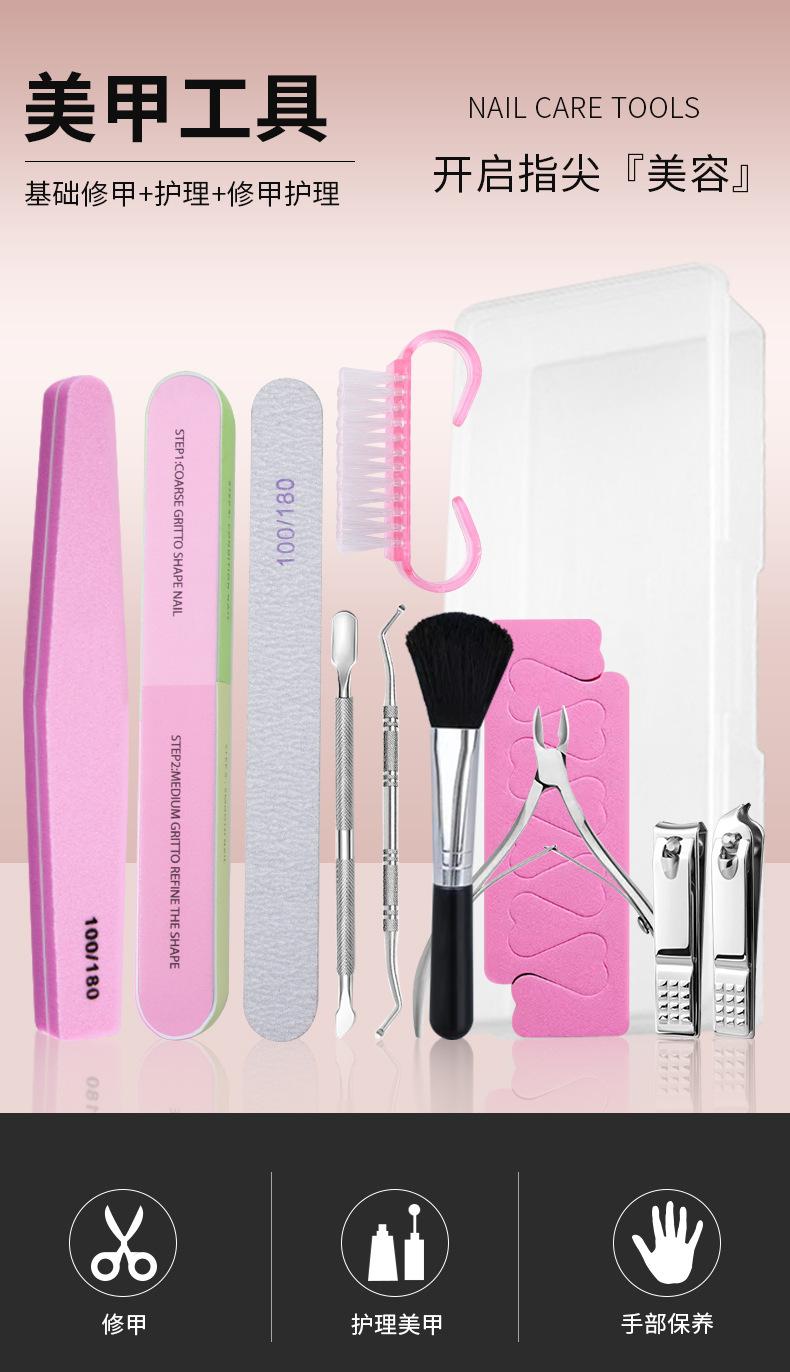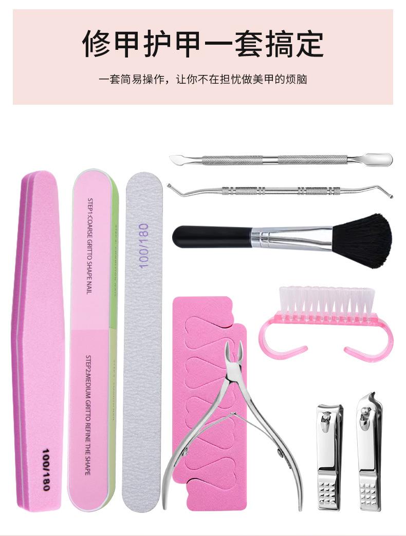 Juego completo de herramientas para uñas para manicura para eliminar piel muerta, cortaúñas, herramienta para uñas, suavizante, tira de lija, empujador de piel muerta