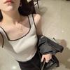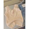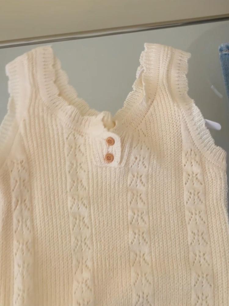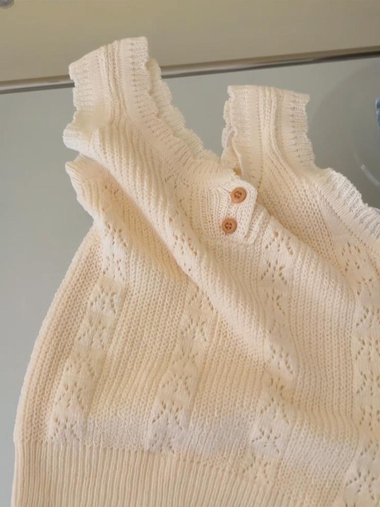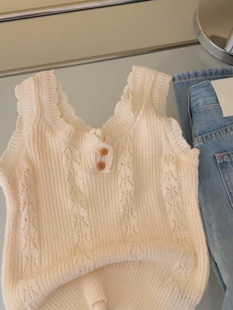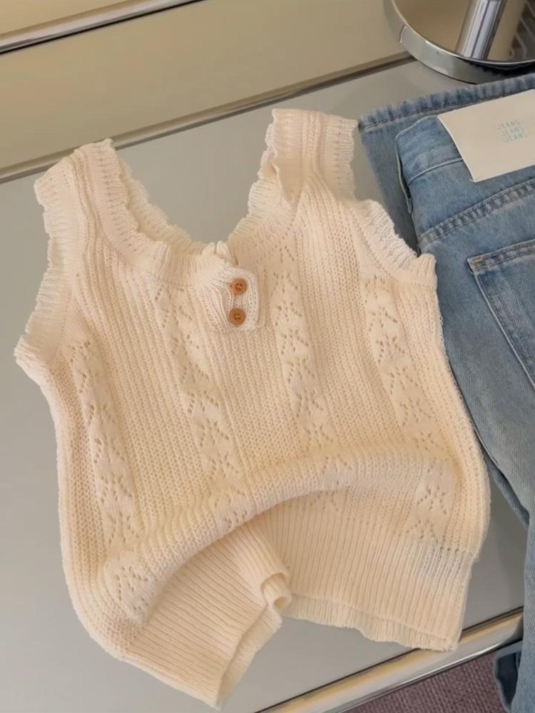Chaleco de Punto Base Calado a Crochet de Cuello Redondo Estilo Francés para Mujer, Verano 2025, Tirante Espagueti, Diseño Elegante, Top Adelgazante