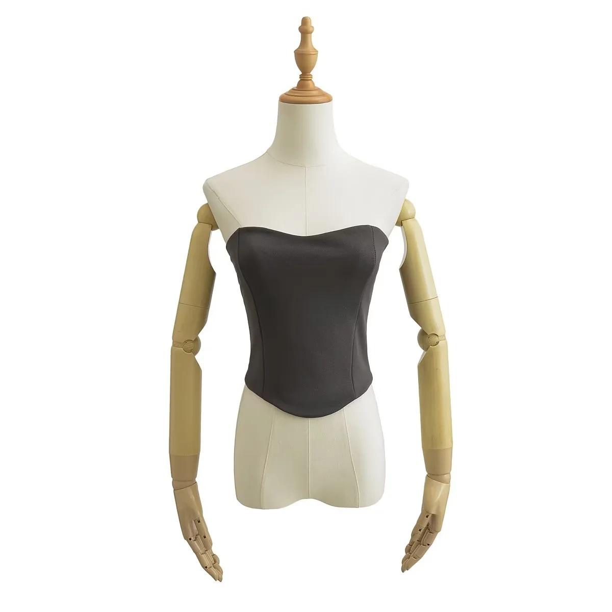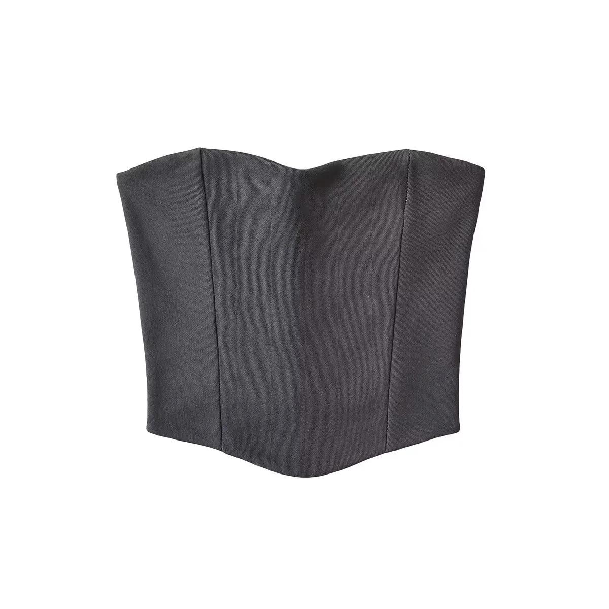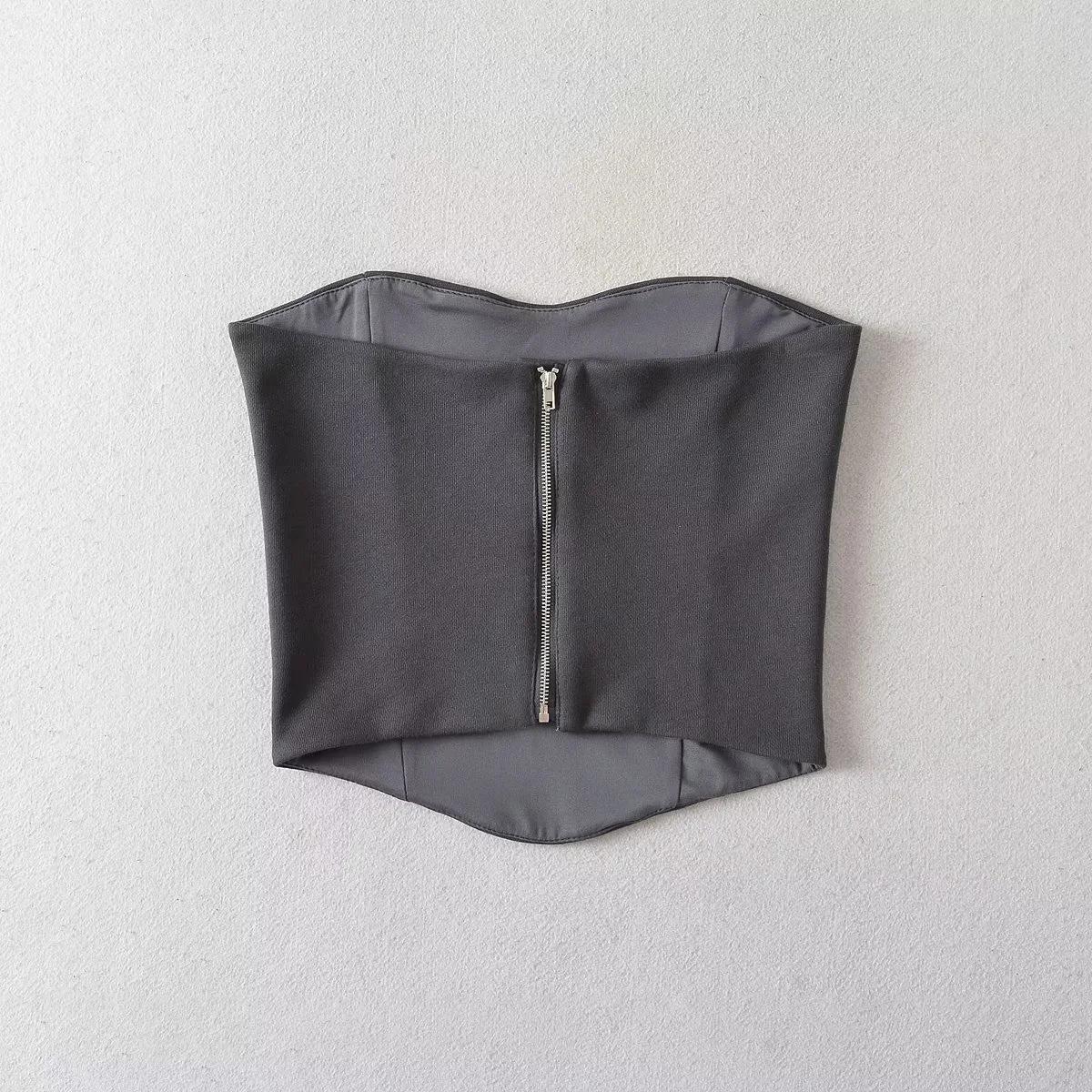 Camisola de verano 202 estilo europeo y americano, sin tirantes, con 3 espinas de pescado, color liso y cintura pequeña para mujer