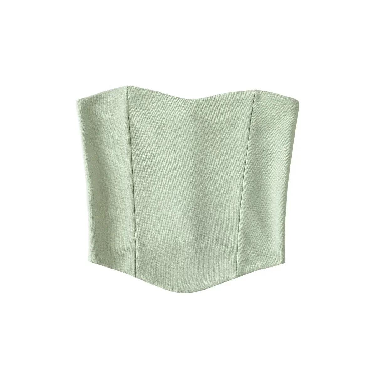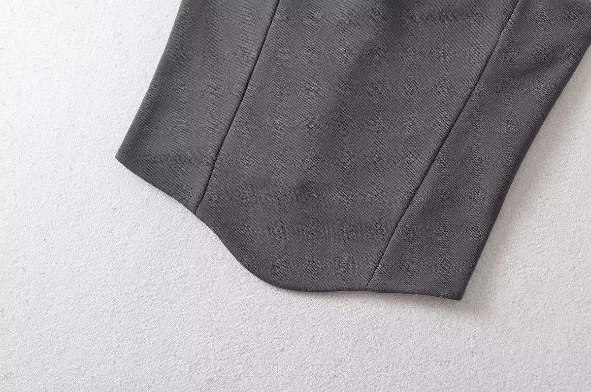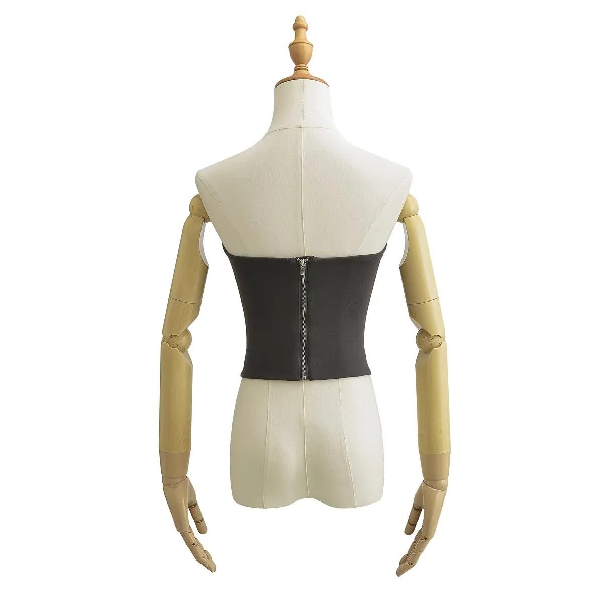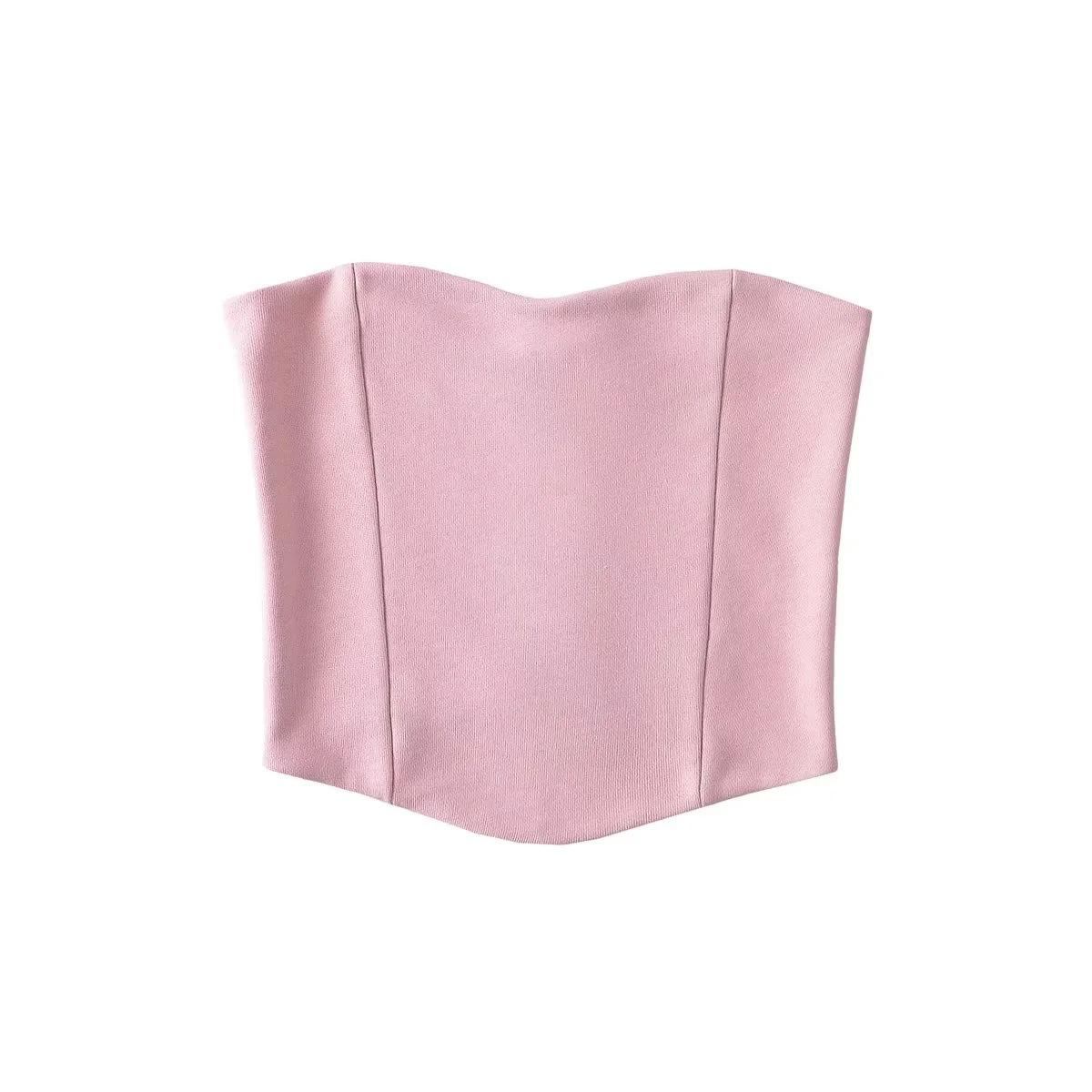 Camisola de verano 202 estilo europeo y americano, sin tirantes, con 3 espinas de pescado, color liso y cintura pequeña para mujer
