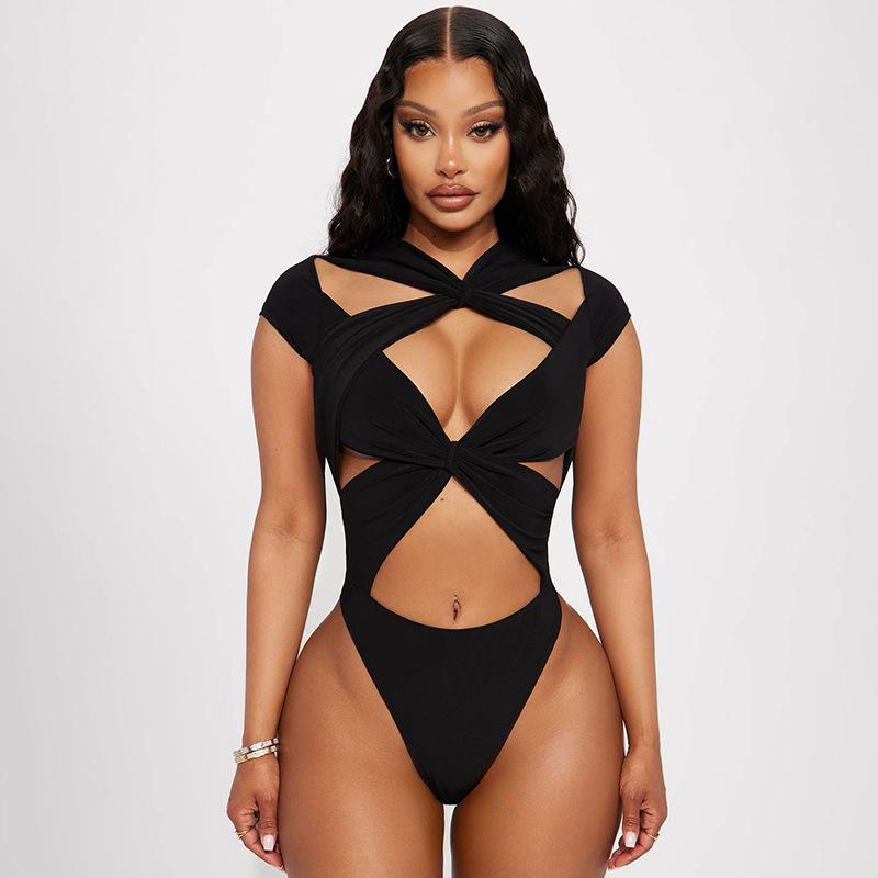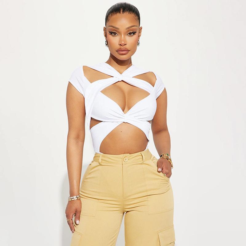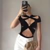 Verano 2025 Europa y Estados Unidos transfronterizo ombligo expuesto sexy tirantes múltiples manga corta cruz hueco mono al por mayor