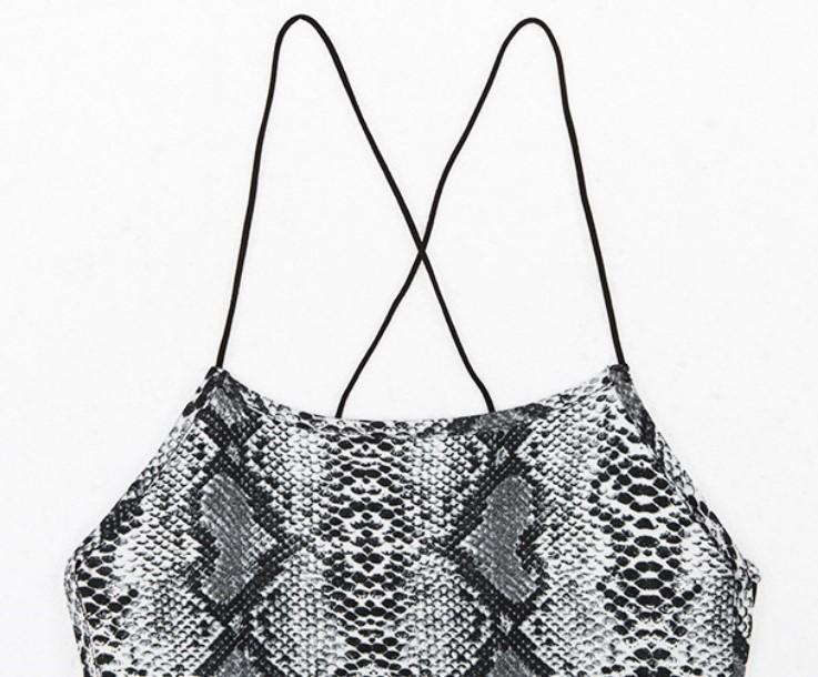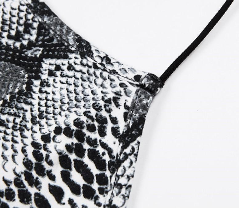 En stock Camisón sexy con tirantes y espalda descubierta para mujer, estilo transfronterizo europeo y americano, con falda y estampado de serpiente