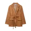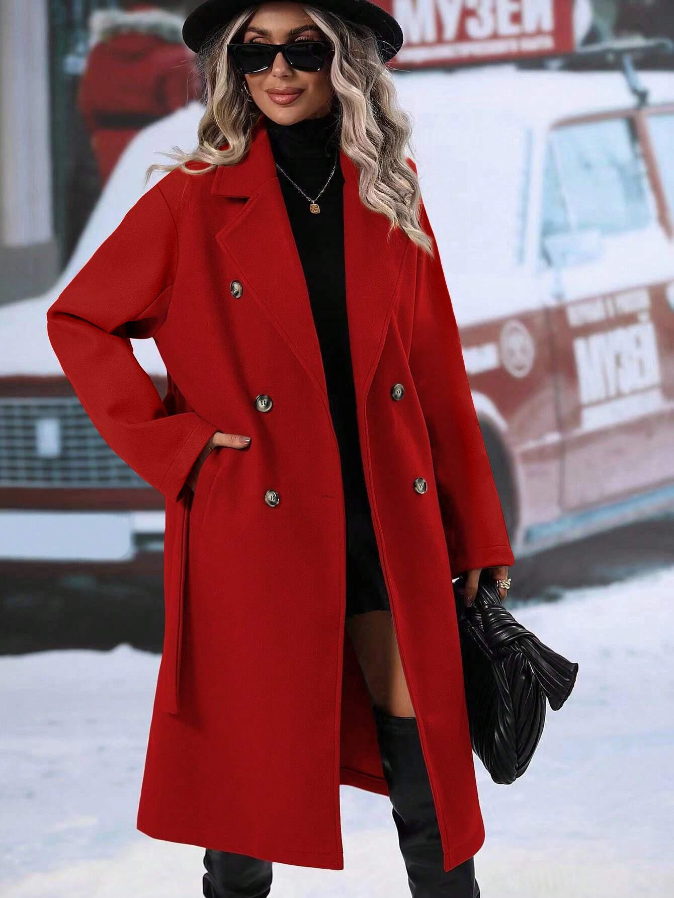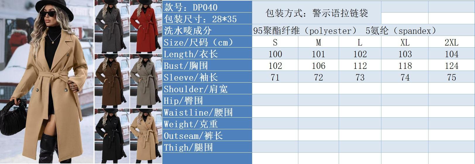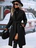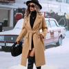 Otoño e invierno 2025 abrigo de lana cruzado para mujer europeo y americano nuevo abrigo de lana con solapa de traje de doble botonadura con cordones para mujer