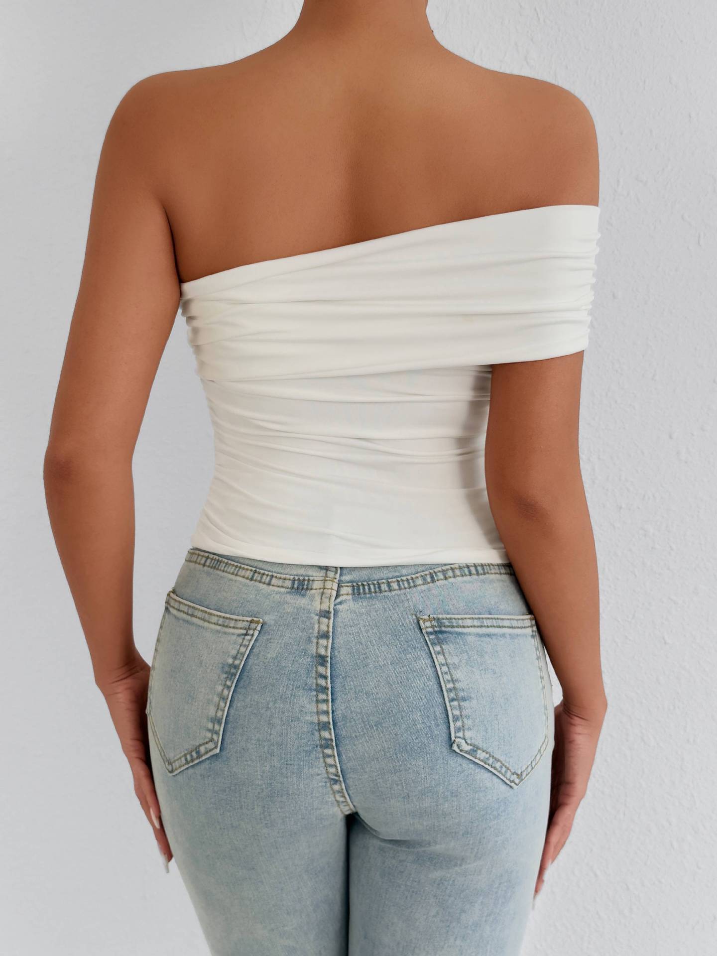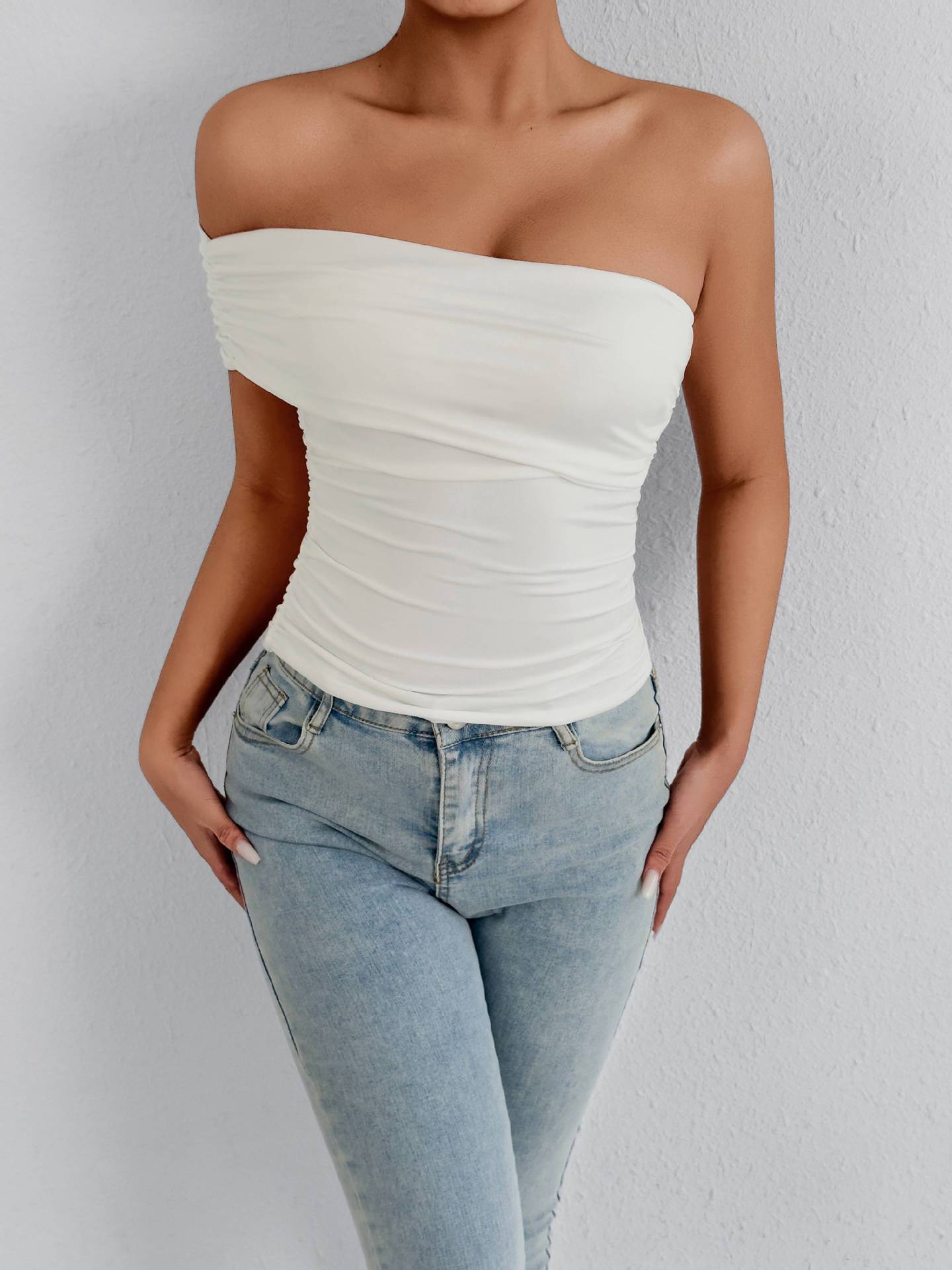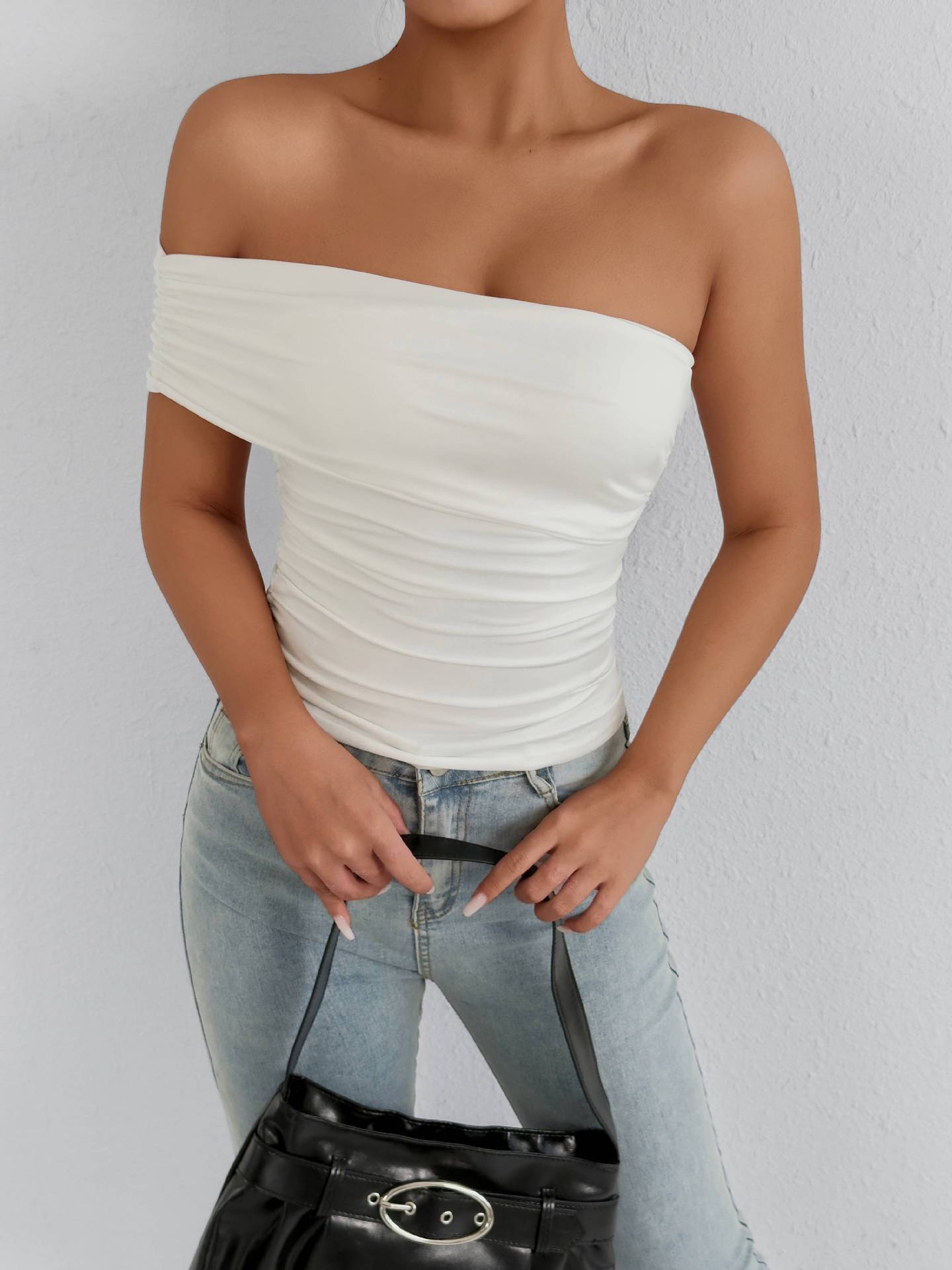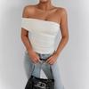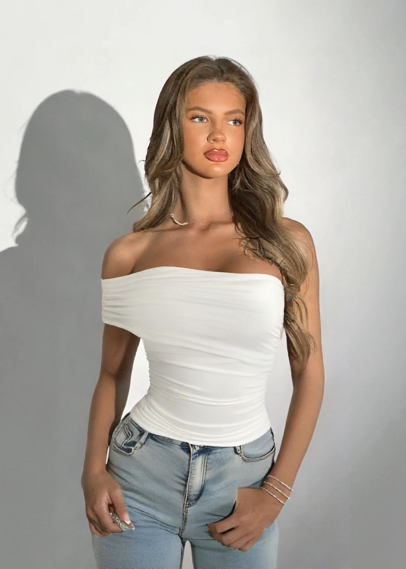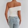 Estilo Francés Puro Deseo Spice Girl Un Hombro Moda Sexy Ajustado Hombro Descubierto Sin Tirantes Plisado Ajustado Adelgazante Top Ropa de Mujer