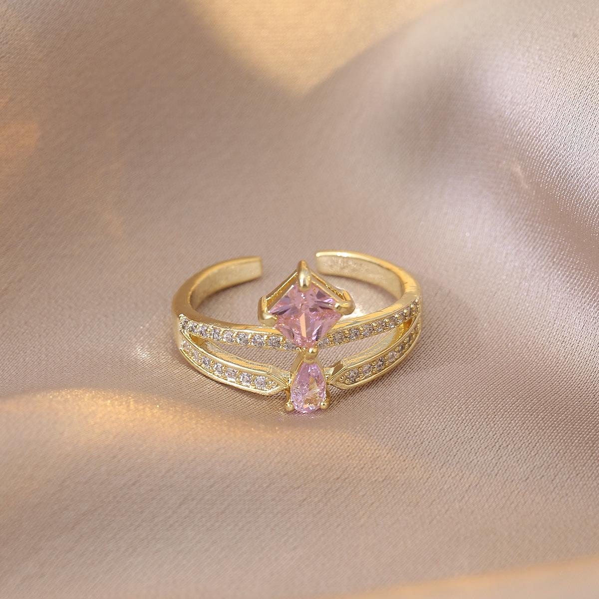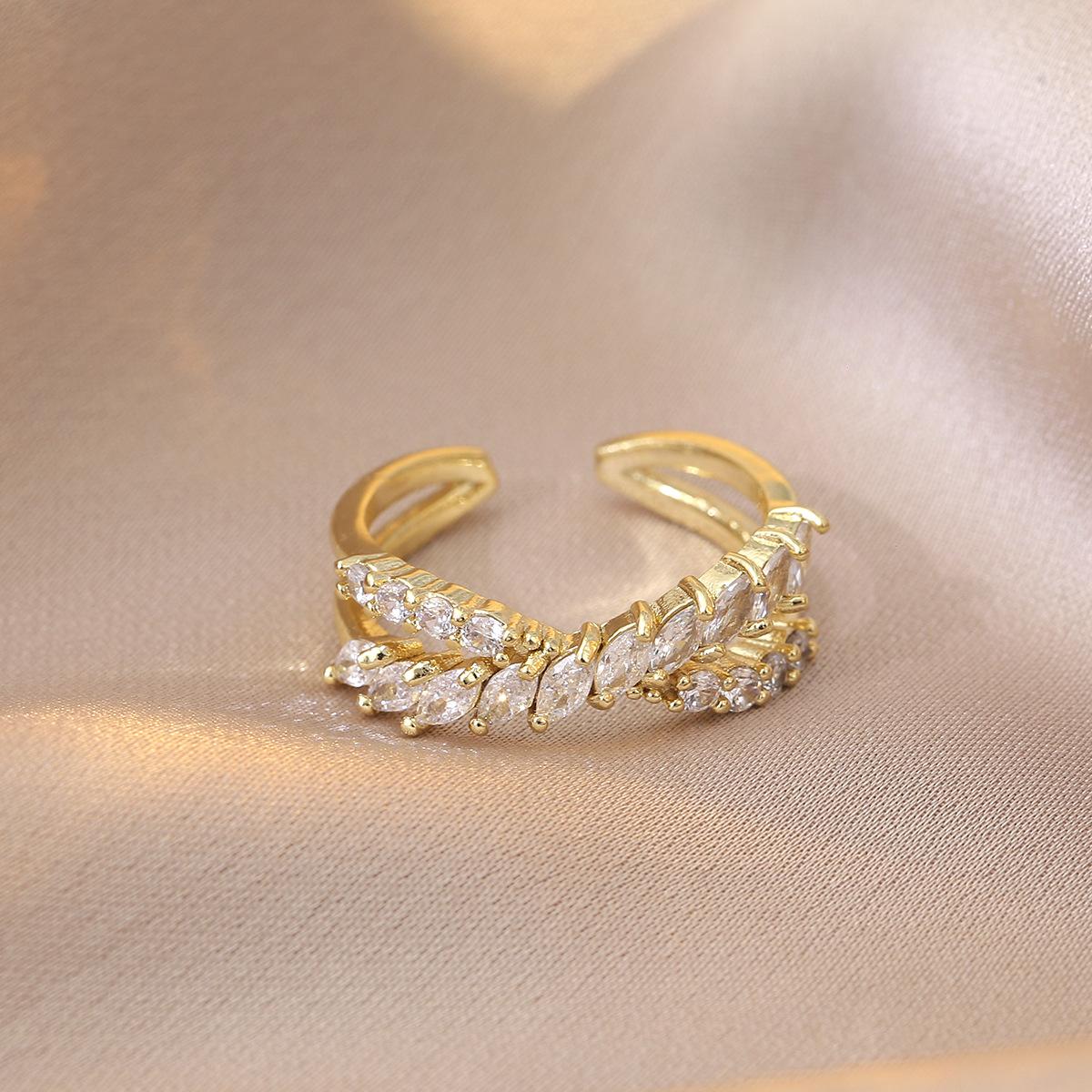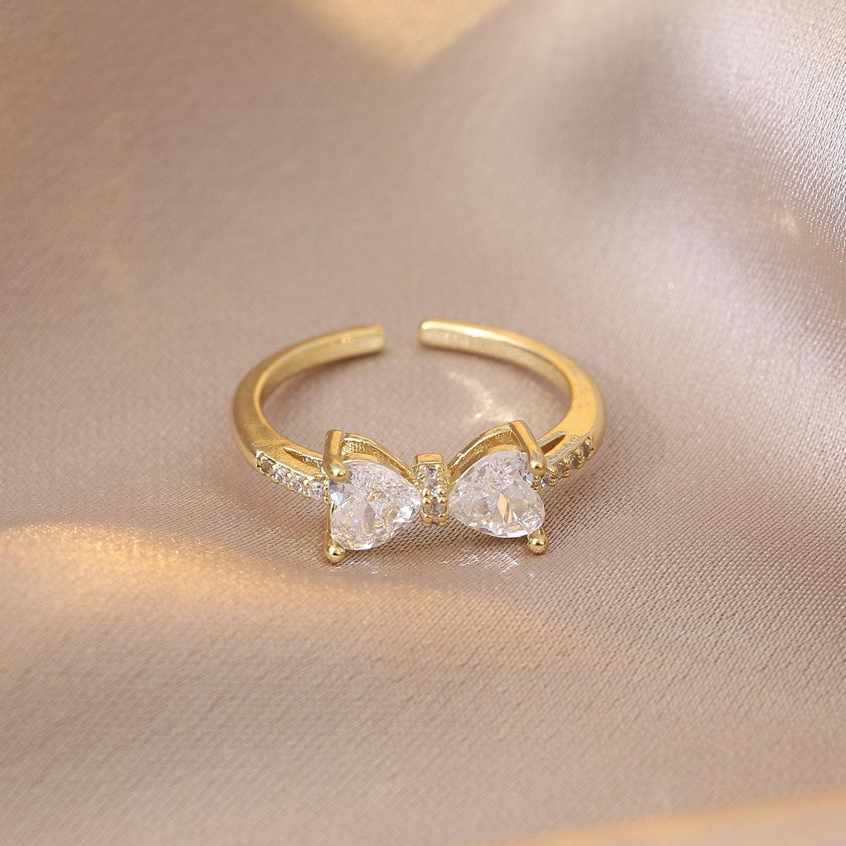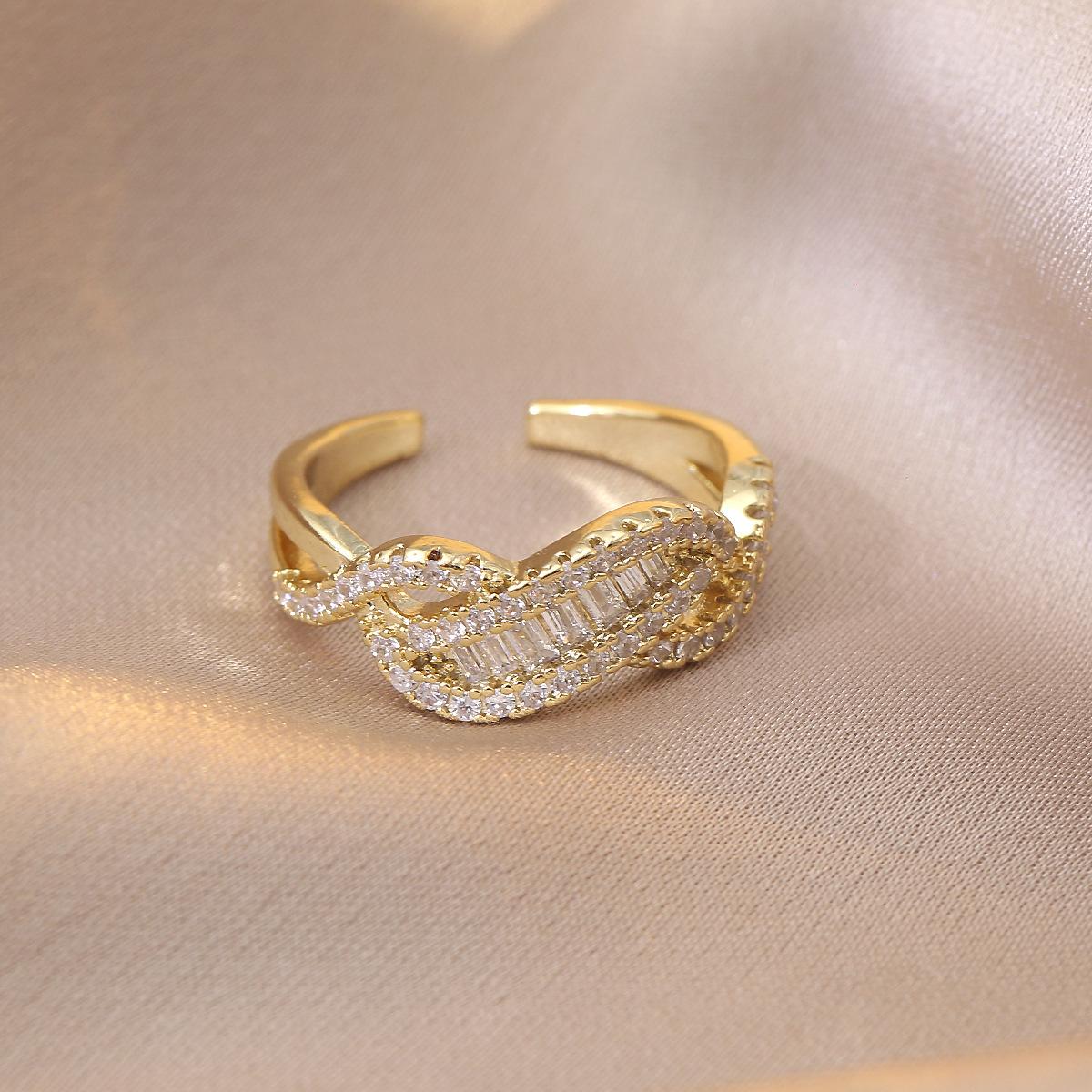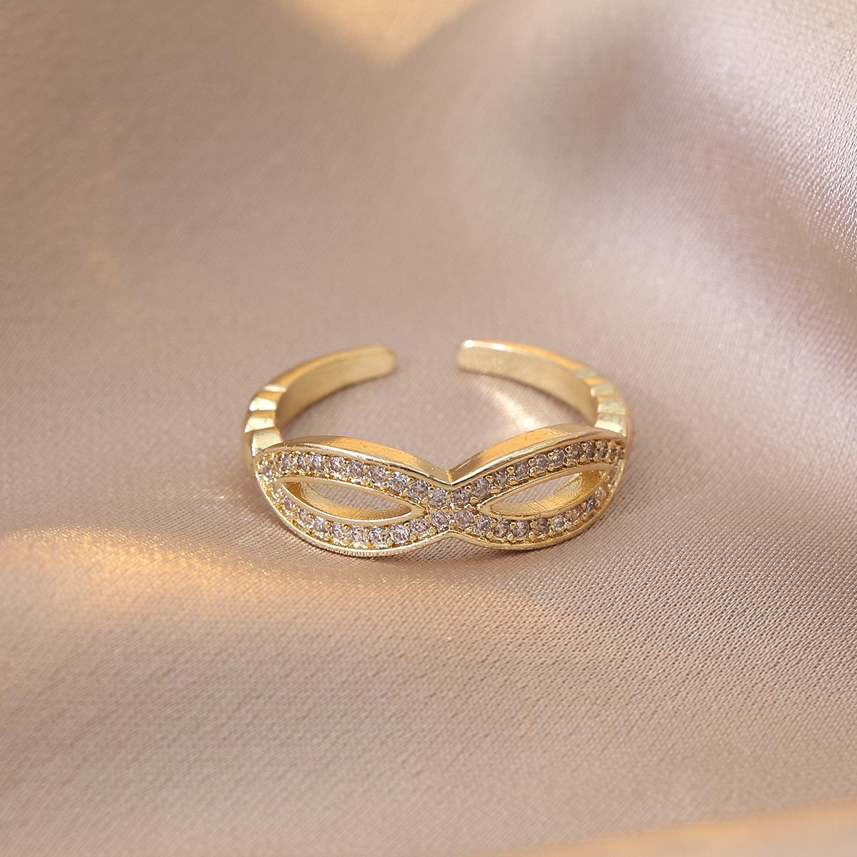 Anillo para Mujer, Anillo Abierto Ajustable Transfronterizo Coreano y Japonés con Circonita, Accesorio de Joyería de Lazo de Temperamento a la Moda