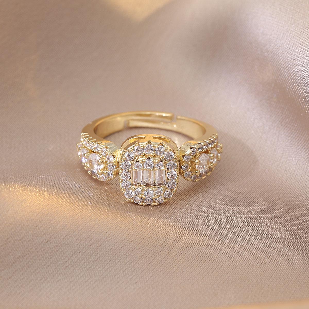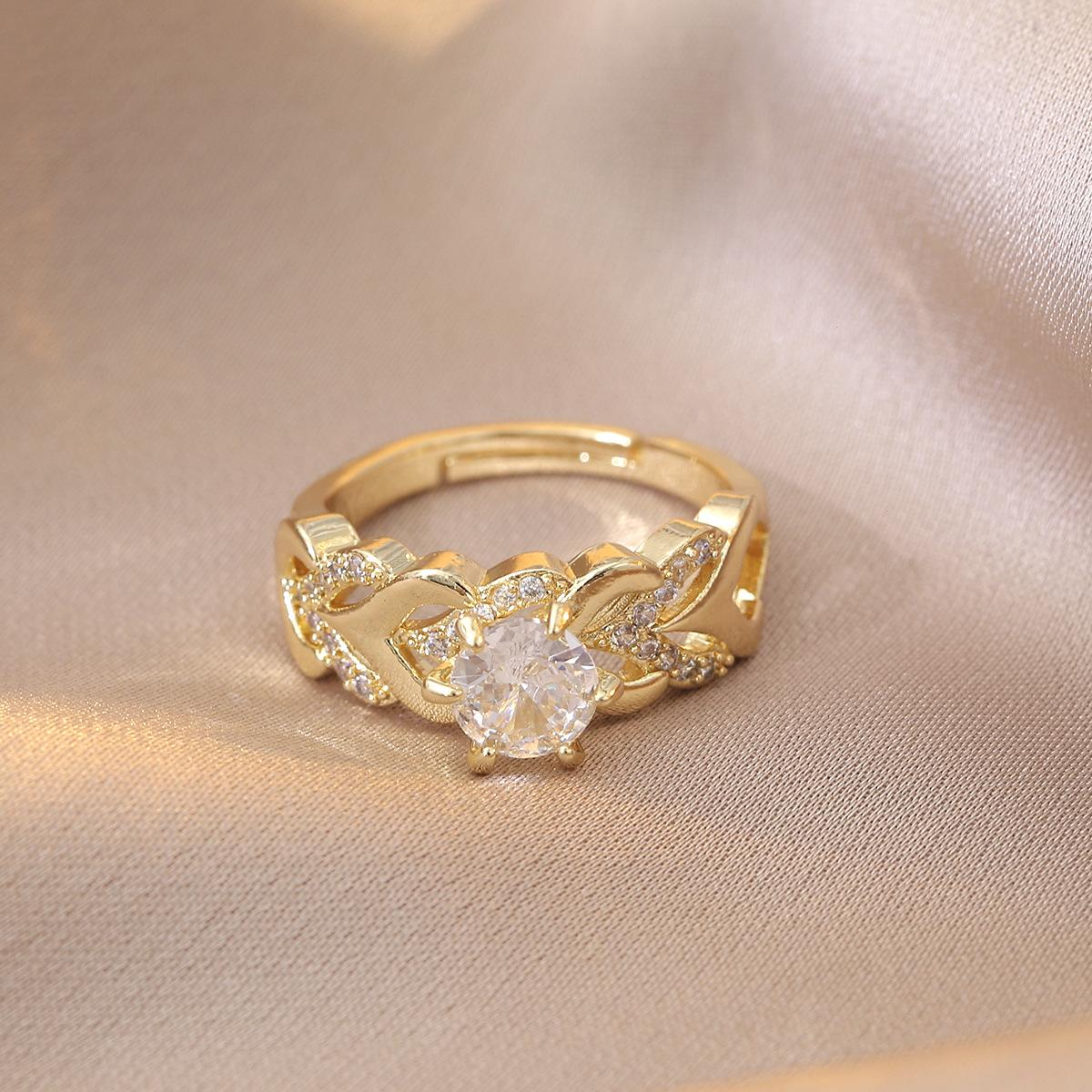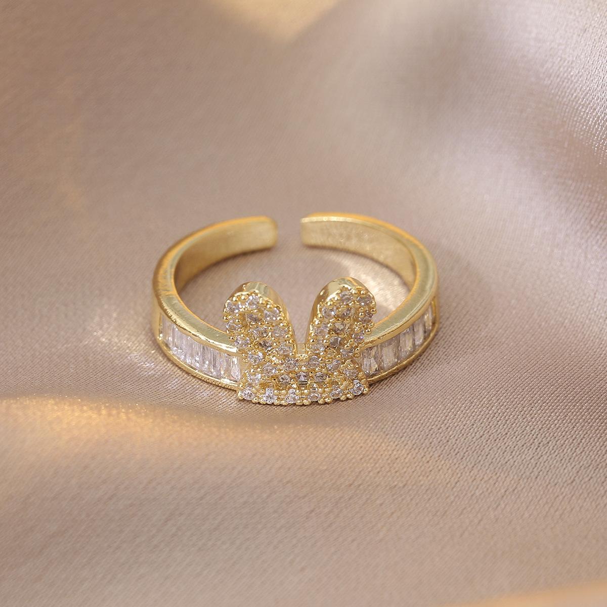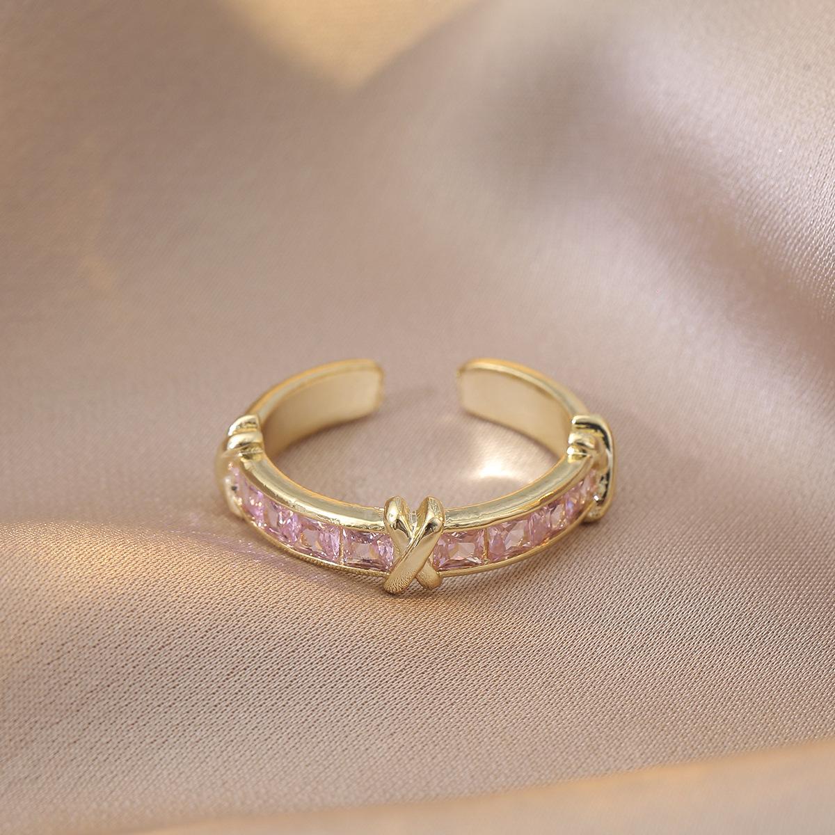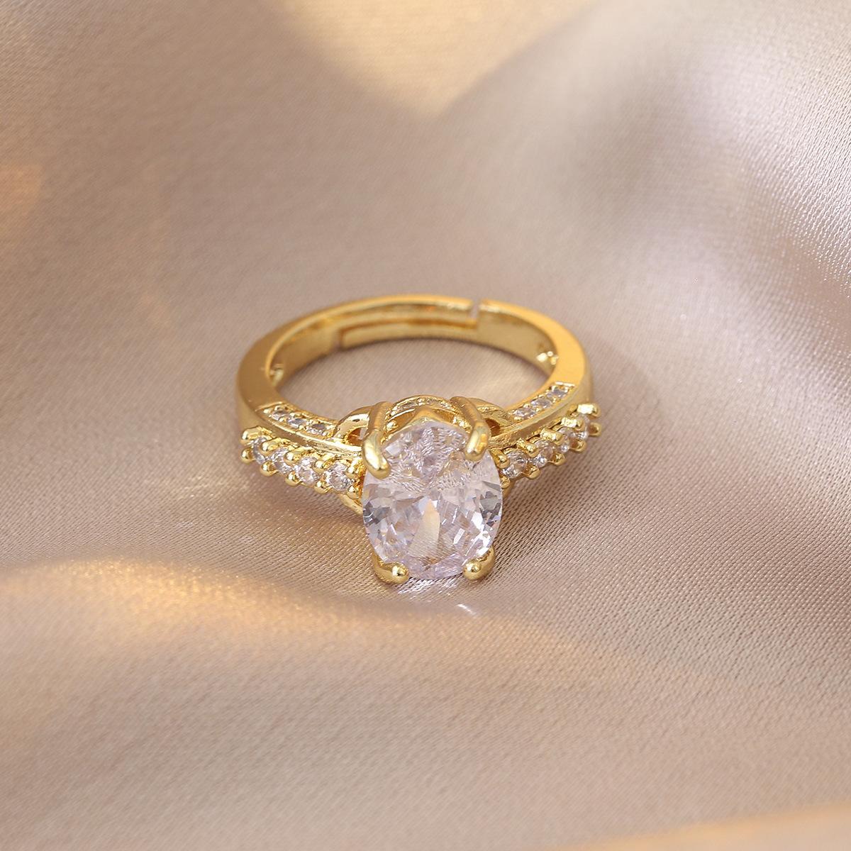 Anillo para Mujer, Anillo Abierto Ajustable Transfronterizo Coreano y Japonés con Circonita, Accesorio de Joyería de Lazo de Temperamento a la Moda