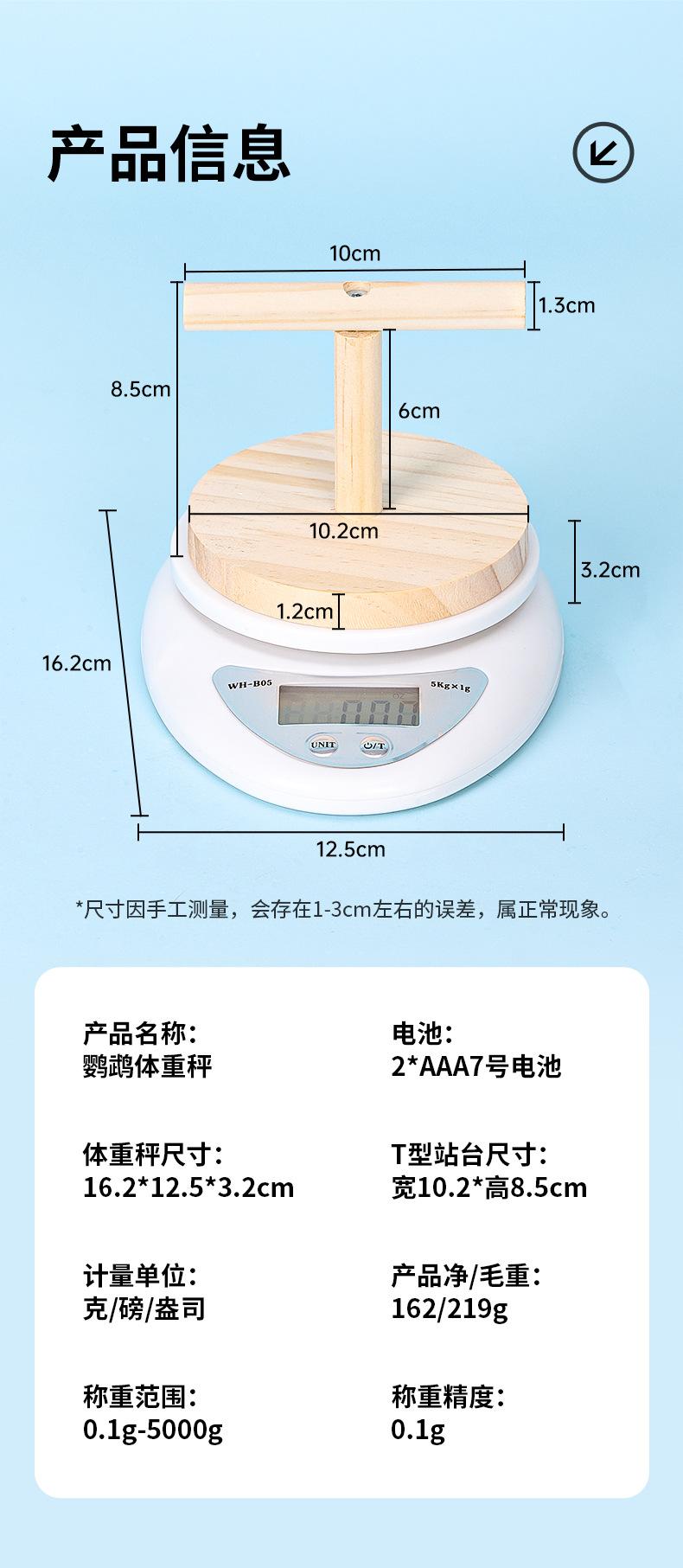 Parrot scale white, Wooden t-shaped station, Parrot weight scale + wooden t-shaped platform