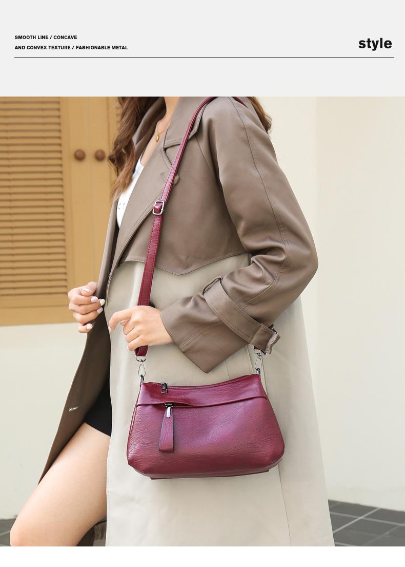 Bolso Cruzado de Moda Nuevo 2025 Bolso Sobaco de Cuero Suave Bolso Simple de Tres Capas para Mujer Bolso de Madre Bolso de Hombro de Gran Capacidad