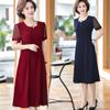Vestido de Verano de Manga Corta para Madre de Mediana Edad Moderno 2025 Nuevo para Mujeres de Mediana Edad y Mayores Falda de Chifón para Señora Ancha de 40 Años