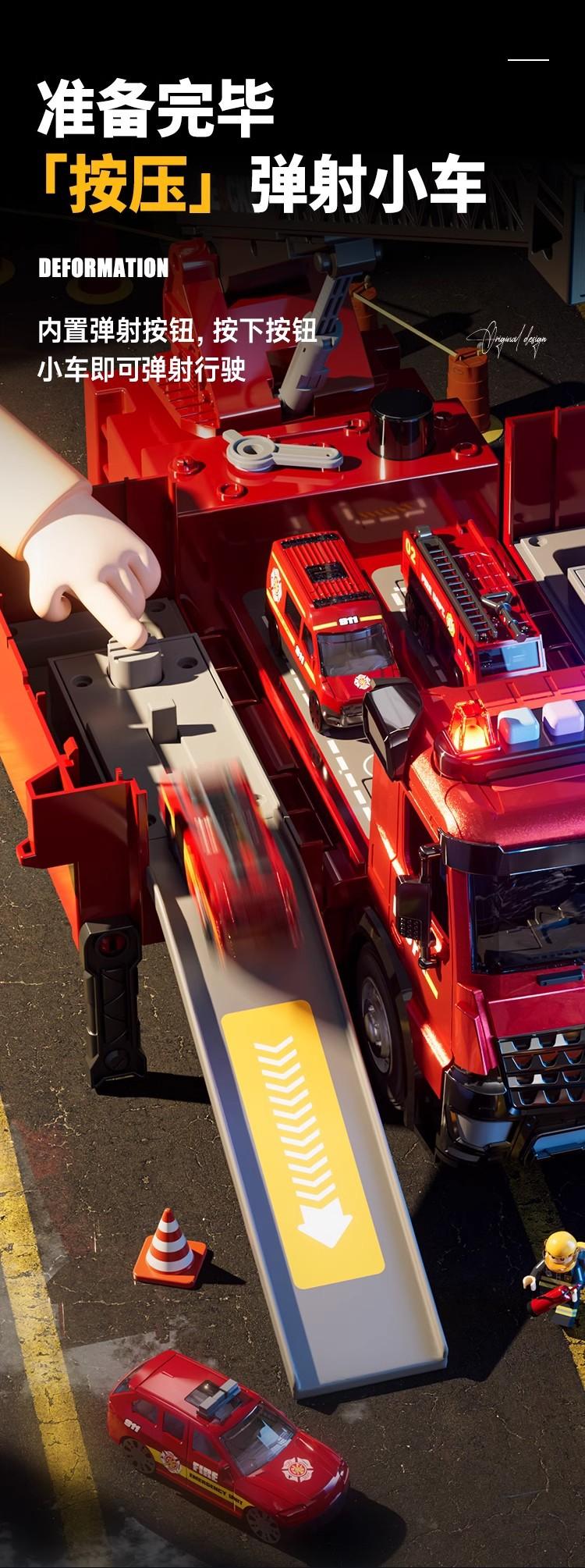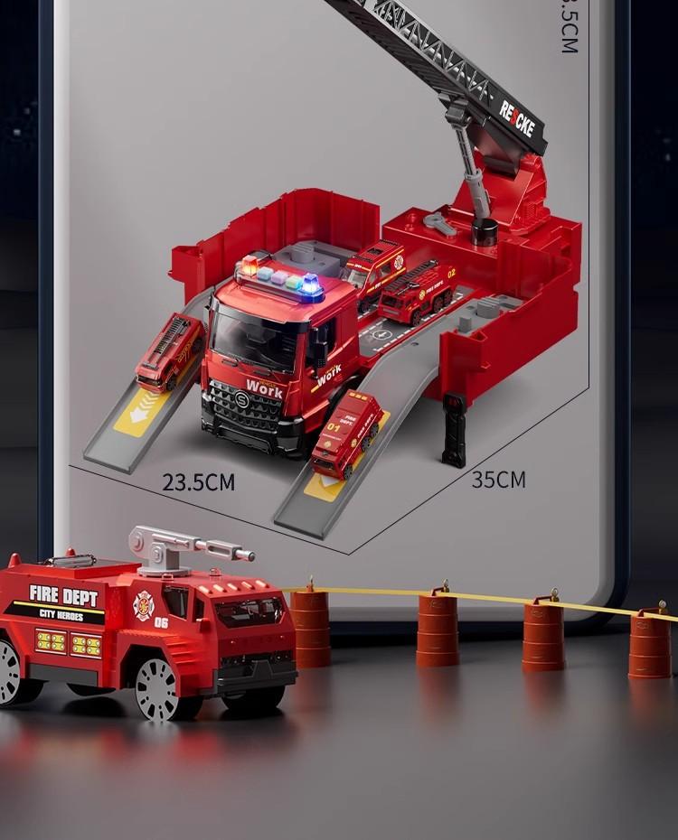 Large size can spray water [deformed fire + track] 4 alloy car (exquisite gift box), Large size can spray wate...
