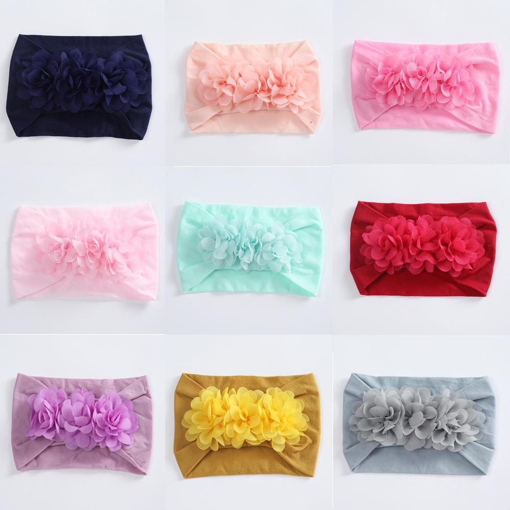 2023 Nuevo Bebé Europeo y Americano Súper Elástico Suave Color Sólido Nylon Lazo Flor Banda para el Cabello Bebé Banda para el Cabello Sombrerería