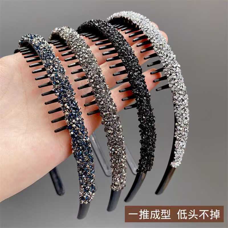 Nueva diadema para mujer, dentada saliente, antideslizante, sencilla, combinable con el cabello roto, con diamantes de imitación, precabeza fija, accesorios para el cabello