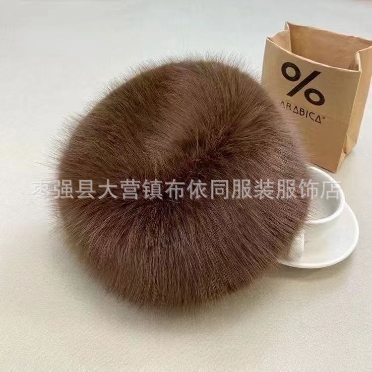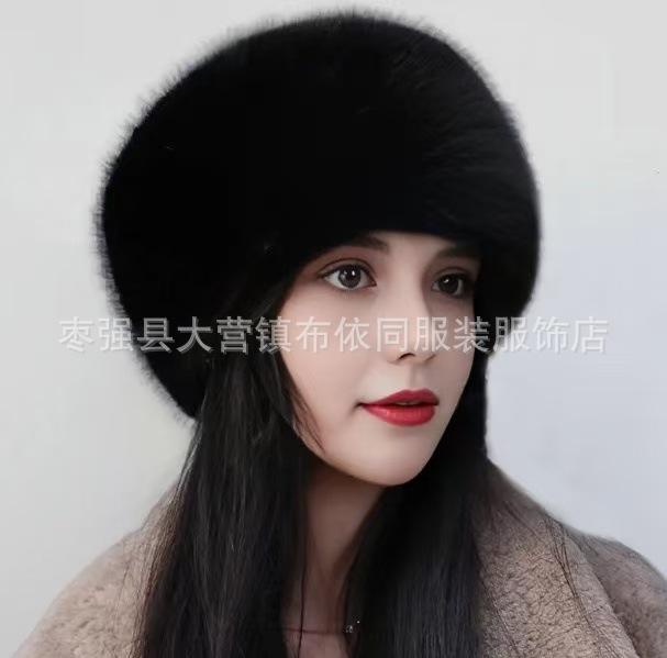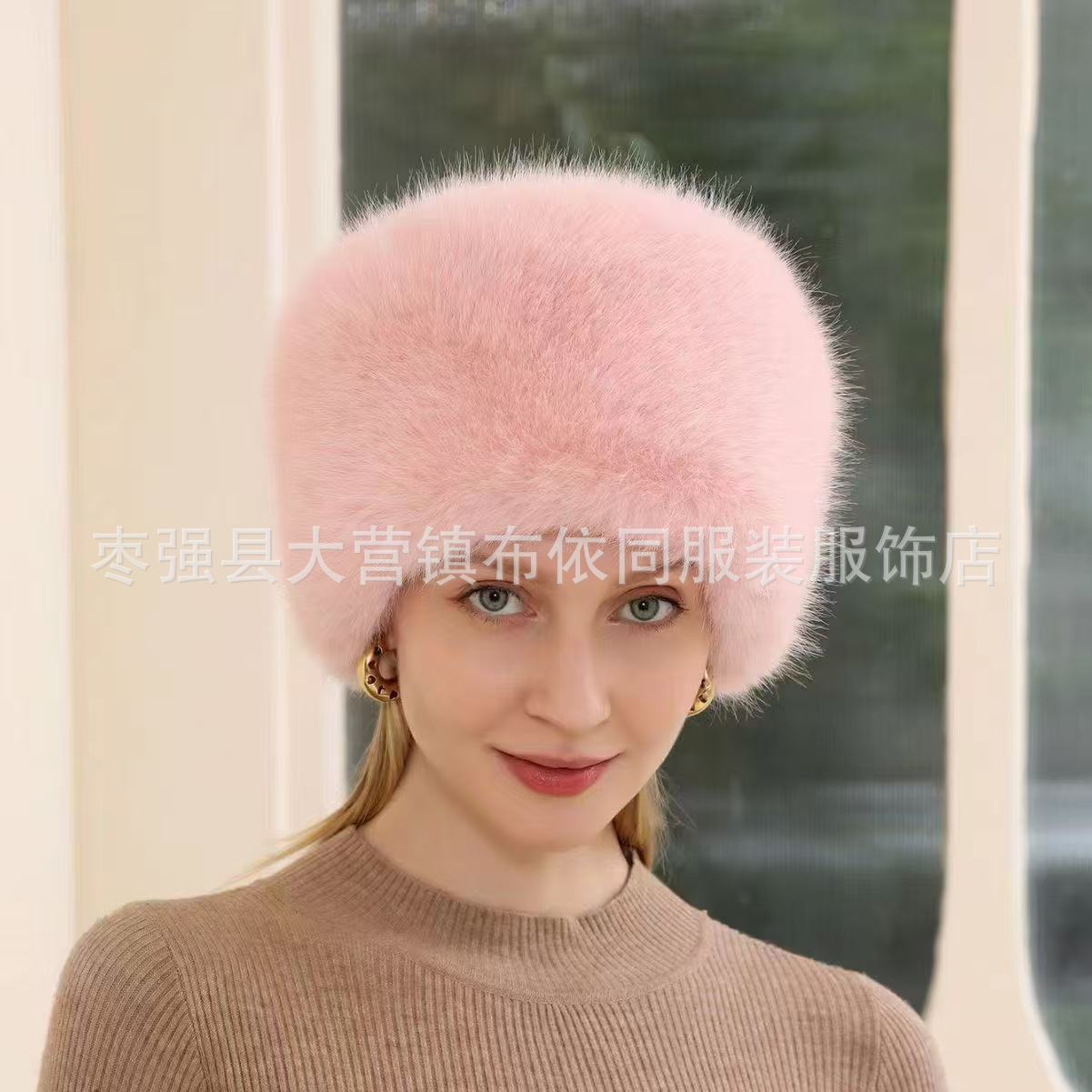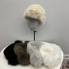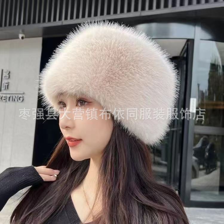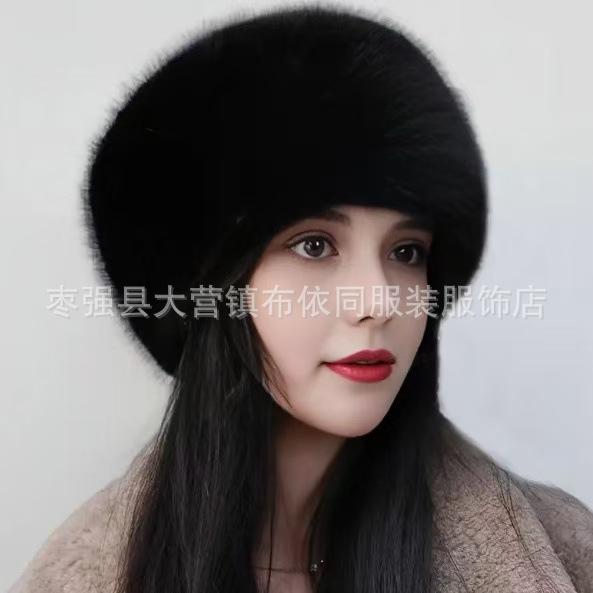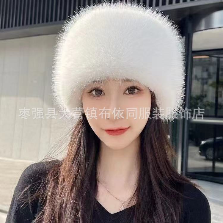 2025 nuevo sombrero plano de piel sintética de zorro, sombrero de cubo de felpa, sombrero de cúpula cálido engrosado con protección para las orejas, sombrero de hada