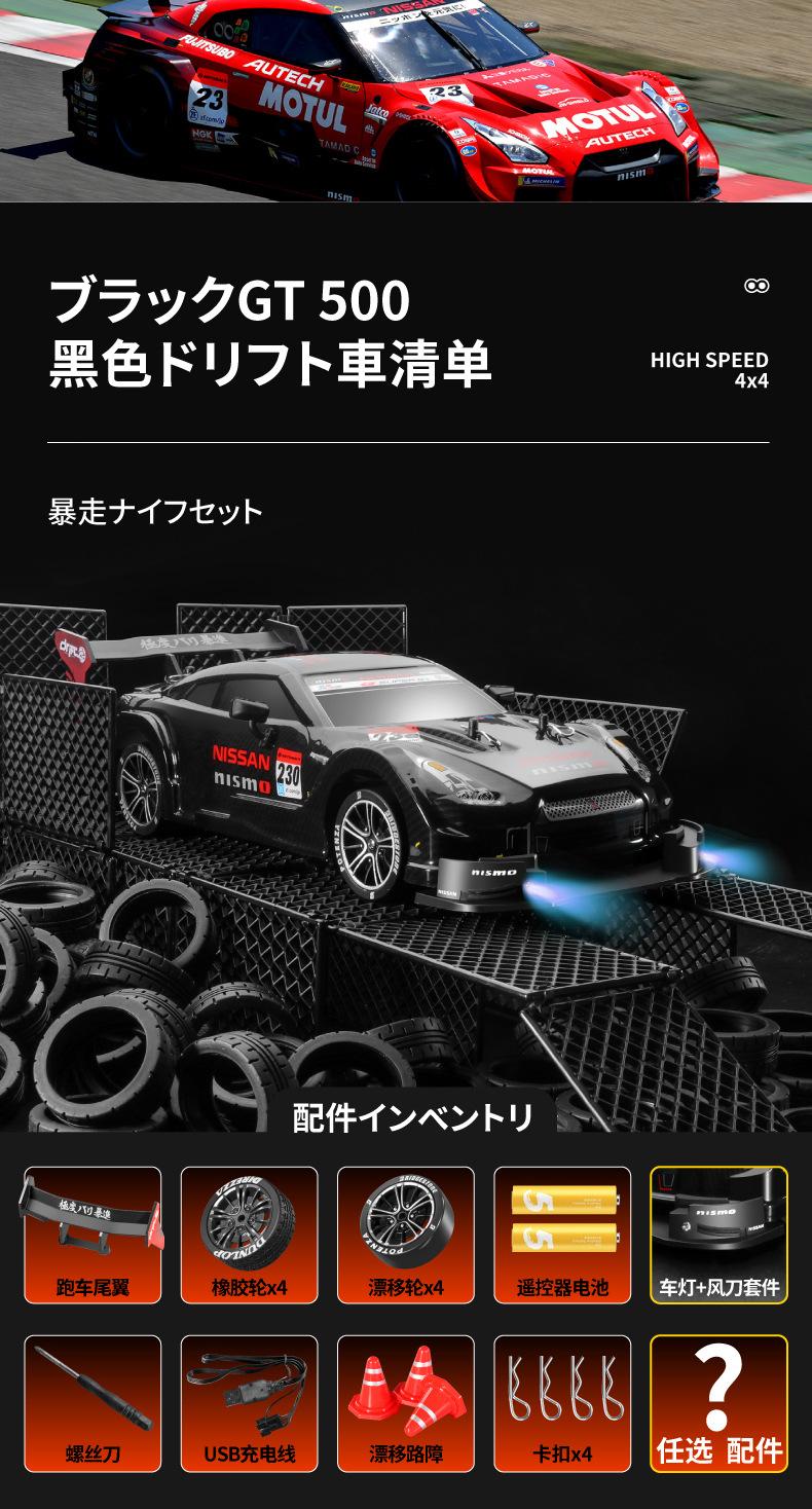 Black gtr (adjustable speed), Red gtr (adjustable speed), Black bmw (adjustable speed), Yellow bmw (adjustable...