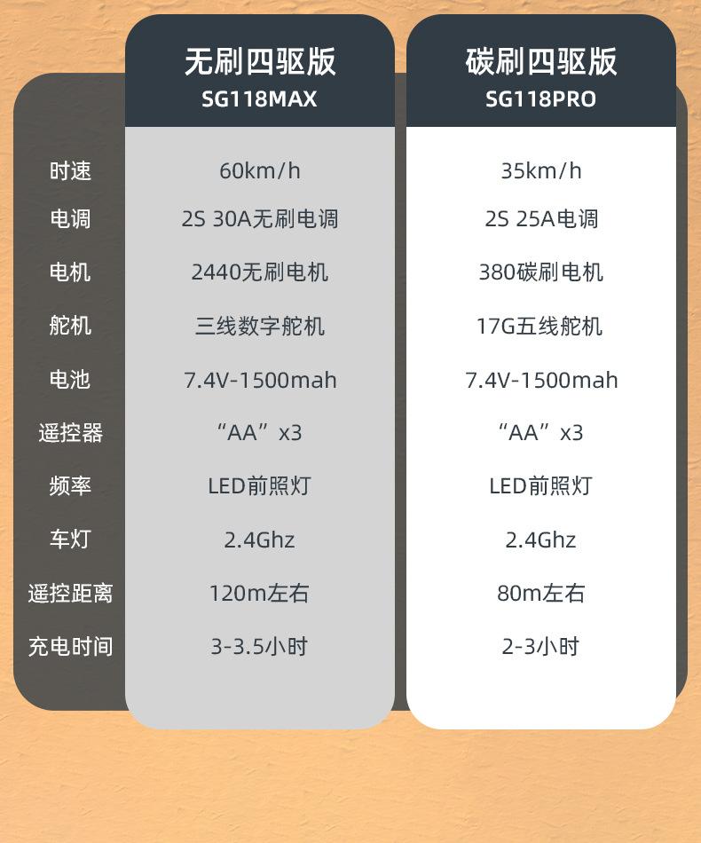SG118PRO+color box [carbon brush version], SG118PRO [battery], SG118MAX + color box [brushless version], SG118MAX [battery]
