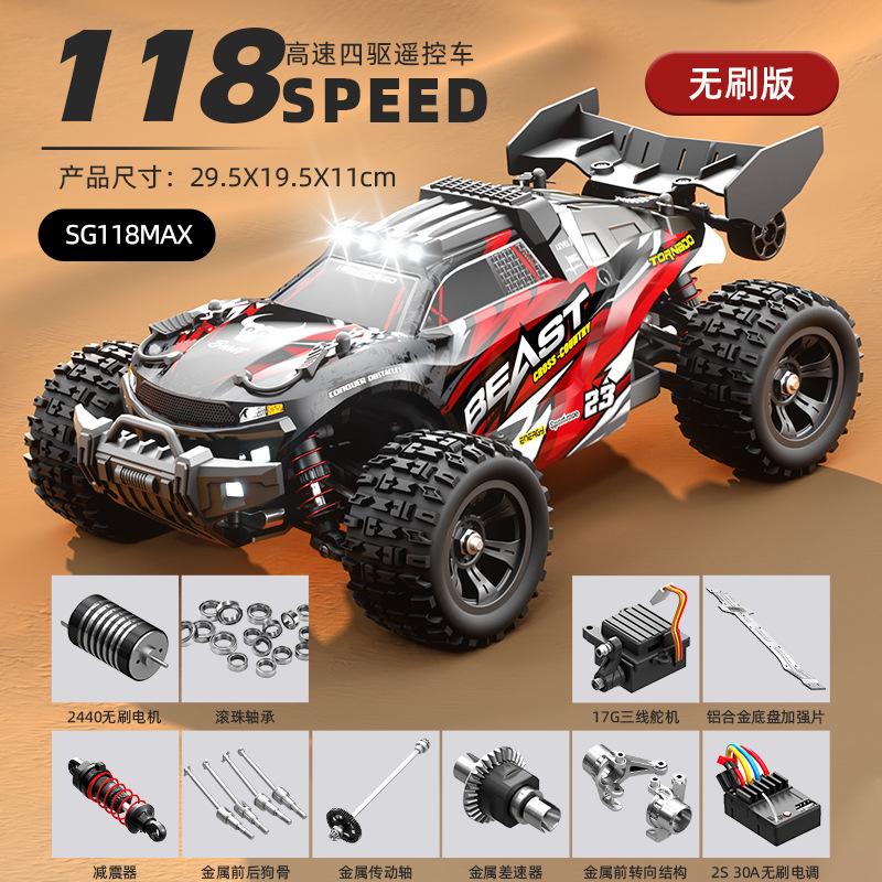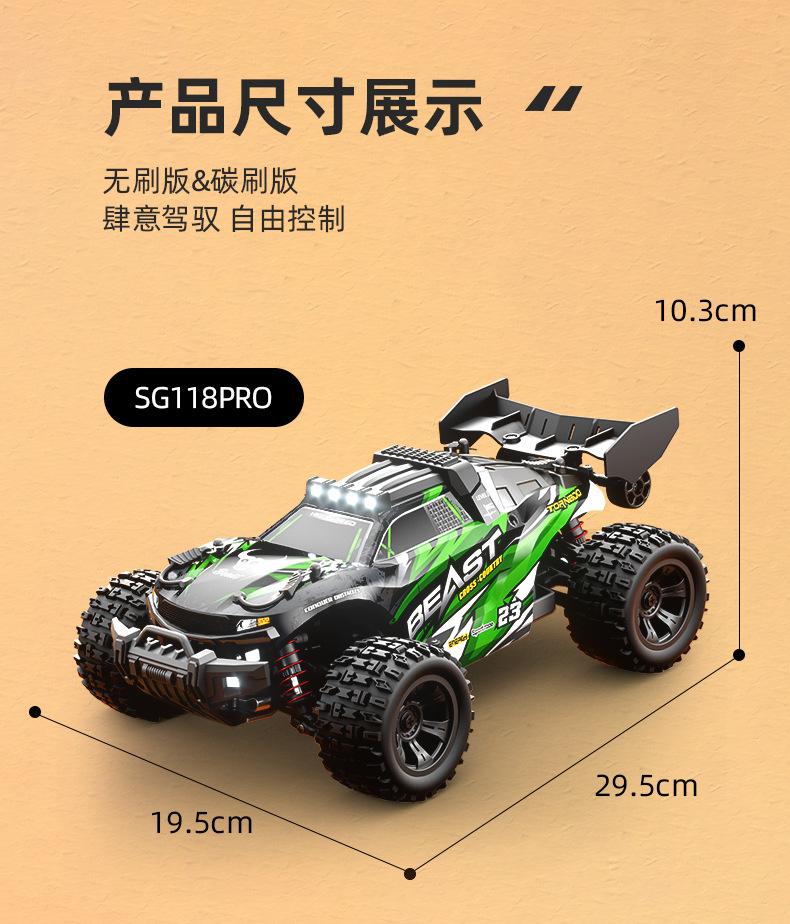 Vehículo todoterreno de alta velocidad sin escobillas con control remoto SG118 1:Coche de escalada profesional a escala 18, coche de juguete con tracción en las cuatro ruedas y control remoto transfronterizo