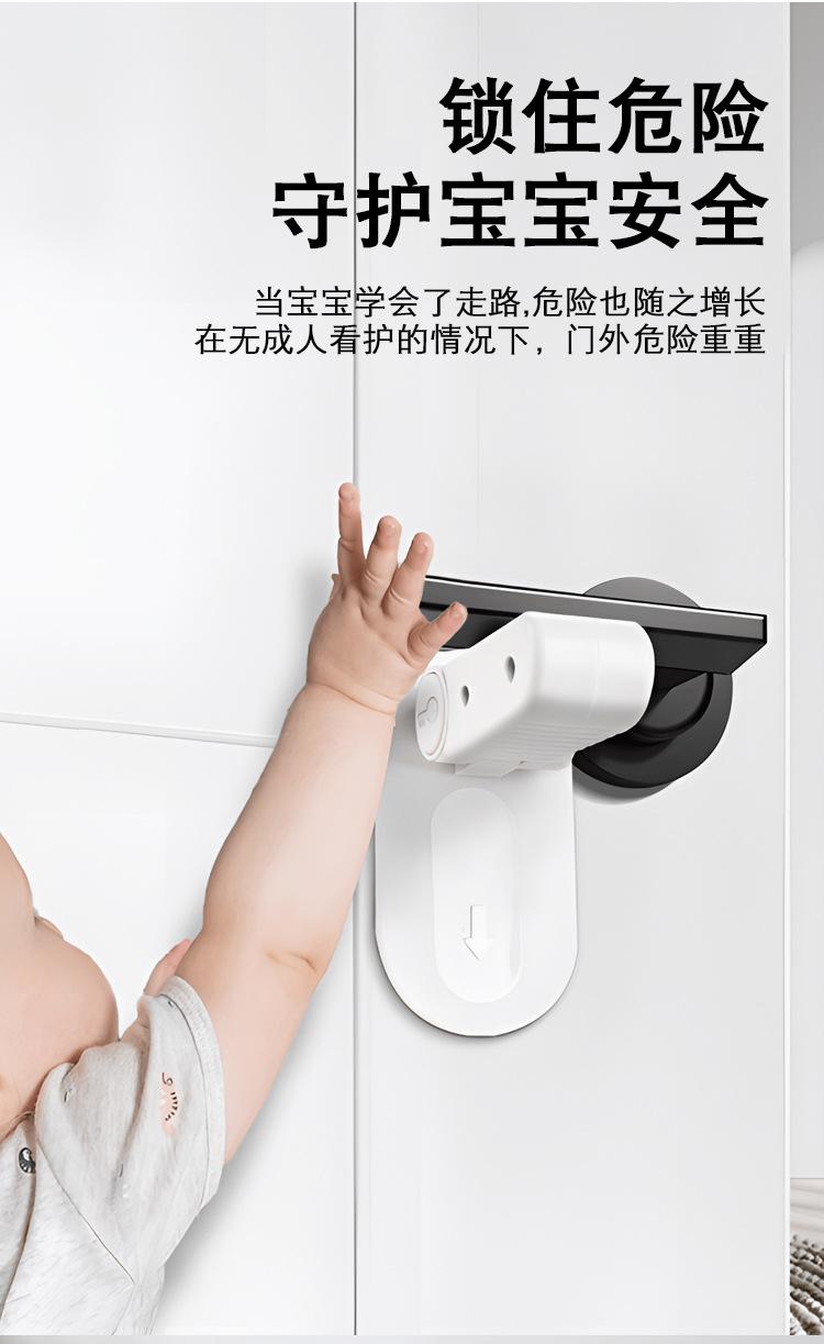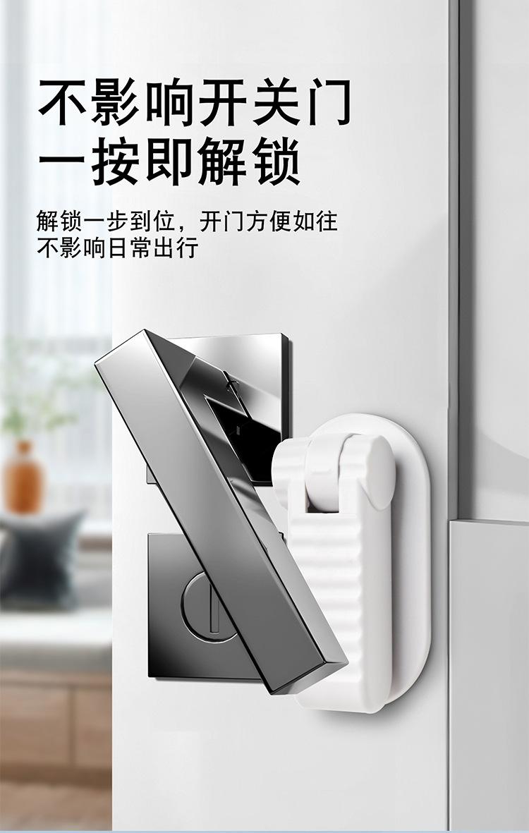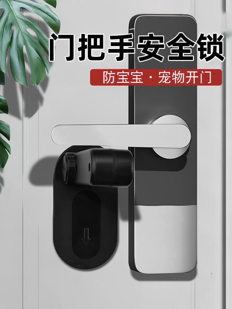 Amazon oferta caliente cerradura de seguridad para manija de puerta sin perforaciones protección de seguridad para niños y mascotas dispositivo de bloqueo trasero fijo para puerta anti-apertura