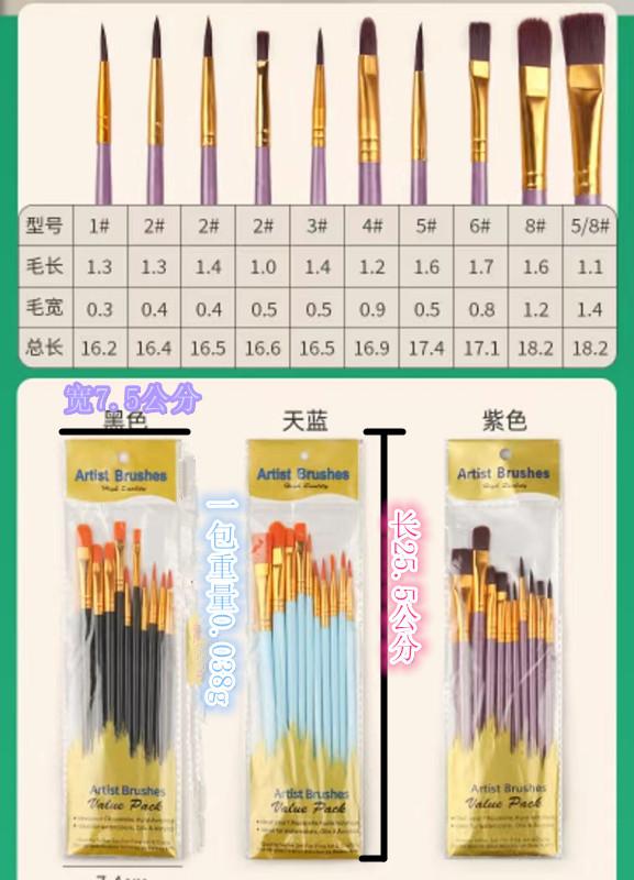 Amazon Cross-Border Juego de 10 Pinceles de Pintura al Óleo Varilla de Plástico Pintura Artística Acuarela Gouache Pincel para Pintar Óleo