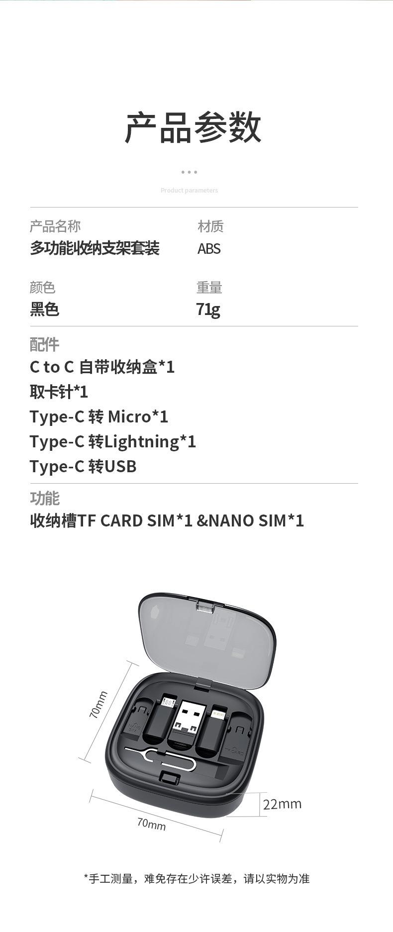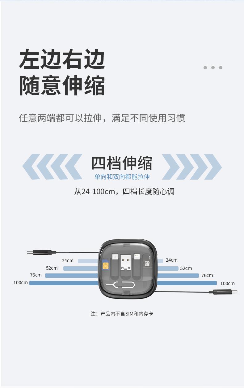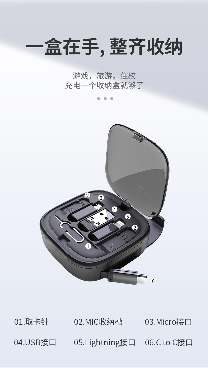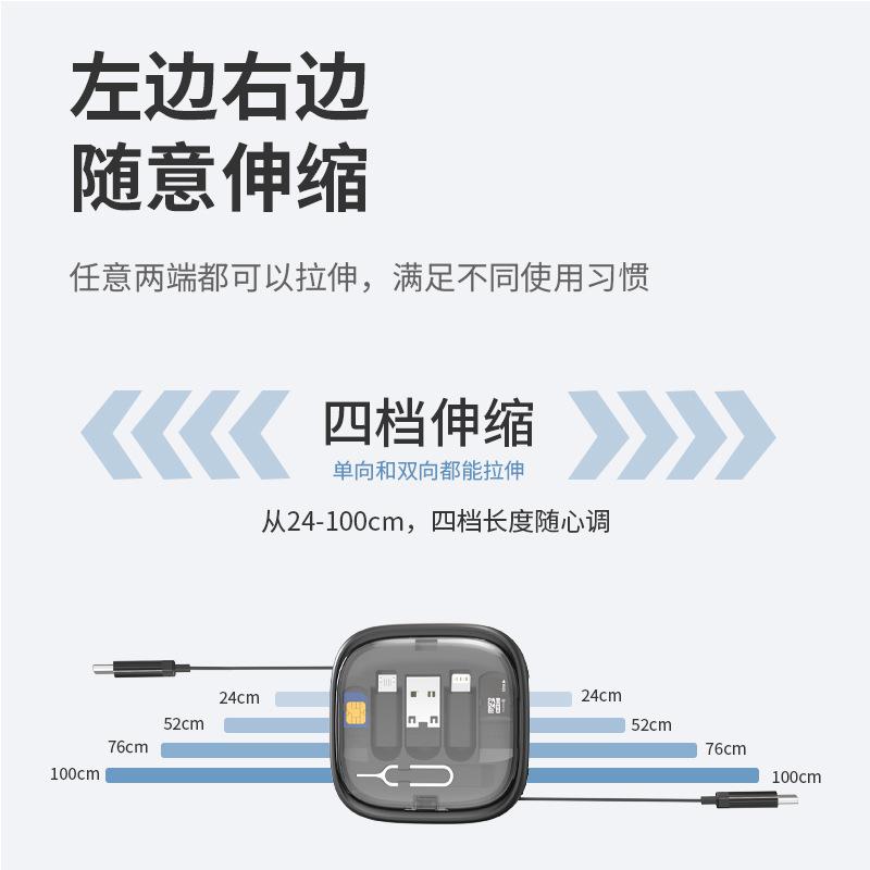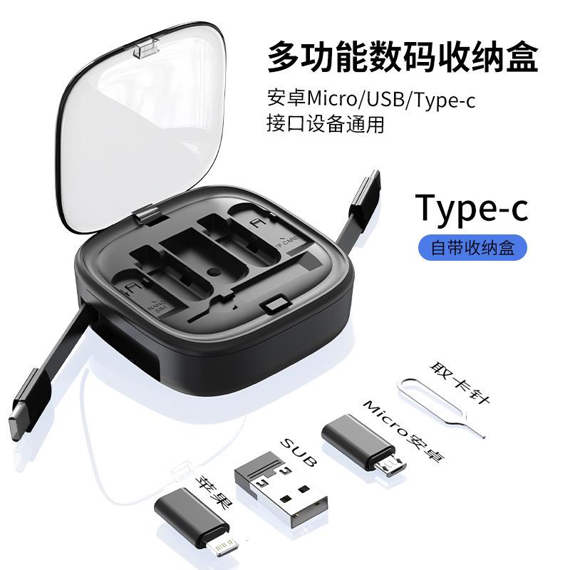 Cable de Datos Retráctil Multifunción de Carga Rápida de 60W Tipo C Adecuado para Android Micro Adaptador Cable de Carga Caja de Almacenamiento