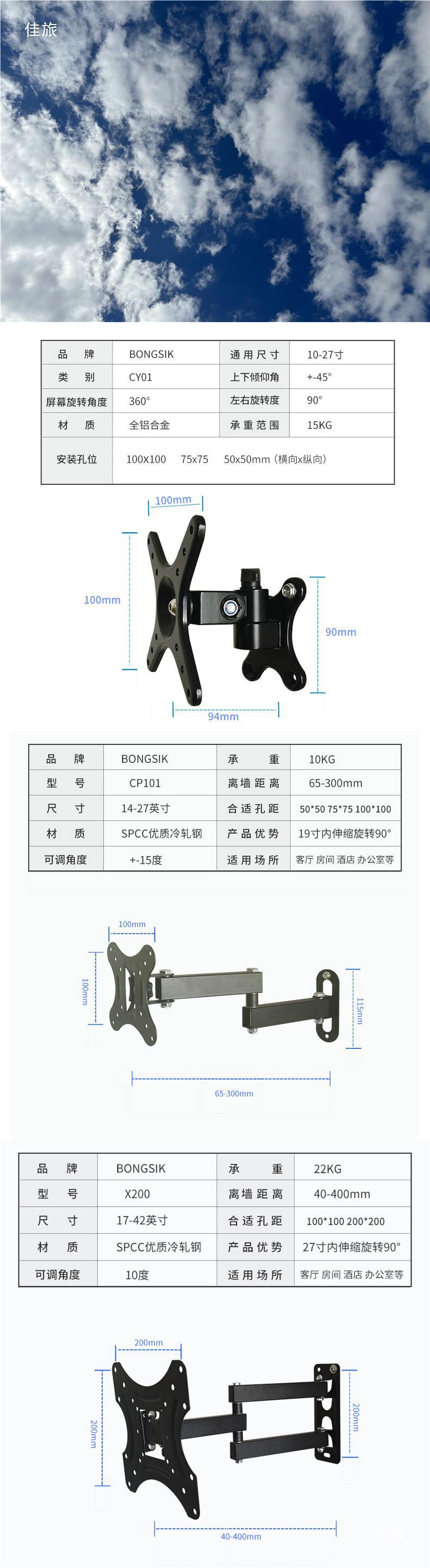 Soporte para Monitor de Computadora Montado en la Pared Universal Removible Telescópico Giratorio Estante para TV Aleación de Aluminio Estante de Pared