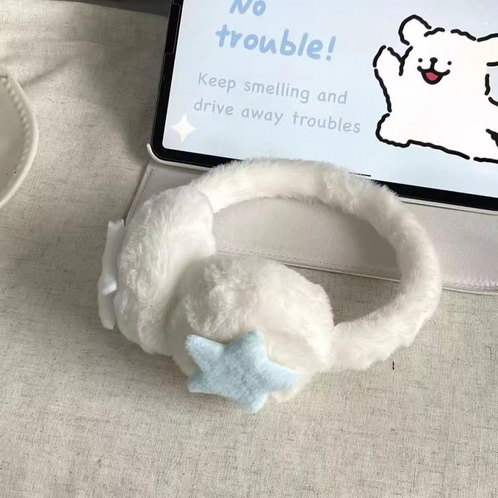 Star plush earmuffs-blue and white [retractable], Star plush earmuffs-yellow and white [retractable], Star plu...