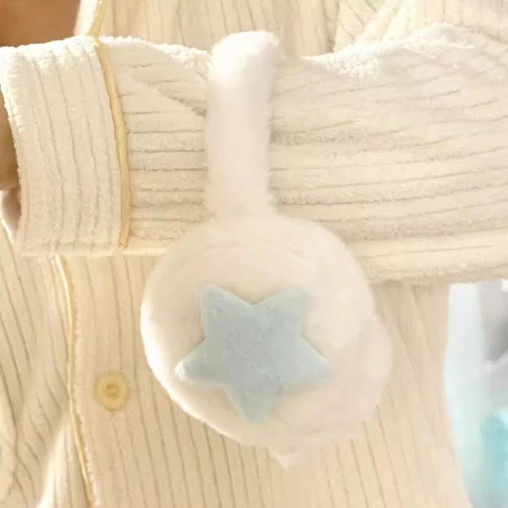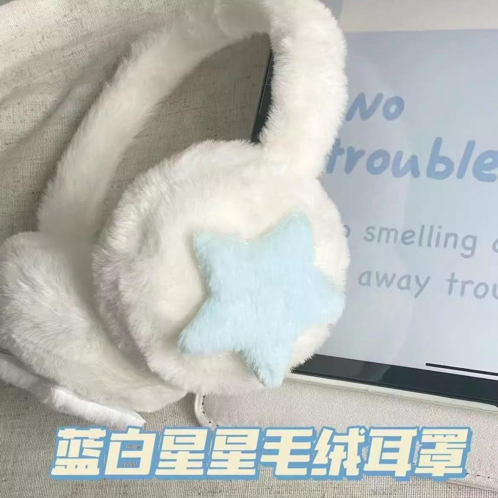 Star plush earmuffs - blue and white + blue and white [2 pieces] retractable