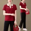 Traje deportivo de verano para mujer 2025 nueva moda temperamento extranjero madre manga corta pantalones cuello alto para correr conjunto de dos piezas
