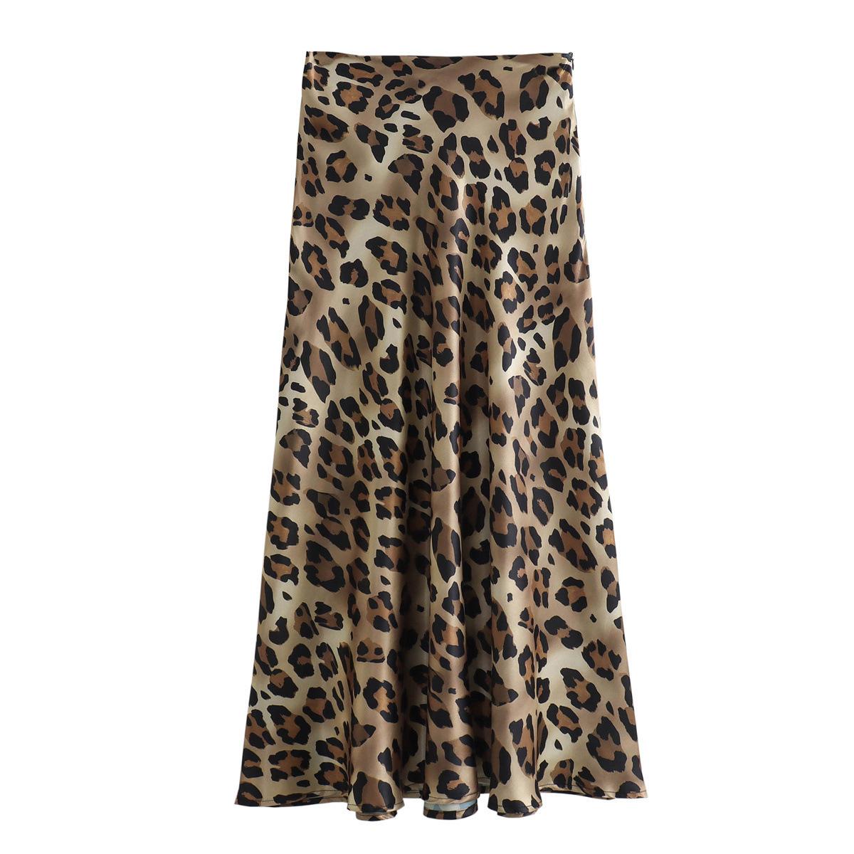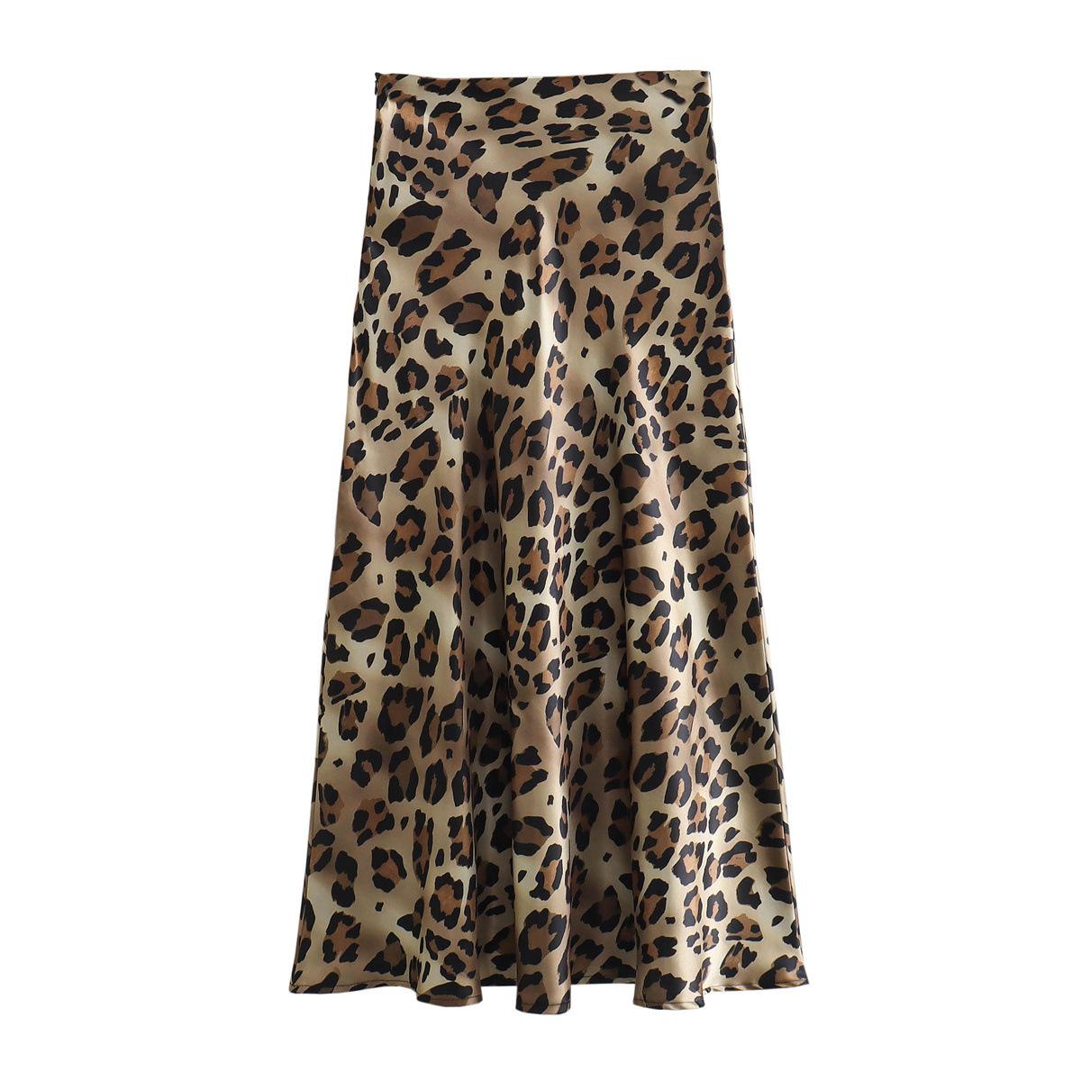 Europa y Estados Unidos venta al por mayor 2024 verano nueva falda con estampado animal textura satén de seda falda de cintura alta M4-A748