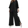 Conjunto de dos piezas para mujer transfronterizo europeo y americano, camisa de manga larga para mujer, pantalones de color sólido, traje de pierna ancha