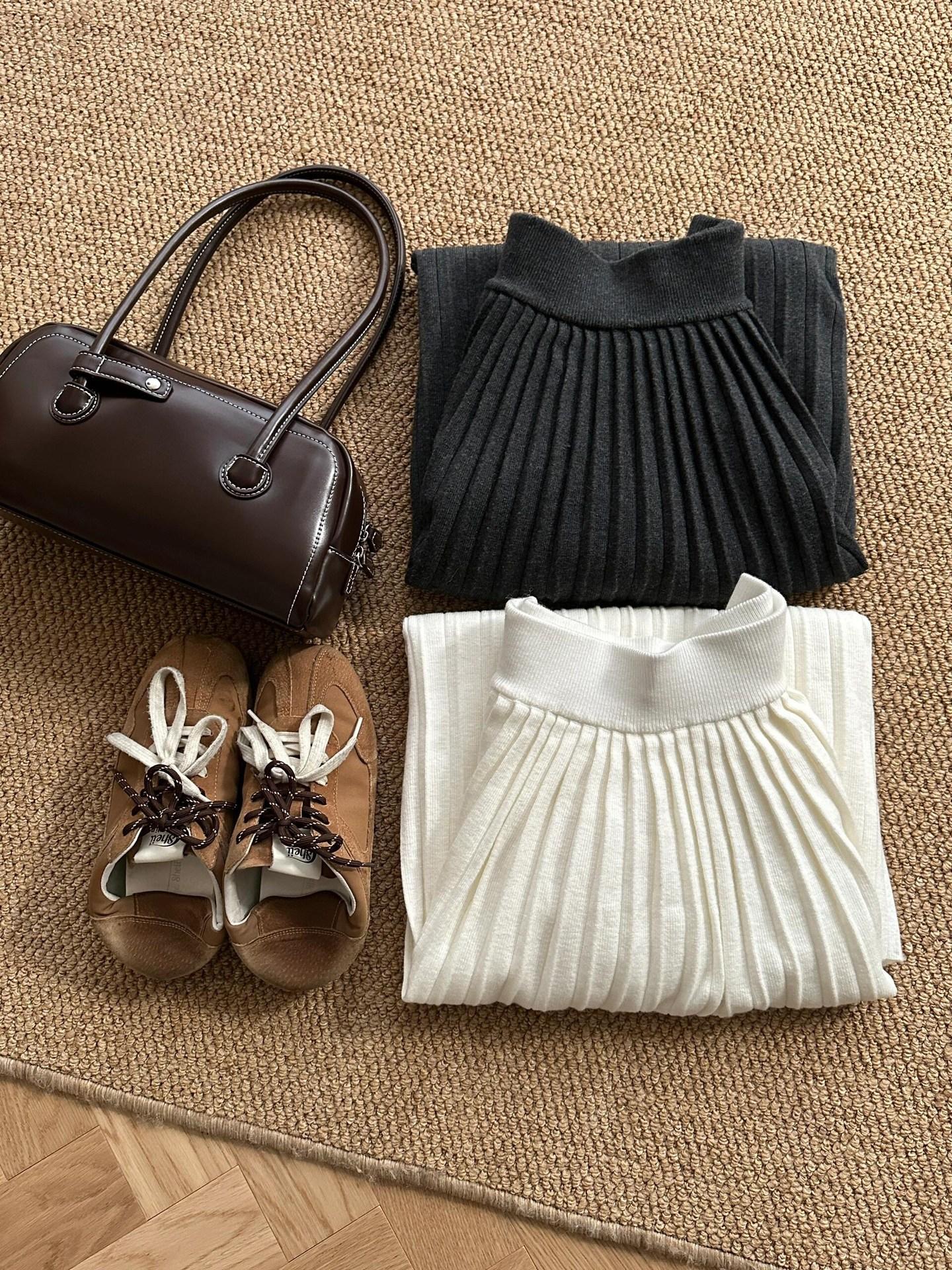 Falda plisada gris oscuro para mujer, otoño e invierno, nueva llegada, cintura alta, suelta, combinable, pequeña, elegante, línea A.
