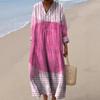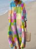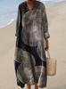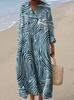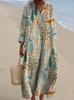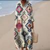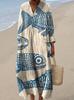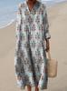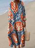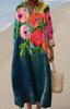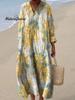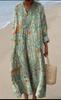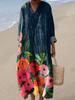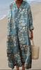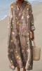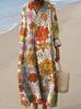 Estación Independiente Transfronteriza Amazon Vestido Camisero de Manga Larga para Mujer Casual Floral Manga Estampada en 3D Falda Larga E023