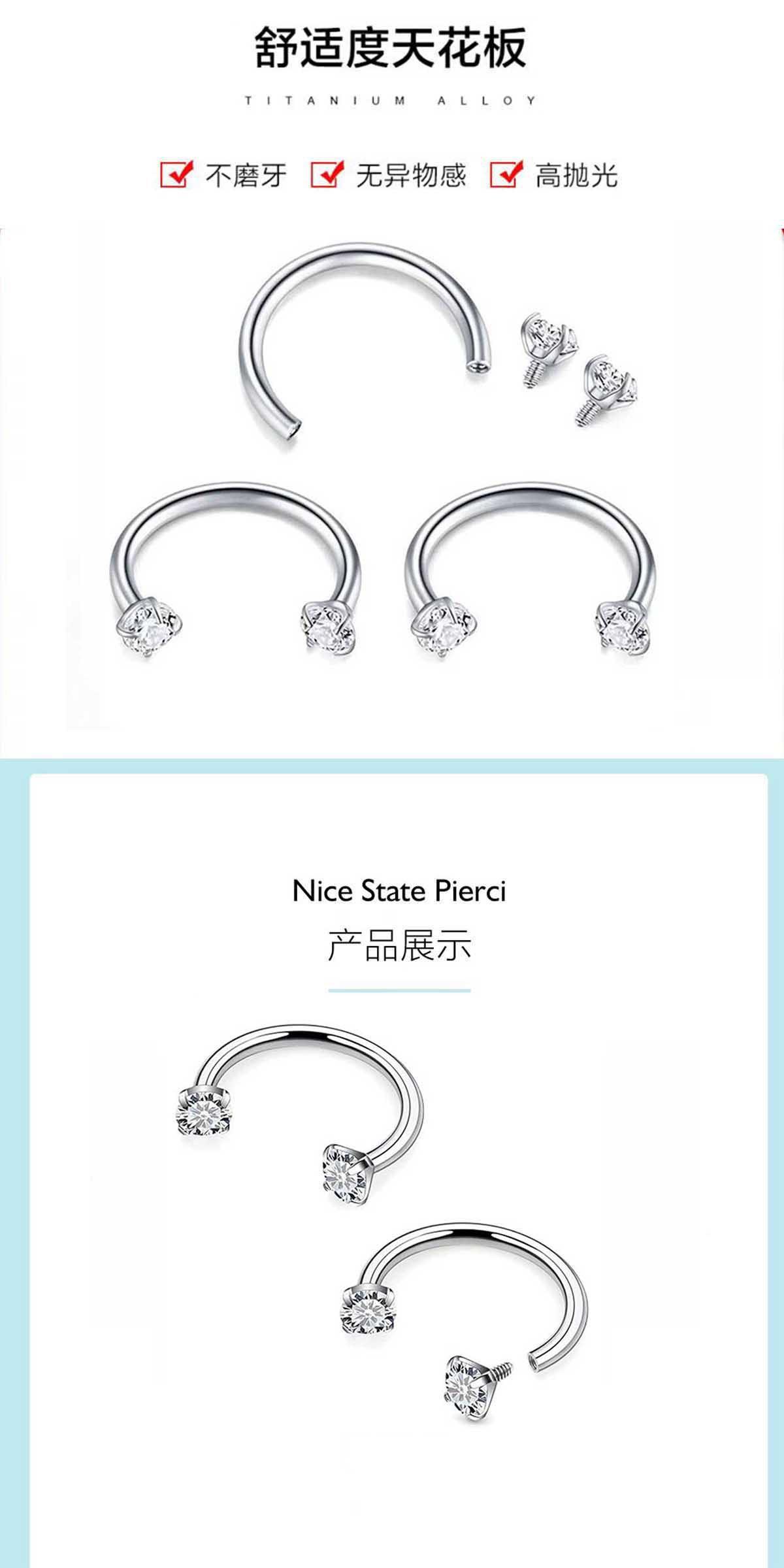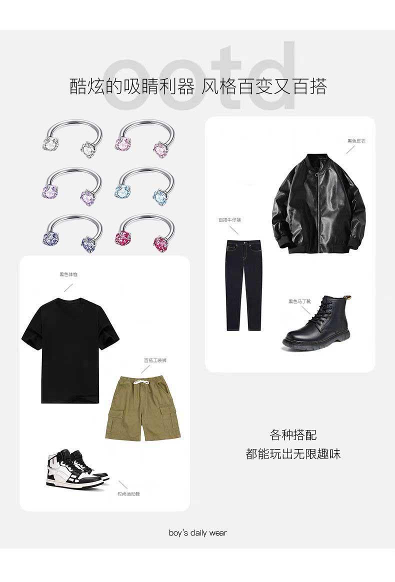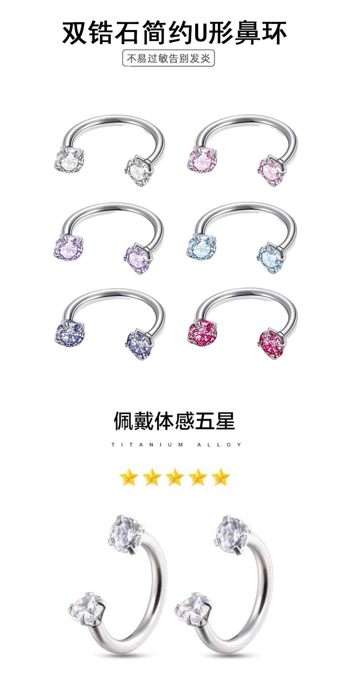Piercing de Nariz en Forma de D Transfronterizo Multicolor Barra Plana de Herradura Anillo Acero Inoxidable Simple Doble Zircón en Forma de U