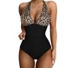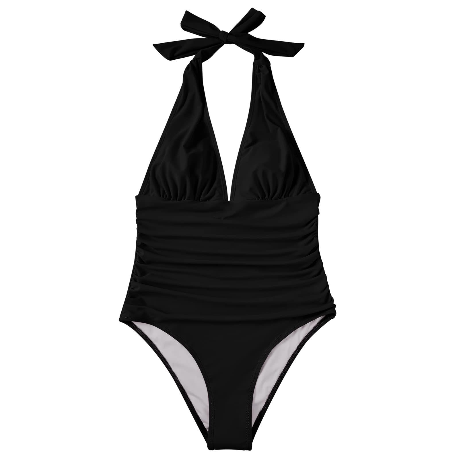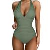 2025 Europeo y Americano Amazon Sexy Cuello en V Color Puro Exportación Liso Traje de Baño de Mujer Triángulo Traje de Baño de Una Pieza Halter