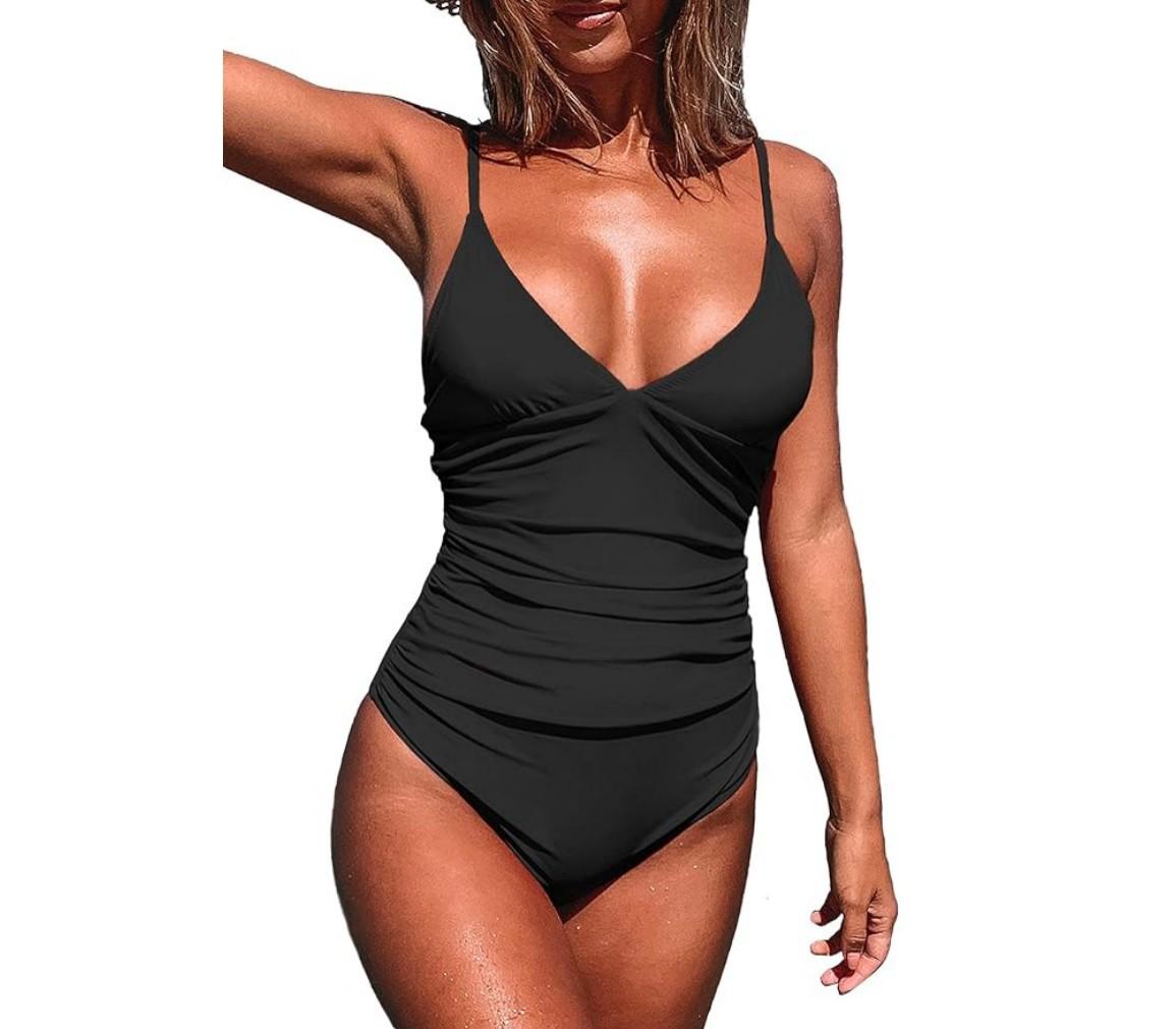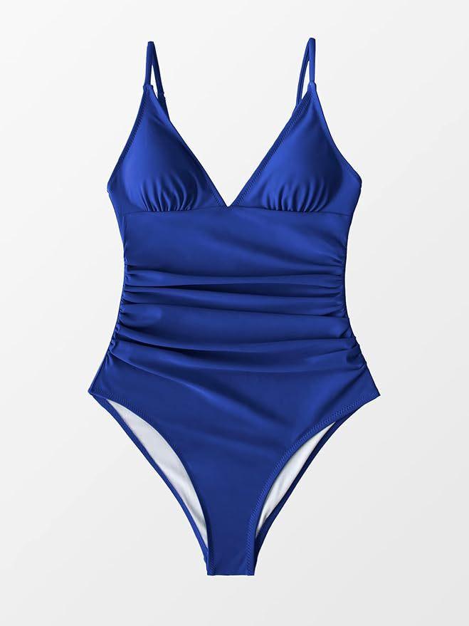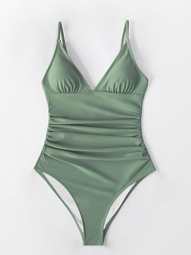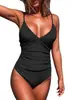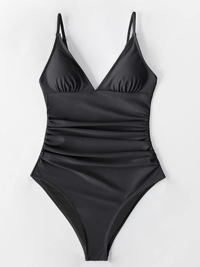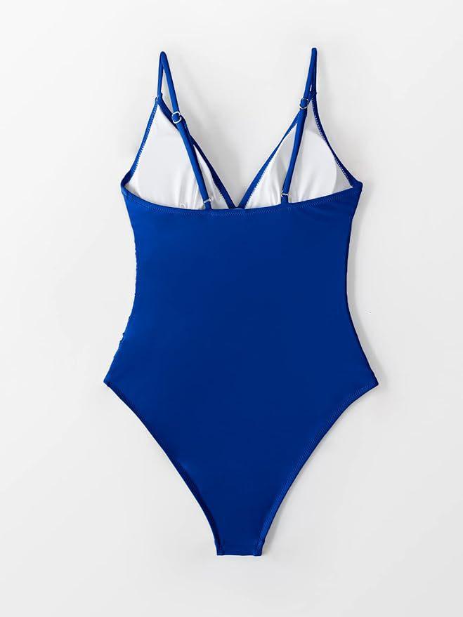 Traje de baño de una pieza más popular de Amazon para mujer, escote en V profundo, color puro, sexy, protección solar, traje de baño europeo y americano, bikini sin espalda transfronterizo