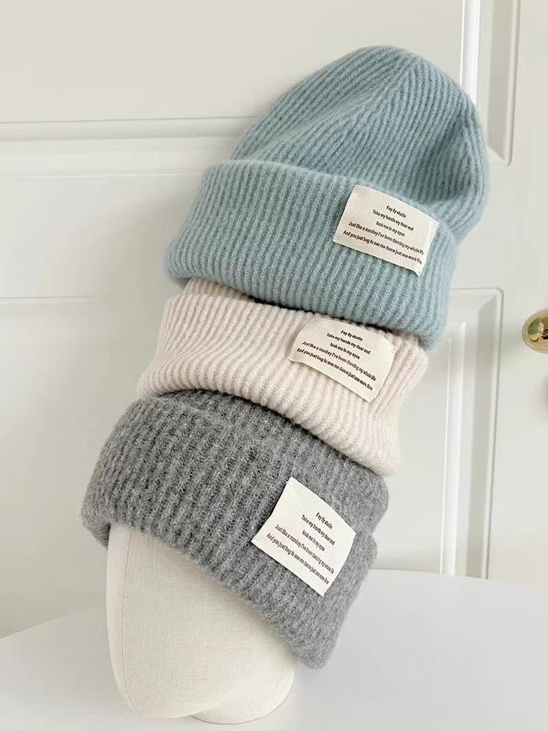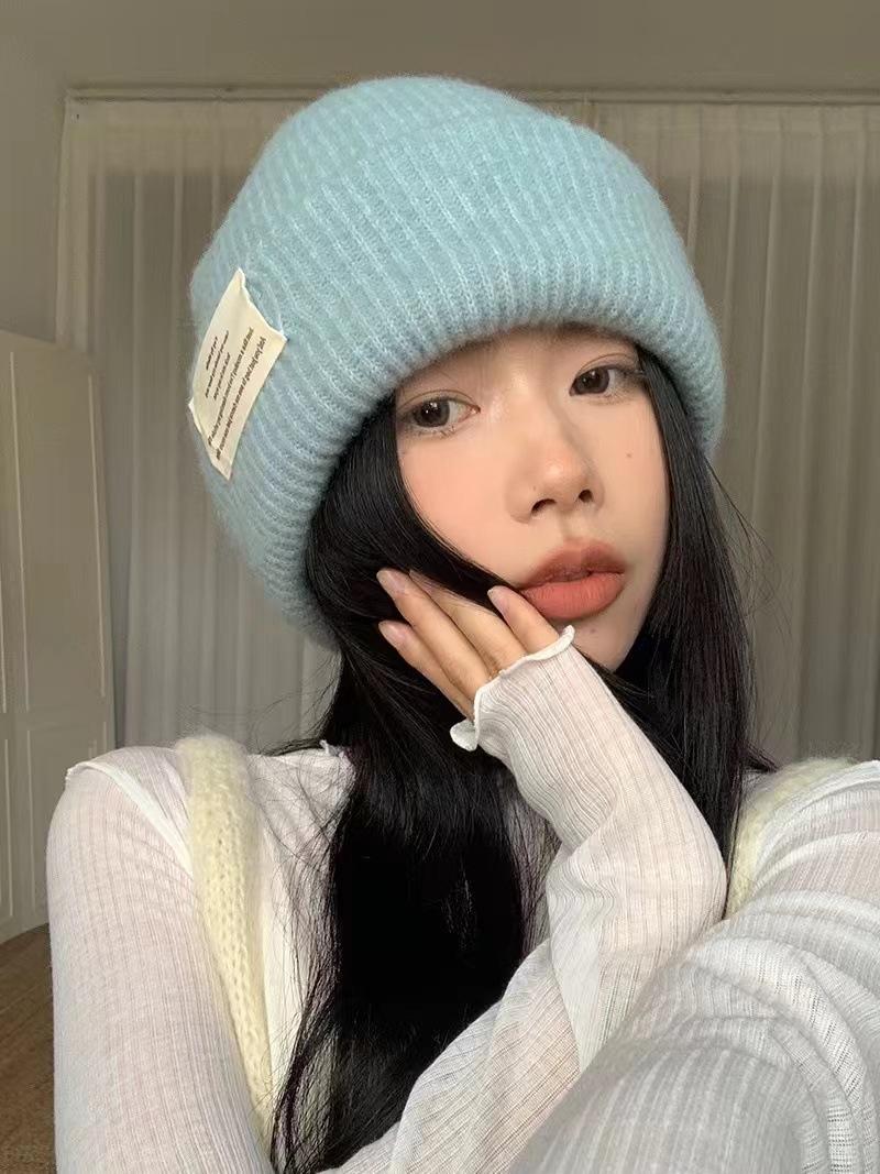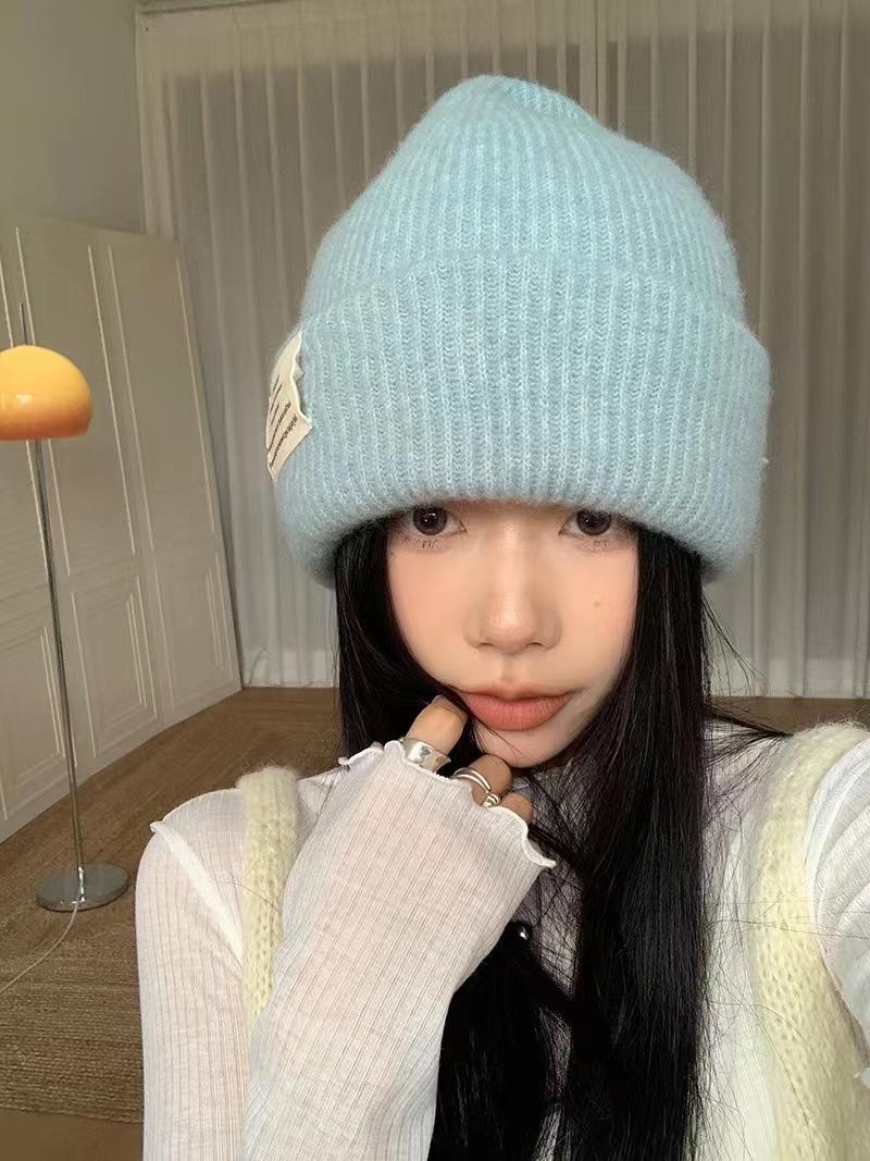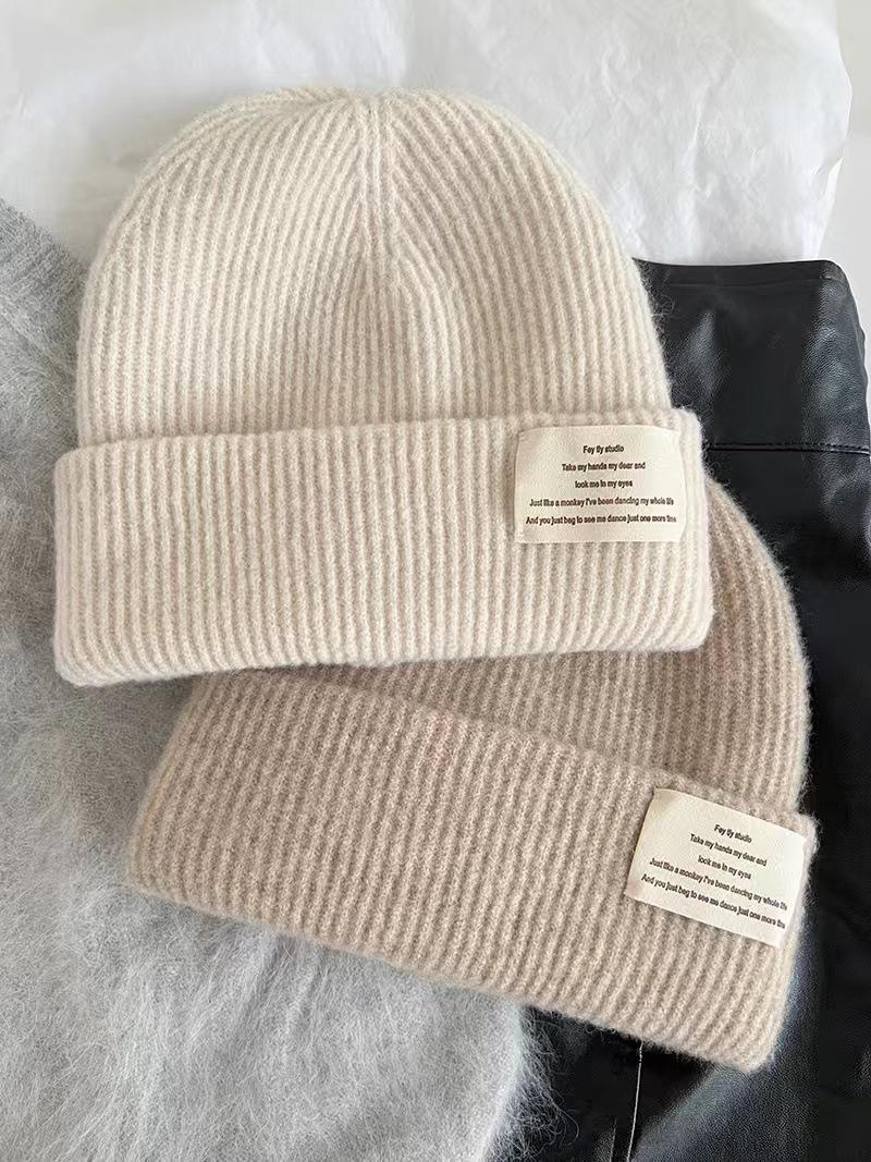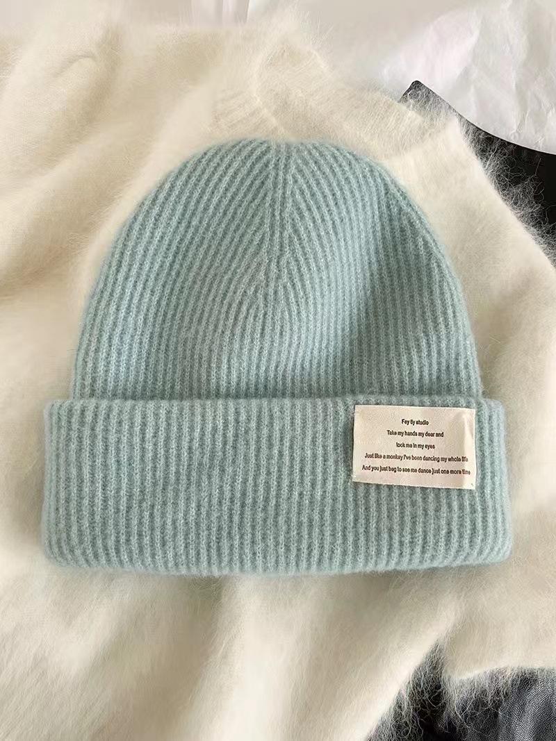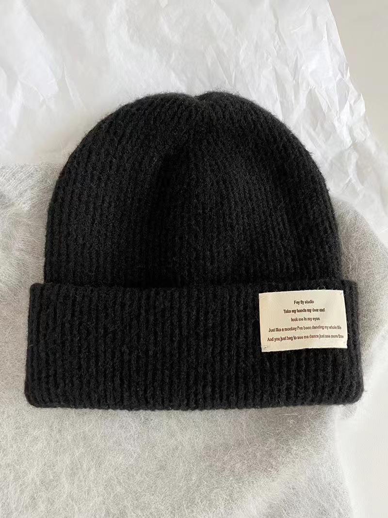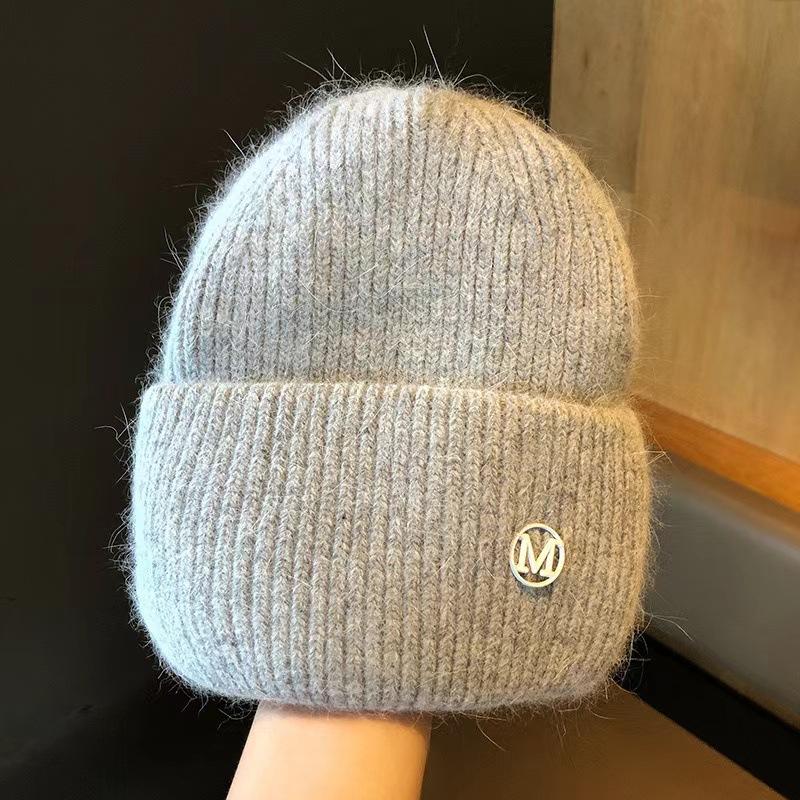 Gorro de Invierno para Mujer de Lana Tejido Grueso Cálido Lana Letra Combinable a Todo Prueba de Viento Frío para Salir Montar