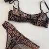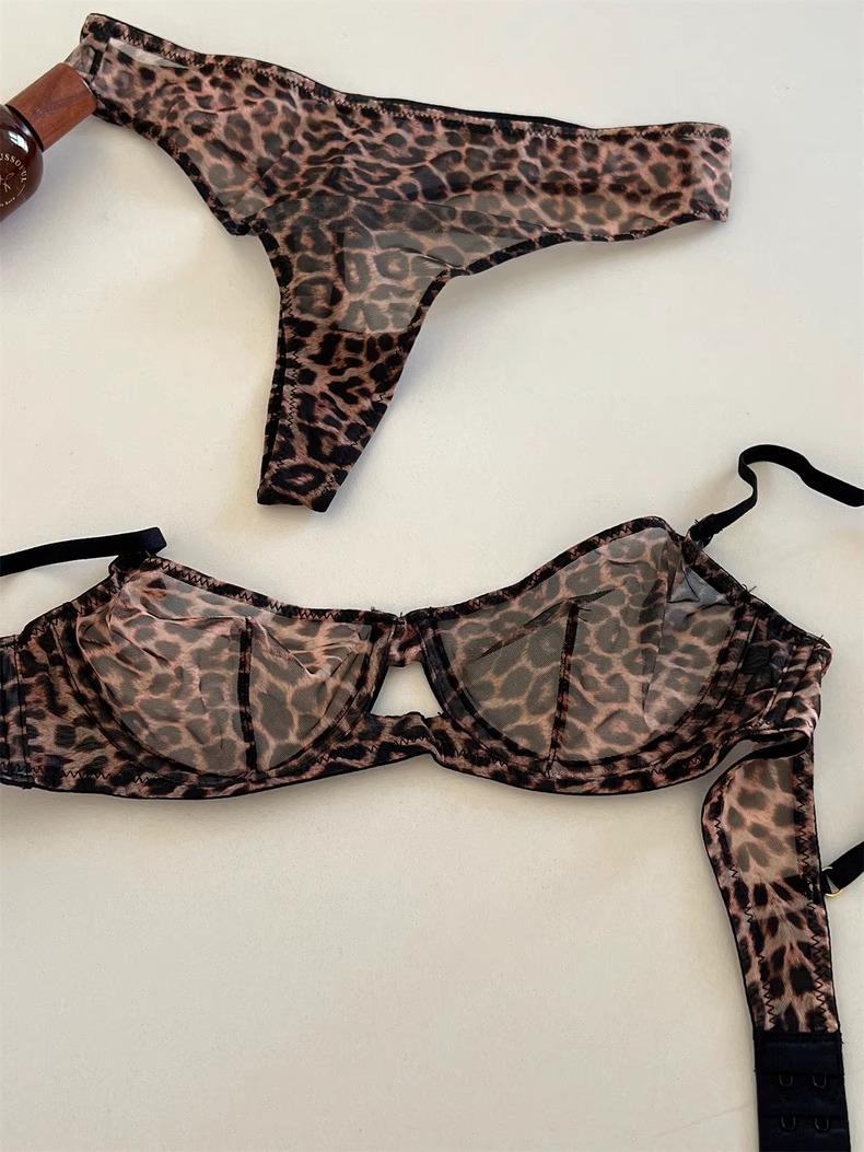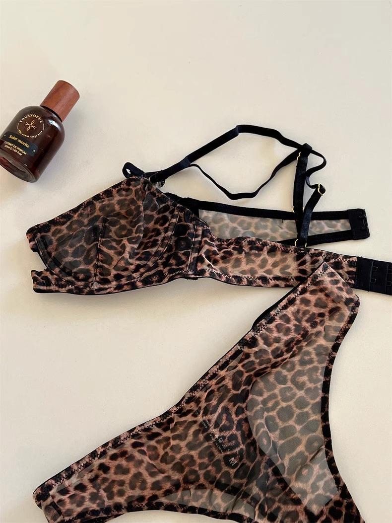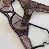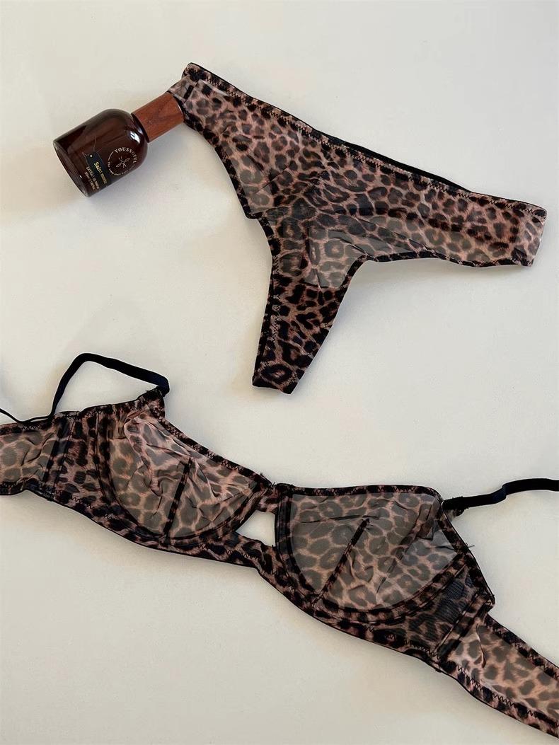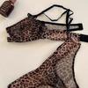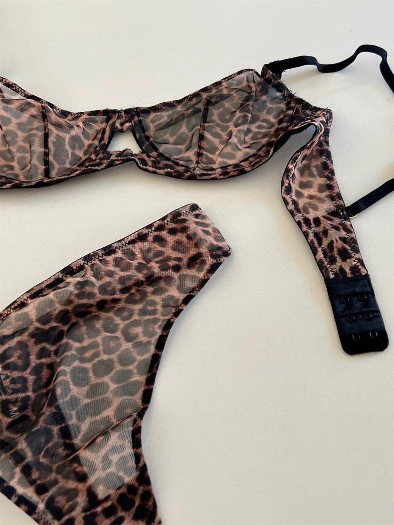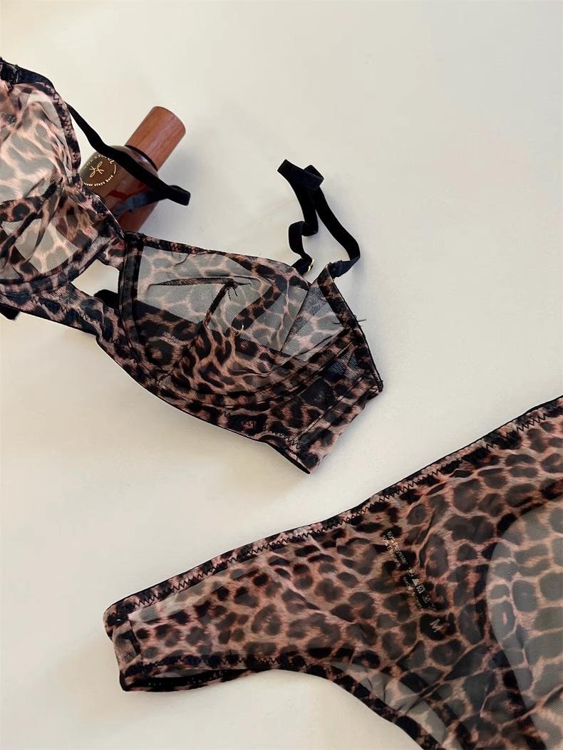 Estilo Francés Ultradelgado Ropa Interior de Pecho Grande Sexy Encaje Estampado de Leopardo Ajustable Push-up Ahuecado Sujetador con Aros