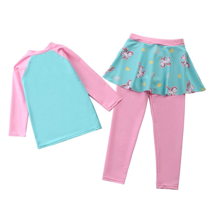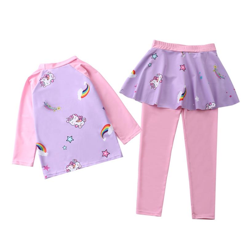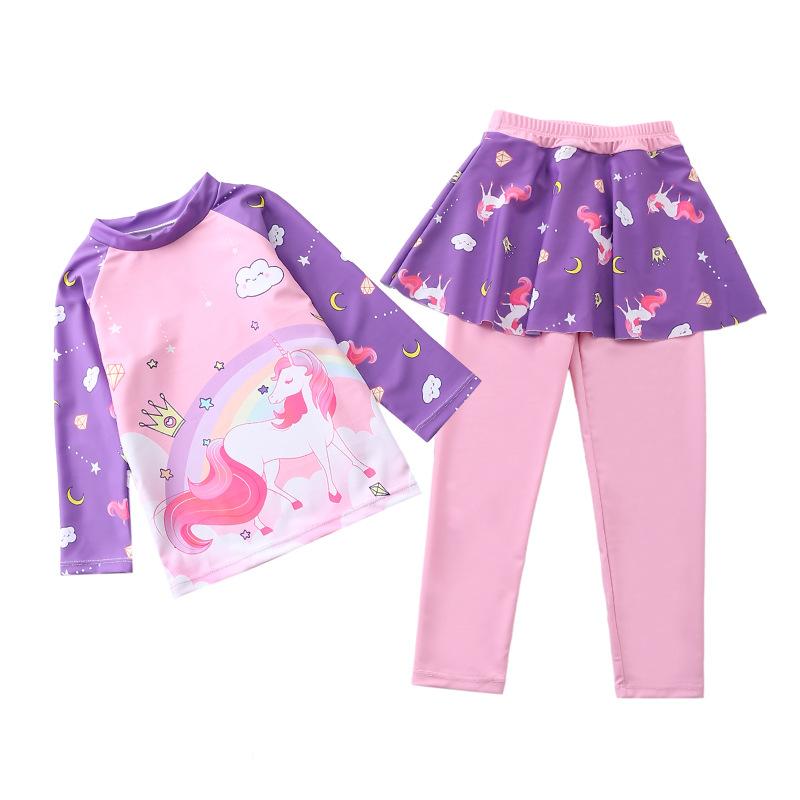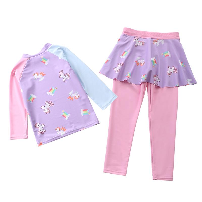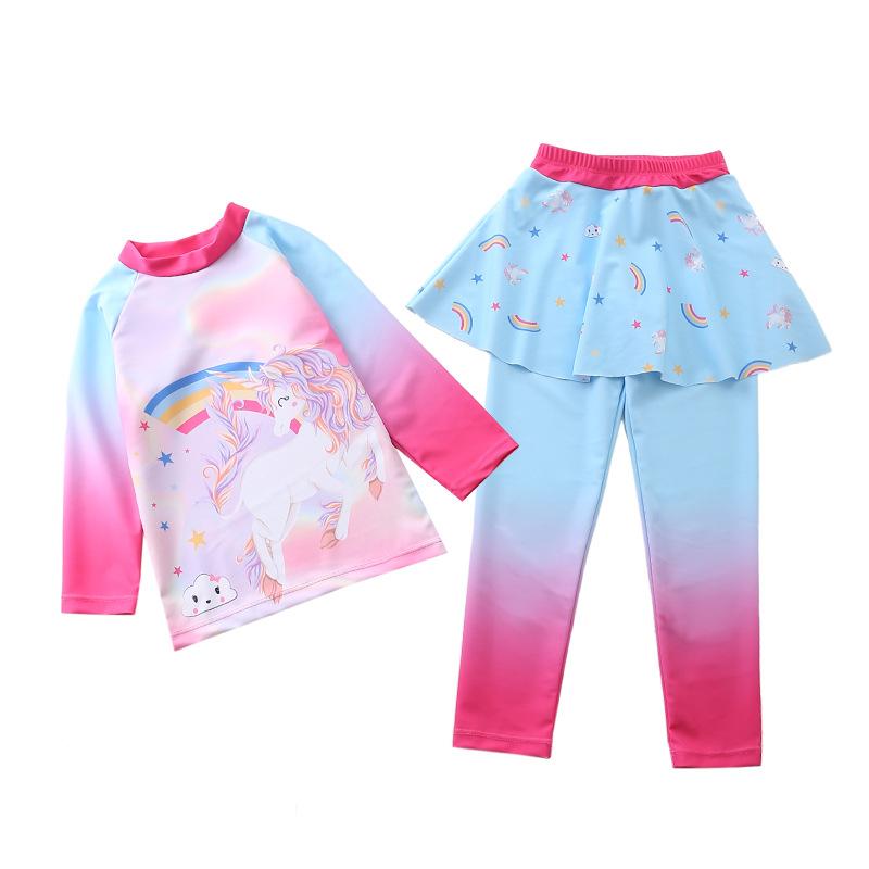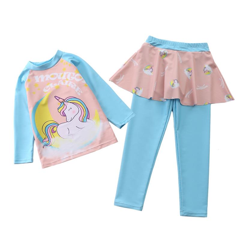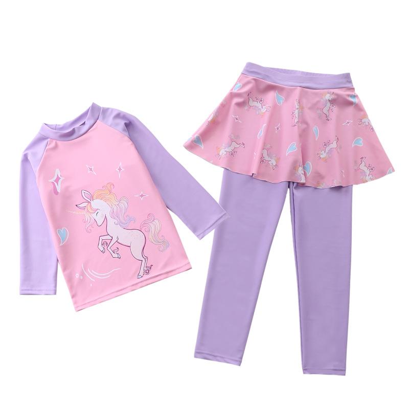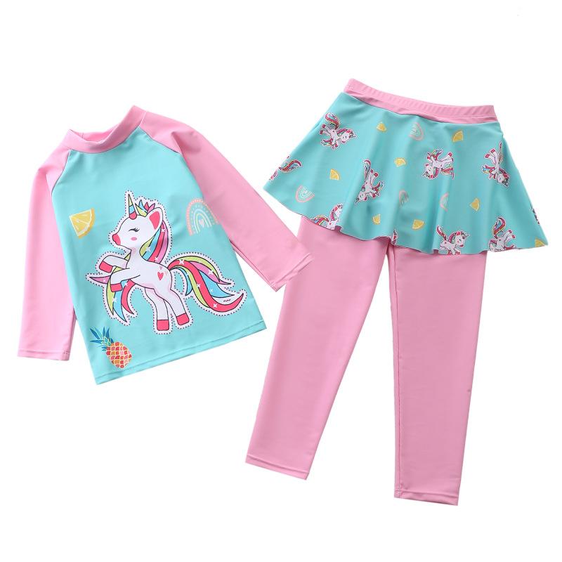 Traje de Buceo para Niños Traje de Baño Dividido para Niñas Traje de Baño de Manga Larga de Sirena Unicornio Traje de Baño con Protección Solar para Niños Pequeños, Medianos y Grandes