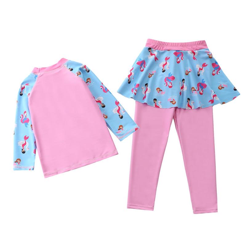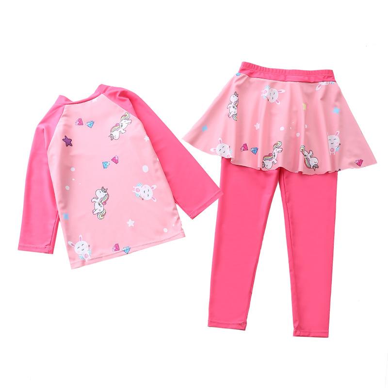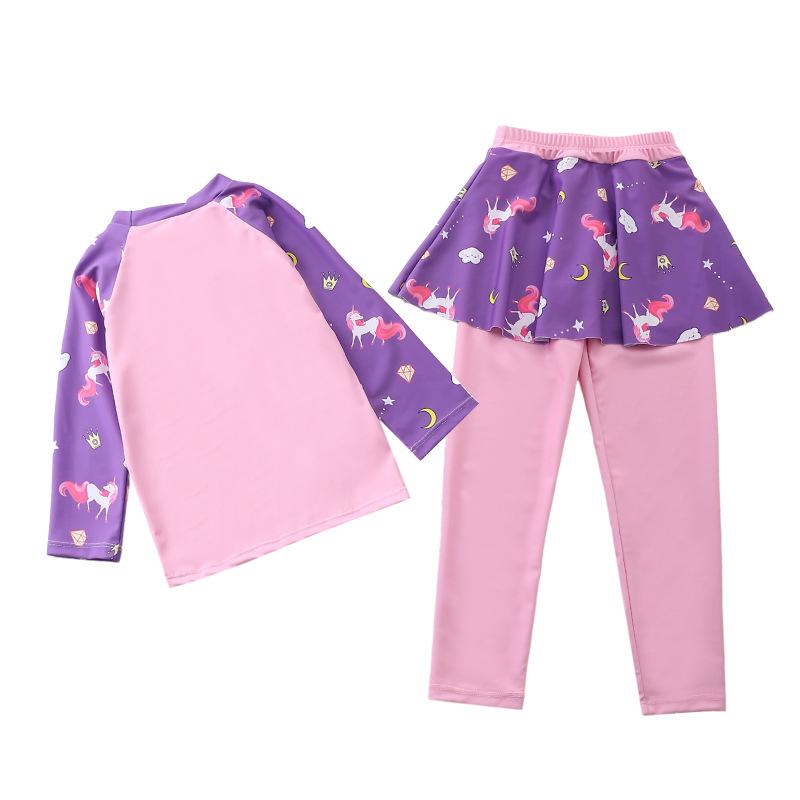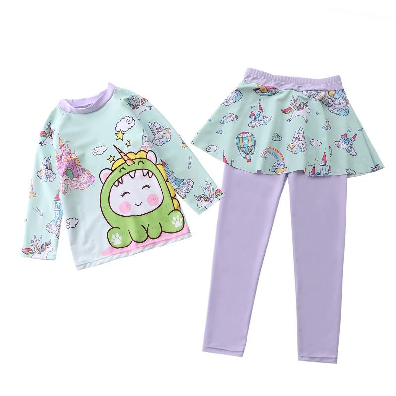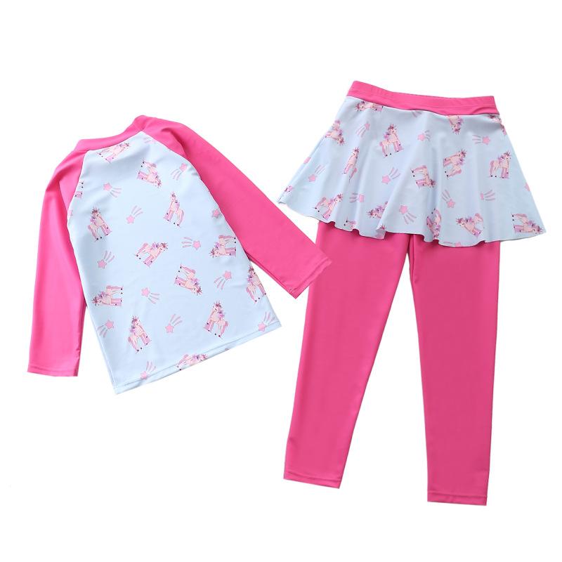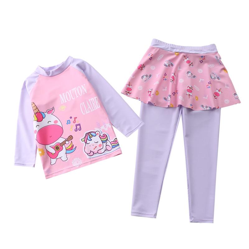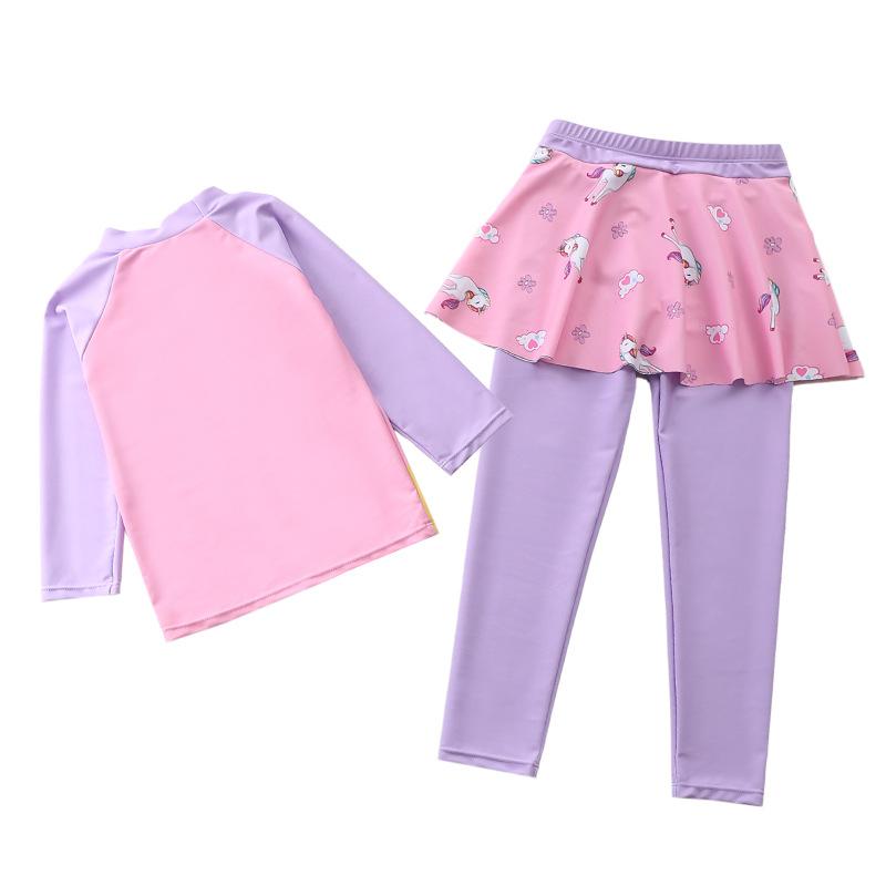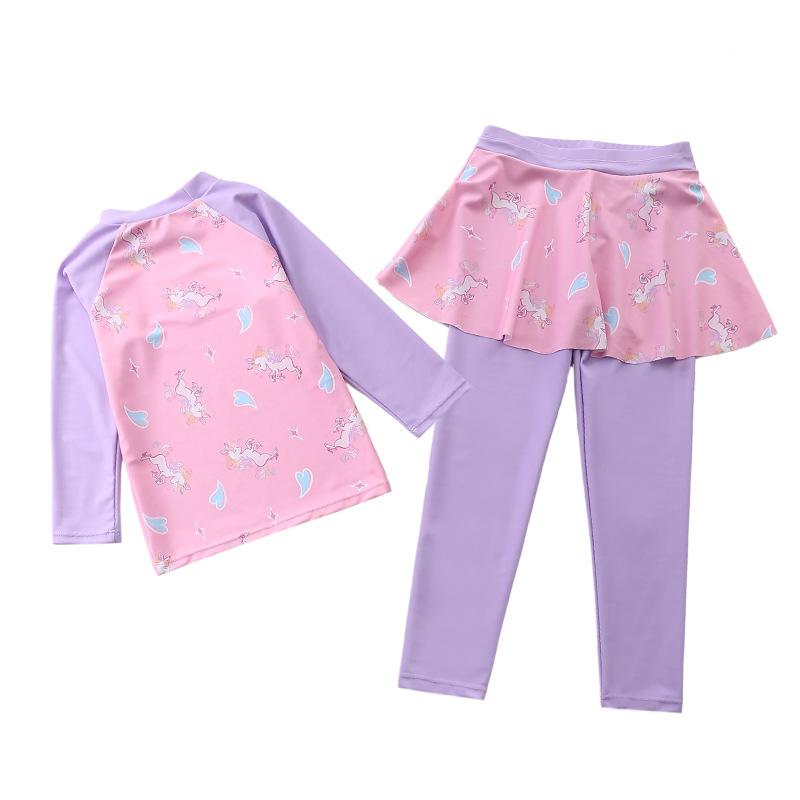 Traje de Buceo para Niños Traje de Baño Dividido para Niñas Traje de Baño de Manga Larga de Sirena Unicornio Traje de Baño con Protección Solar para Niños Pequeños, Medianos y Grandes
