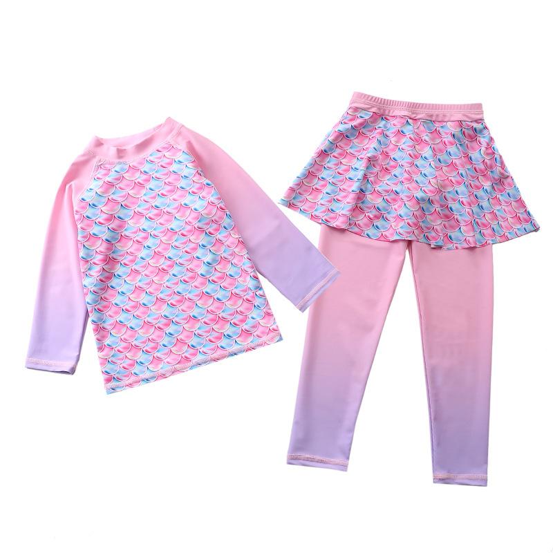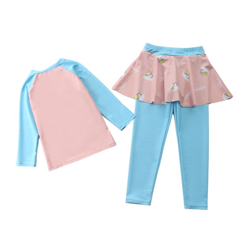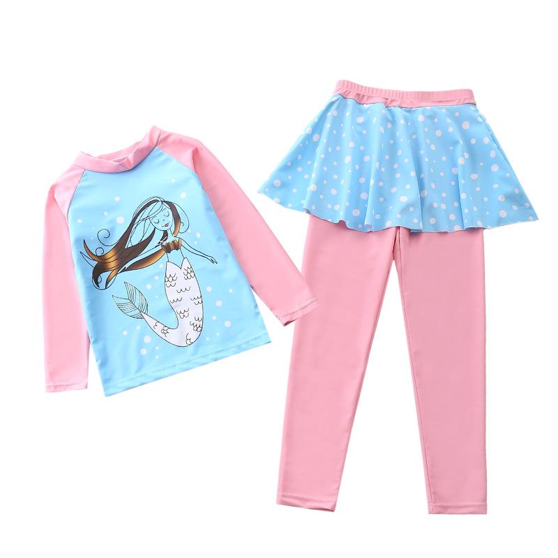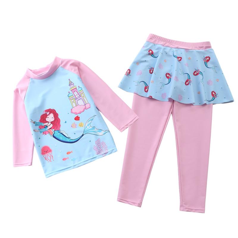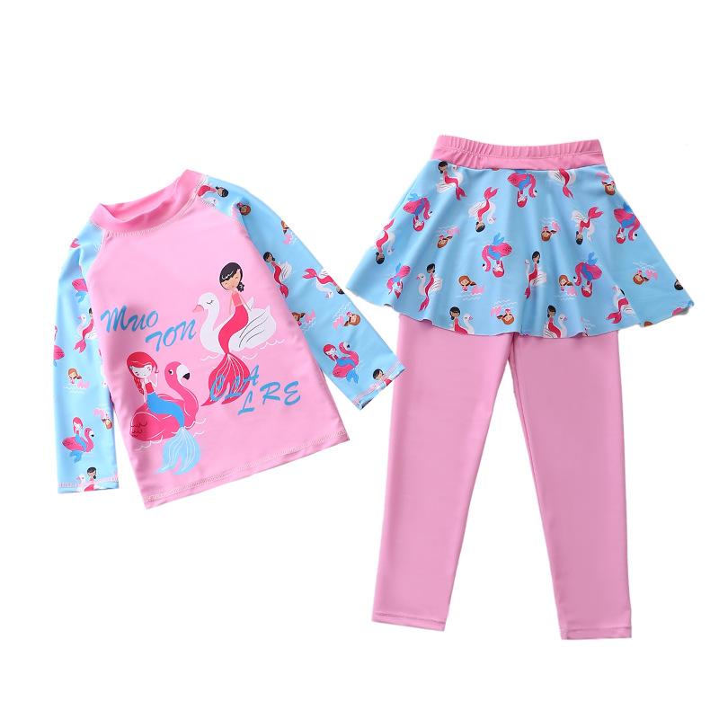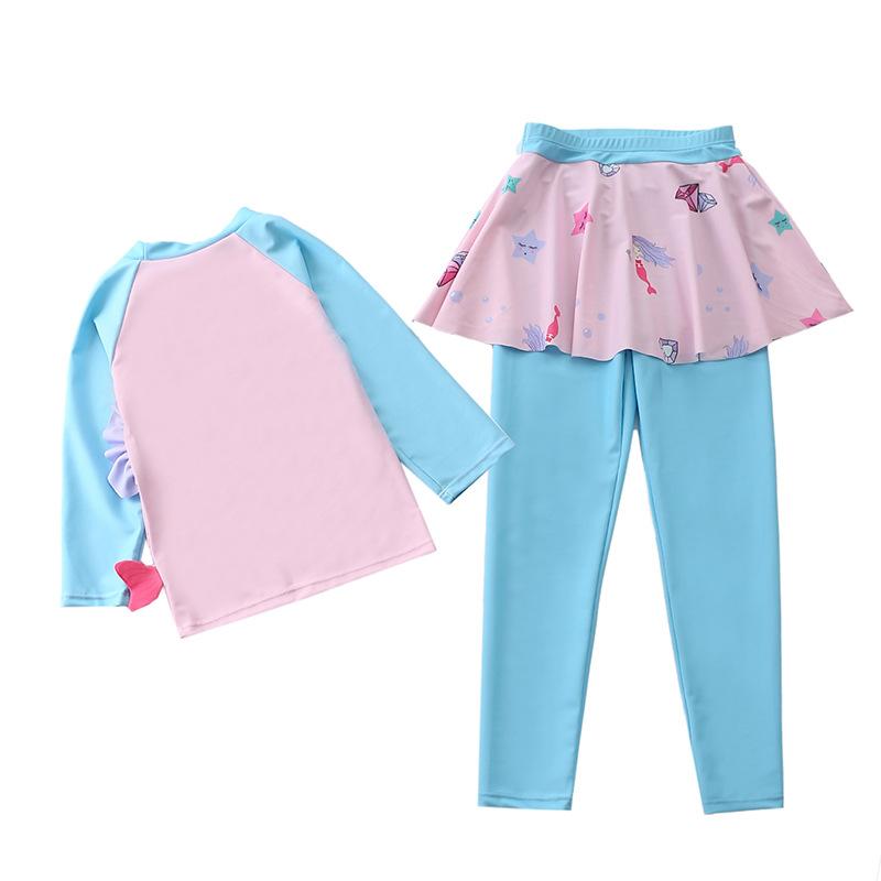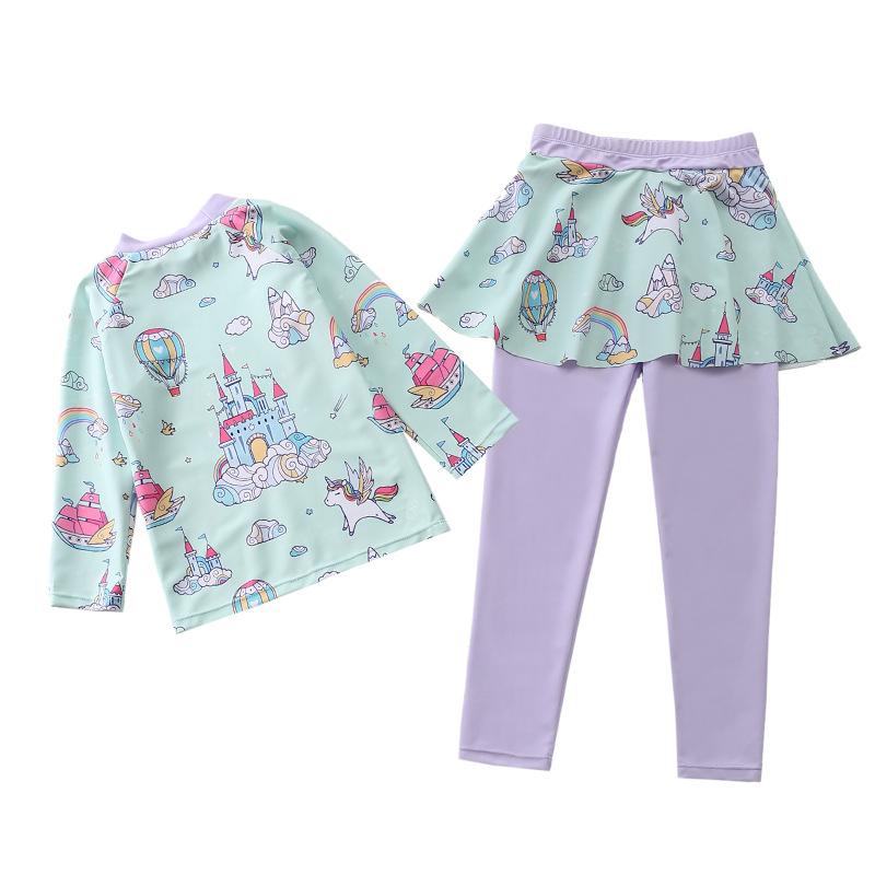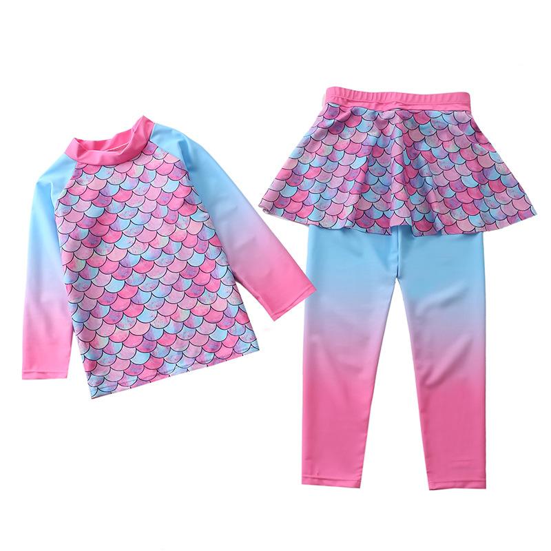 Traje de Buceo para Niños Traje de Baño Dividido para Niñas Traje de Baño de Manga Larga de Sirena Unicornio Traje de Baño con Protección Solar para Niños Pequeños, Medianos y Grandes