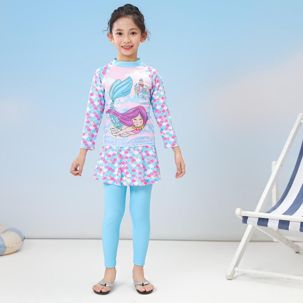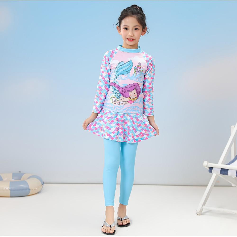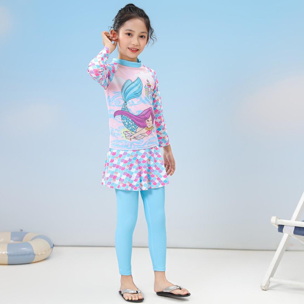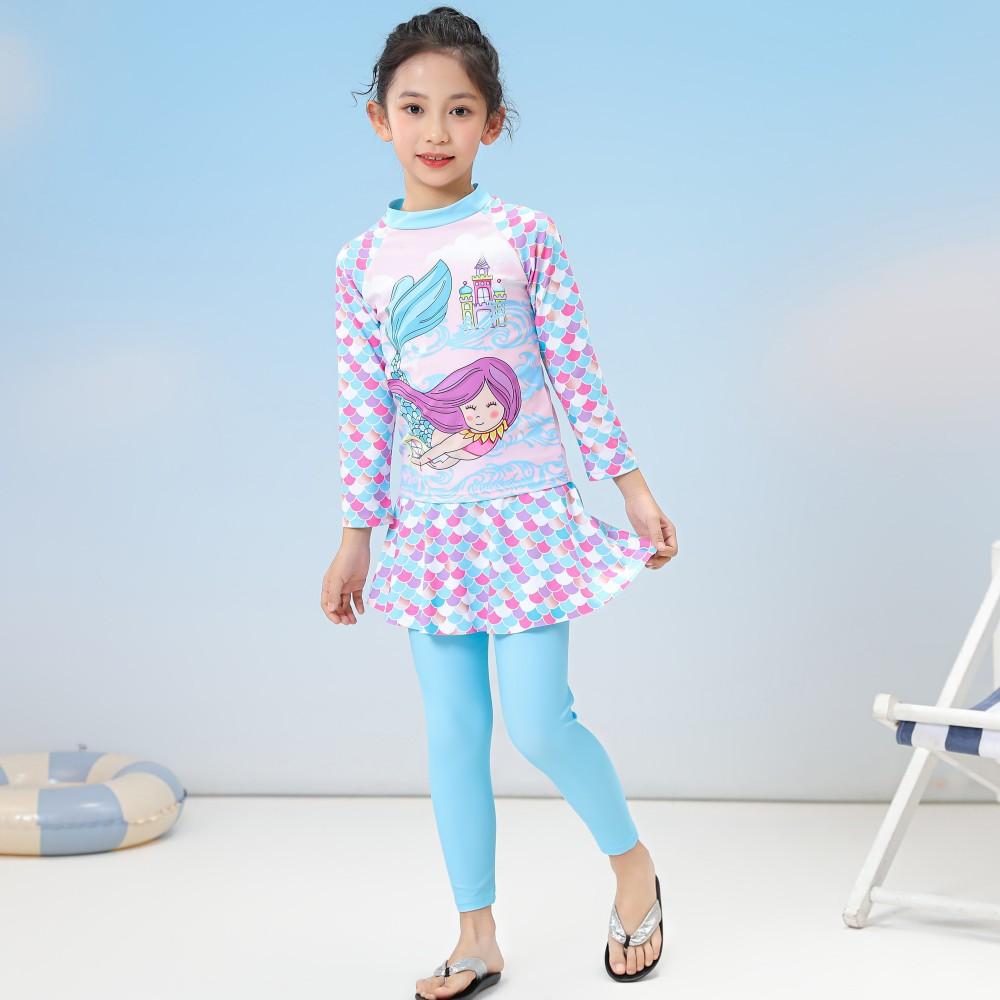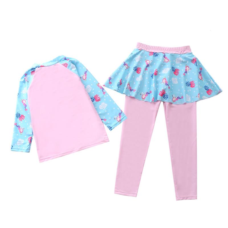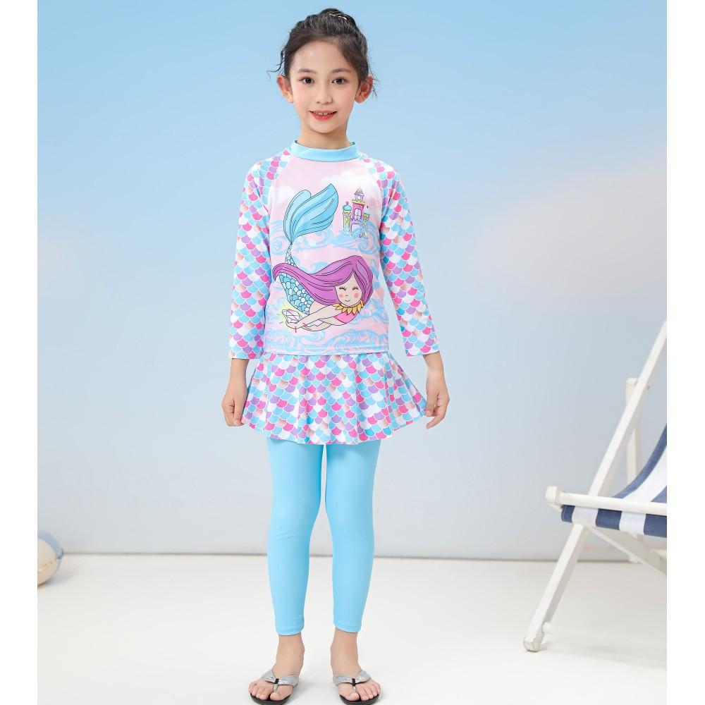 Traje de Buceo para Niños Traje de Baño Dividido para Niñas Traje de Baño de Manga Larga de Sirena Unicornio Traje de Baño con Protección Solar para Niños Pequeños, Medianos y Grandes