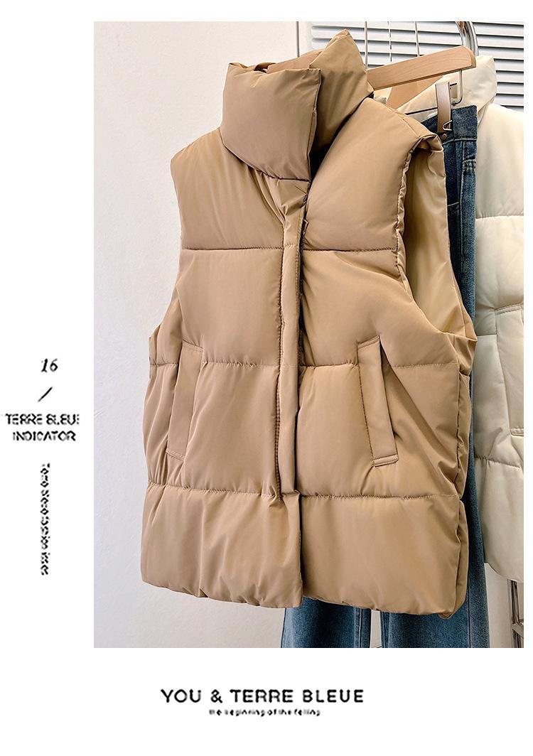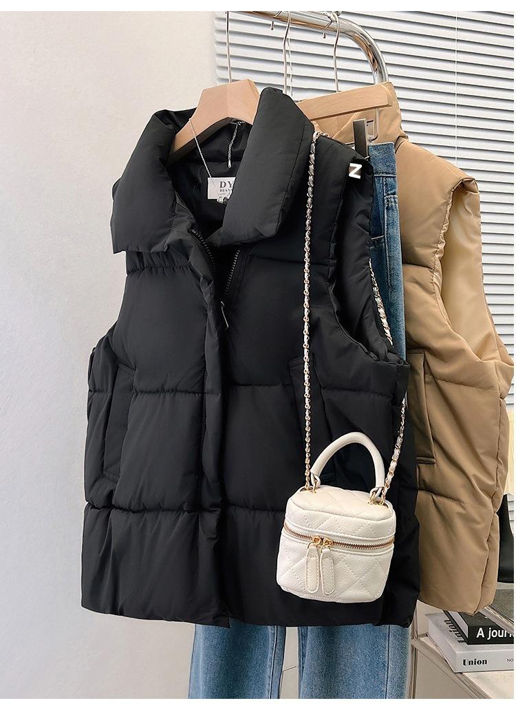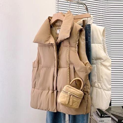 Estilo Coreano Invierno Nuevo Abrigo Holgado Chaleco de Algodón Acolchado para Mujer Chica Gordita Sin Mangas Chaleco de Algodón