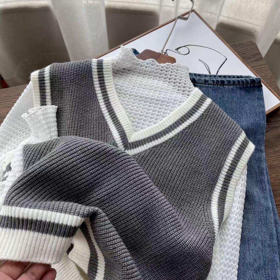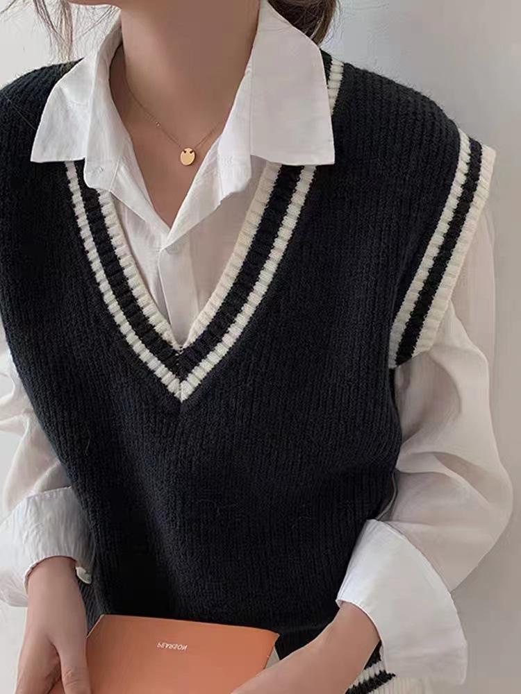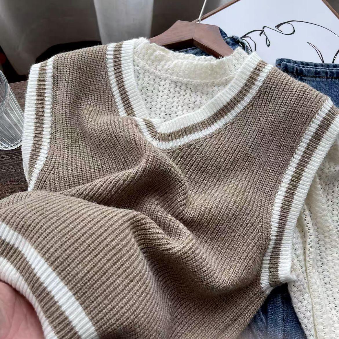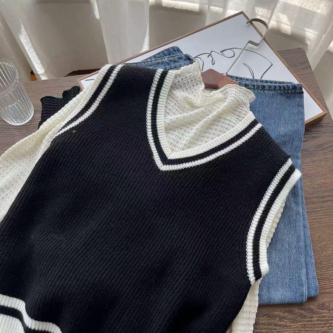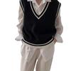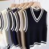 Chaleco de punto estilo universitario para mujer, otoño 2024, nuevo chaleco holgado sin mangas con cuello alto y estilo perezoso.