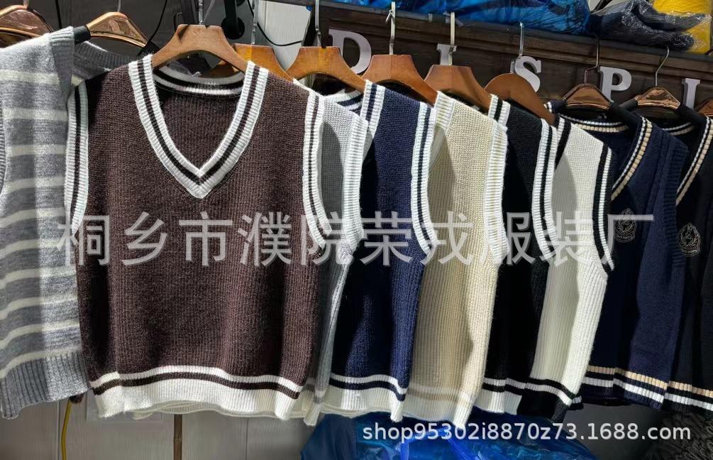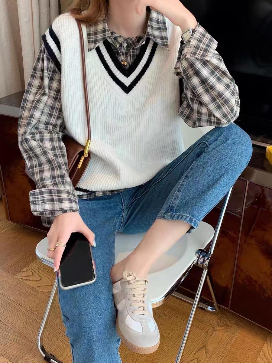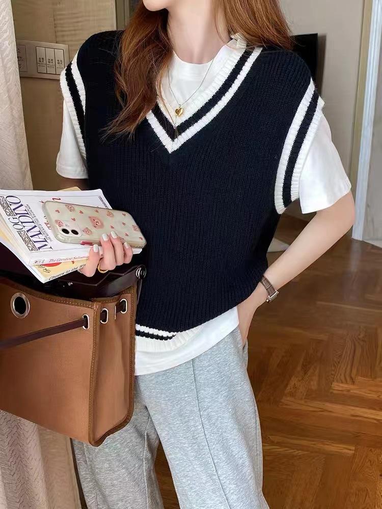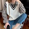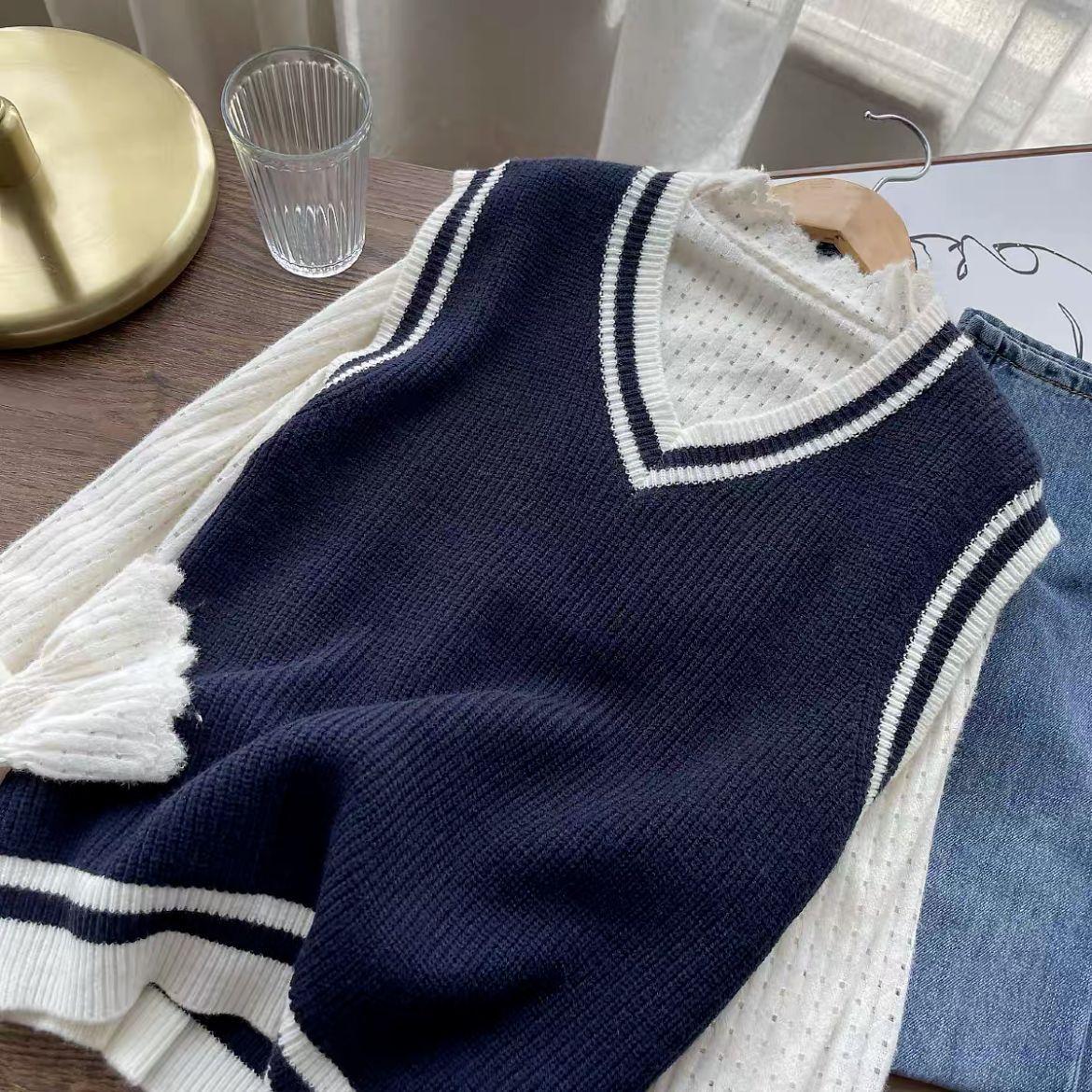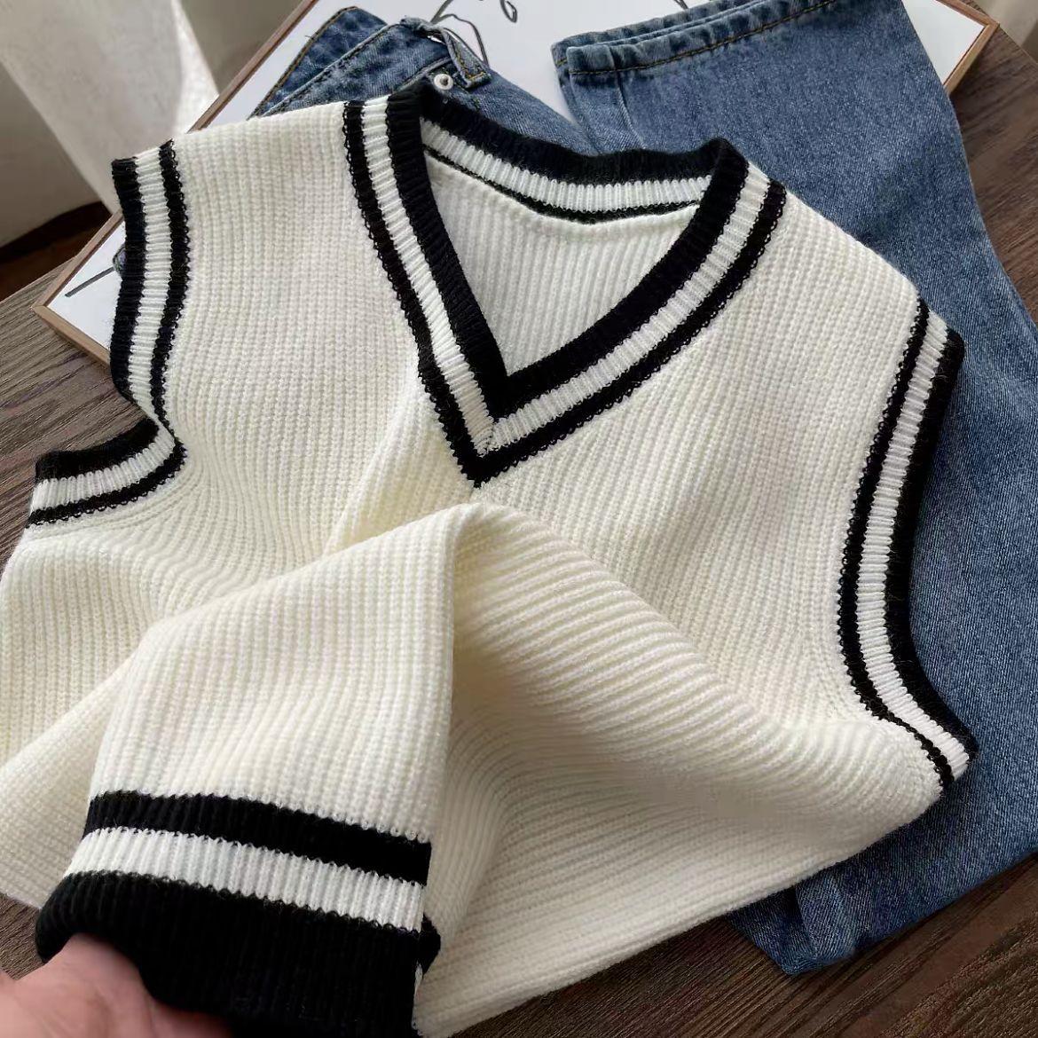 Chaleco de punto estilo universitario para mujer, otoño 2024, nuevo chaleco holgado sin mangas con cuello alto y estilo perezoso.