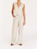 Traje Casual de Lino Francés Moda Europea y Americana para Mujer Transfronterizo Color Sólido Chaleco Pantalones de Cintura Alta Conjunto de Dos Piezas