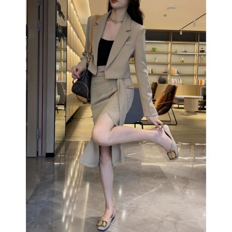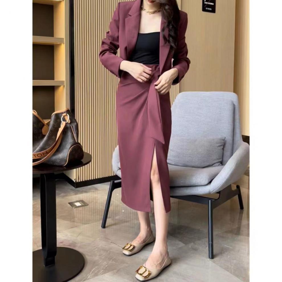 Sencillo/traje Traje Falda traje 2024 Primavera Nuevo Traje cómodo Top Falda con abertura Conjunto de dos piezas